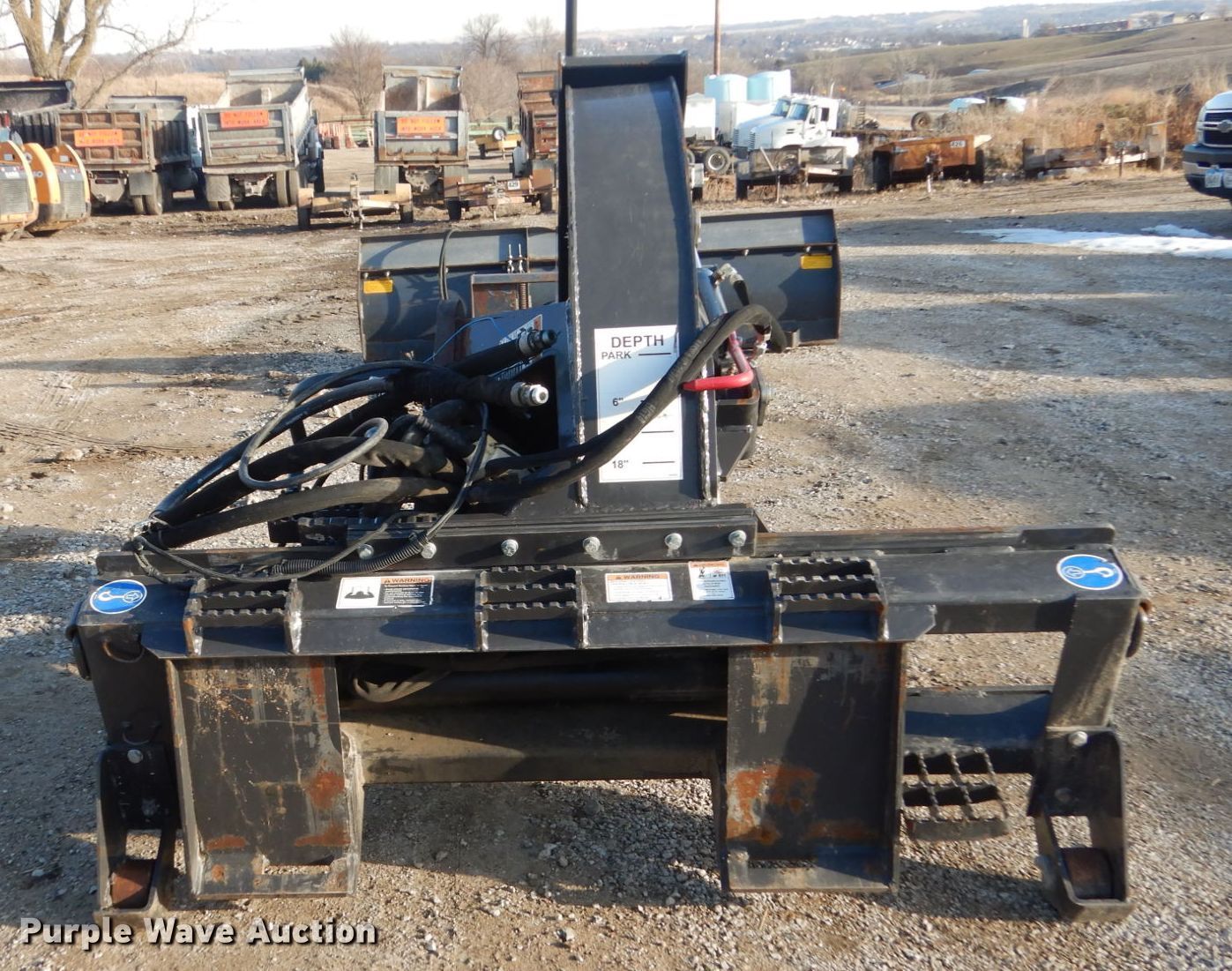 Purple Wave is selling a used Skid Steer Attach. in Iowa. This item is a Bradco RS18 skid steer rock saw with the following: 48" diameter blade, 18" cutting depth, Mill teeth, Serial 423274
