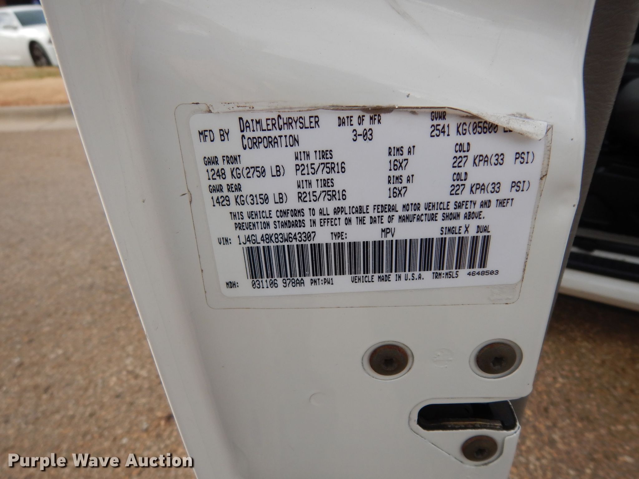 Purple Wave is selling a used Passenger Vehicle in Kansas. This item is a 2003 Jeep Liberty Sport SUV with the following: 129,780 miles on odometer, 3.7L V6 SOHC 12V gas engine, Automatic transmission, Four wheel drive, AC and heat, Power windows and locks, 235/70R16 tires, Check engine light on, Oxygen sensor issue, Engine uses oil, Non-operational fuel gauge