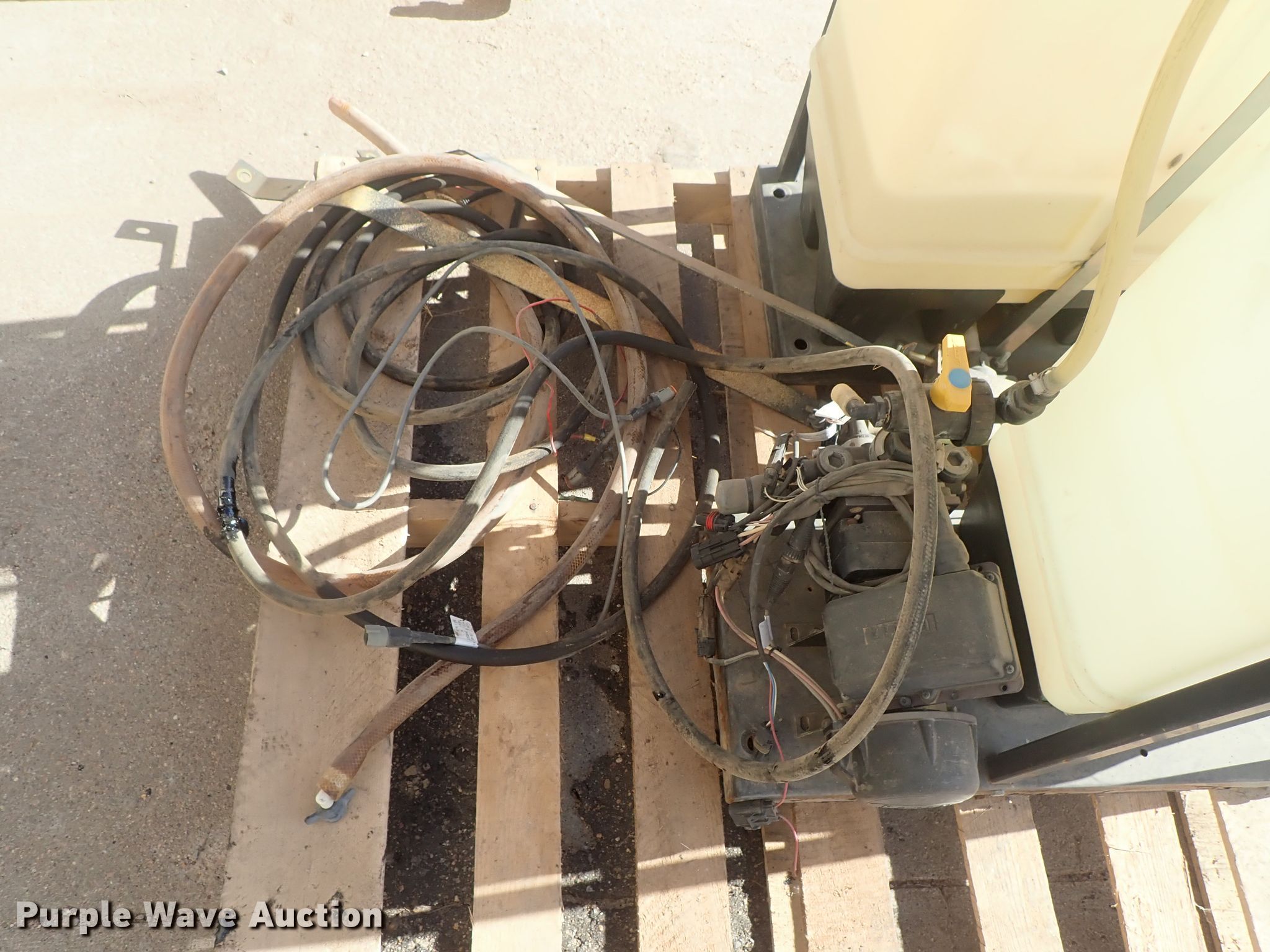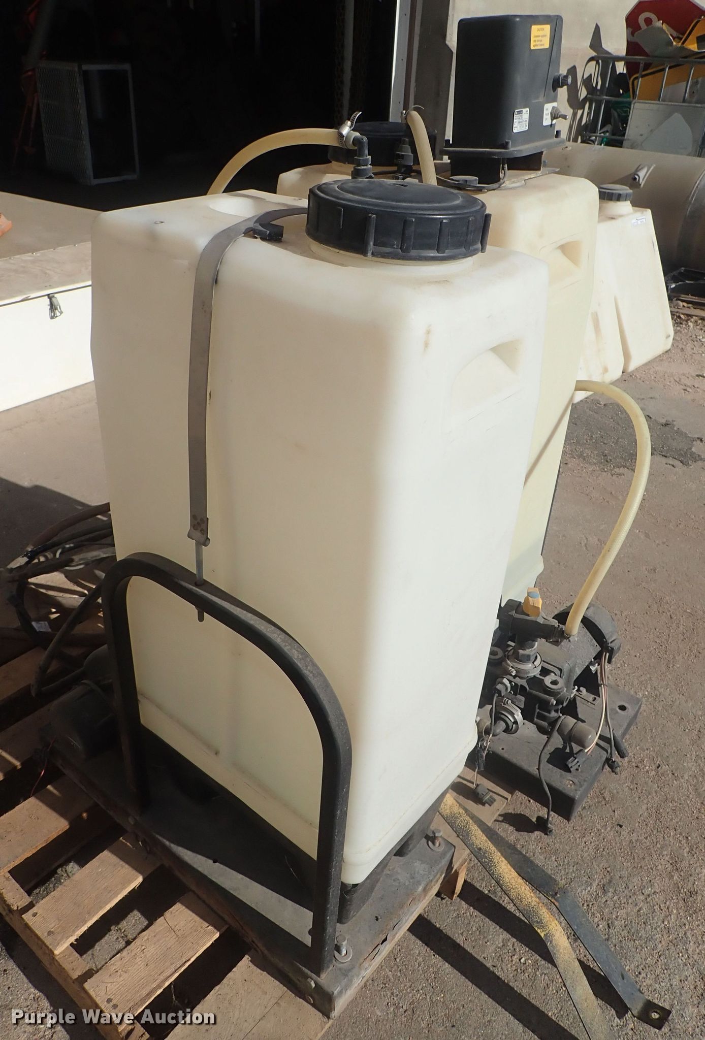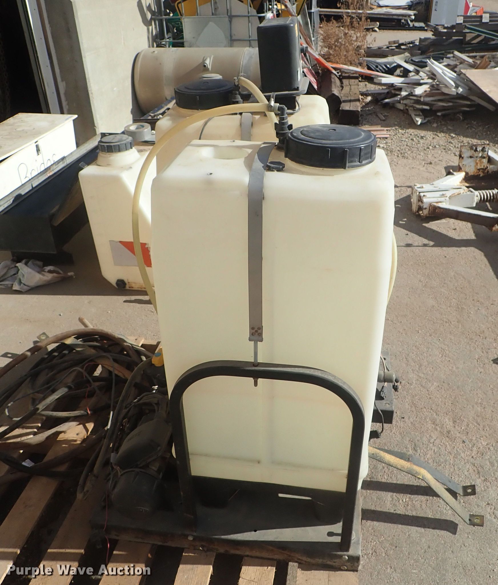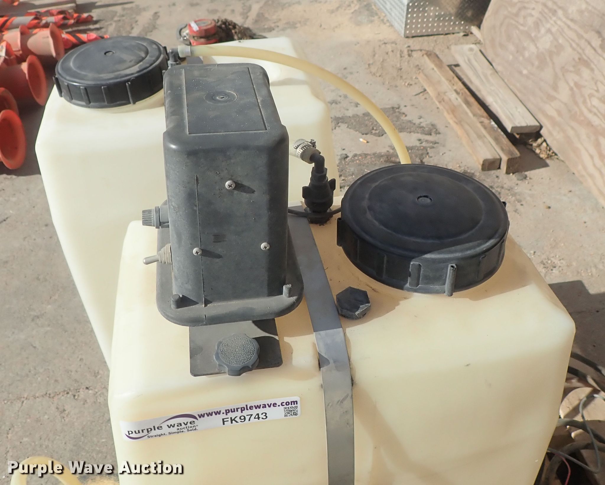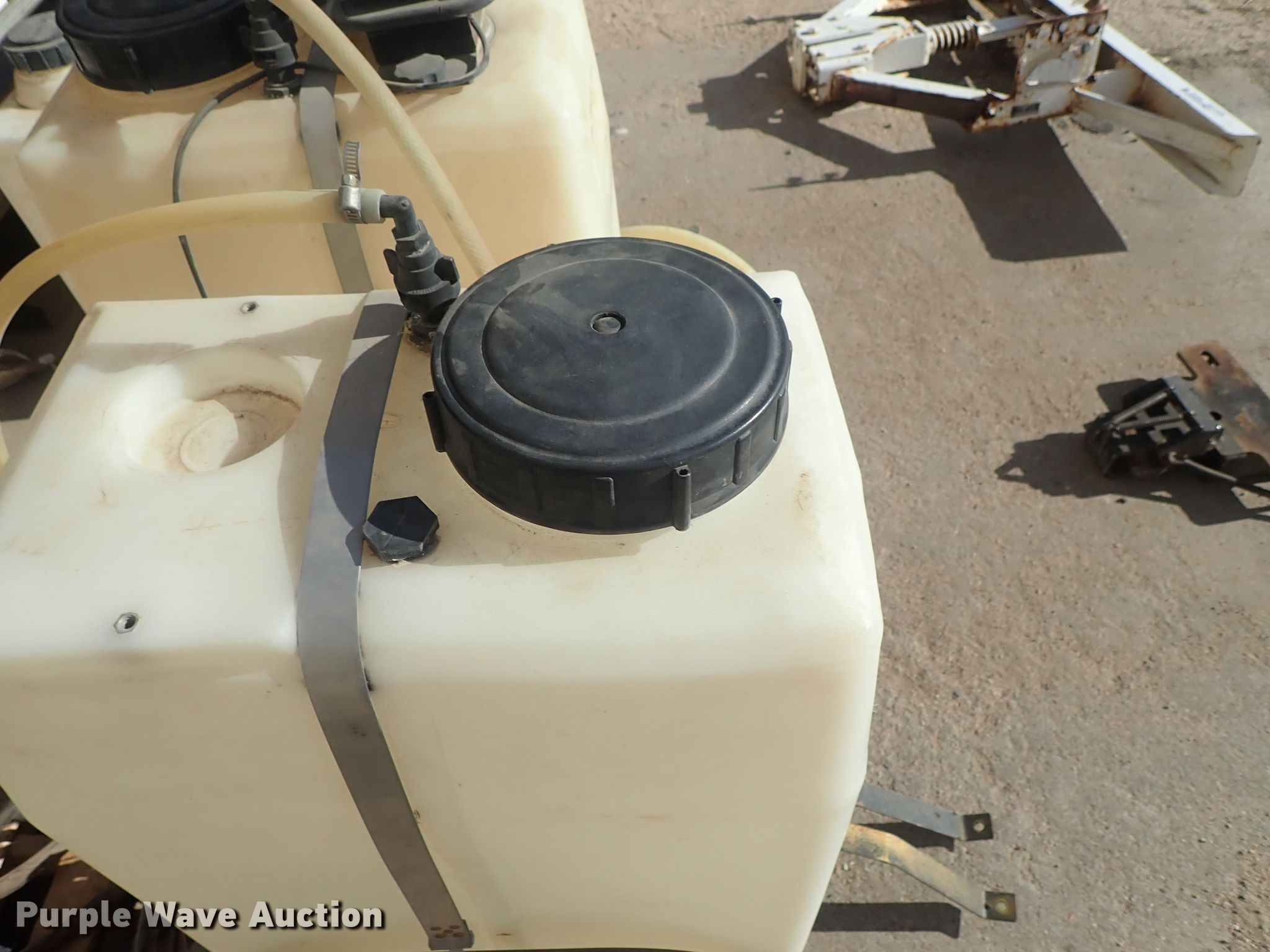 Purple Wave is selling a used Tanks in Kansas. This item is a (2) poly tanks with the following: Raven pumps, Hoses, Mounts