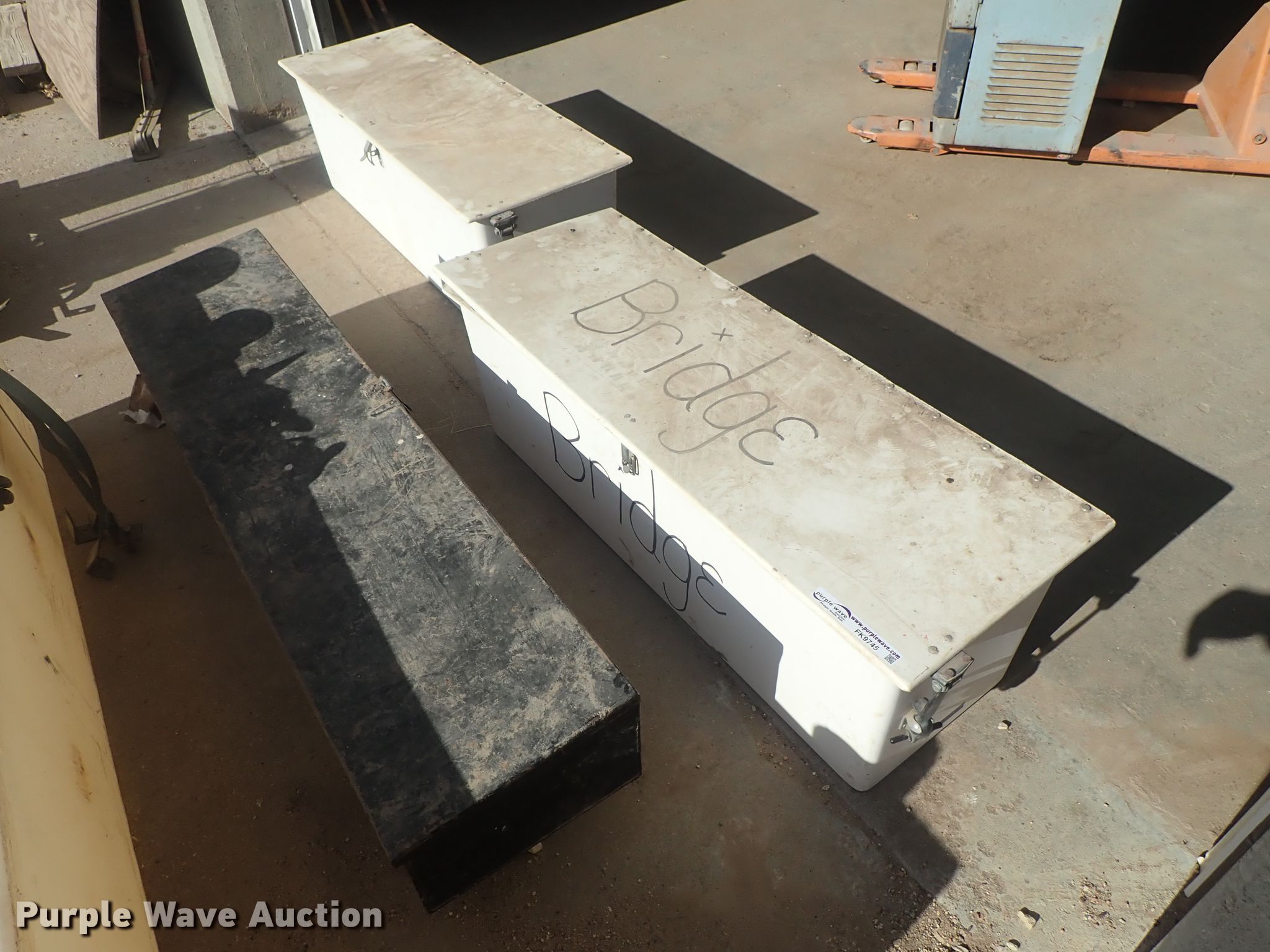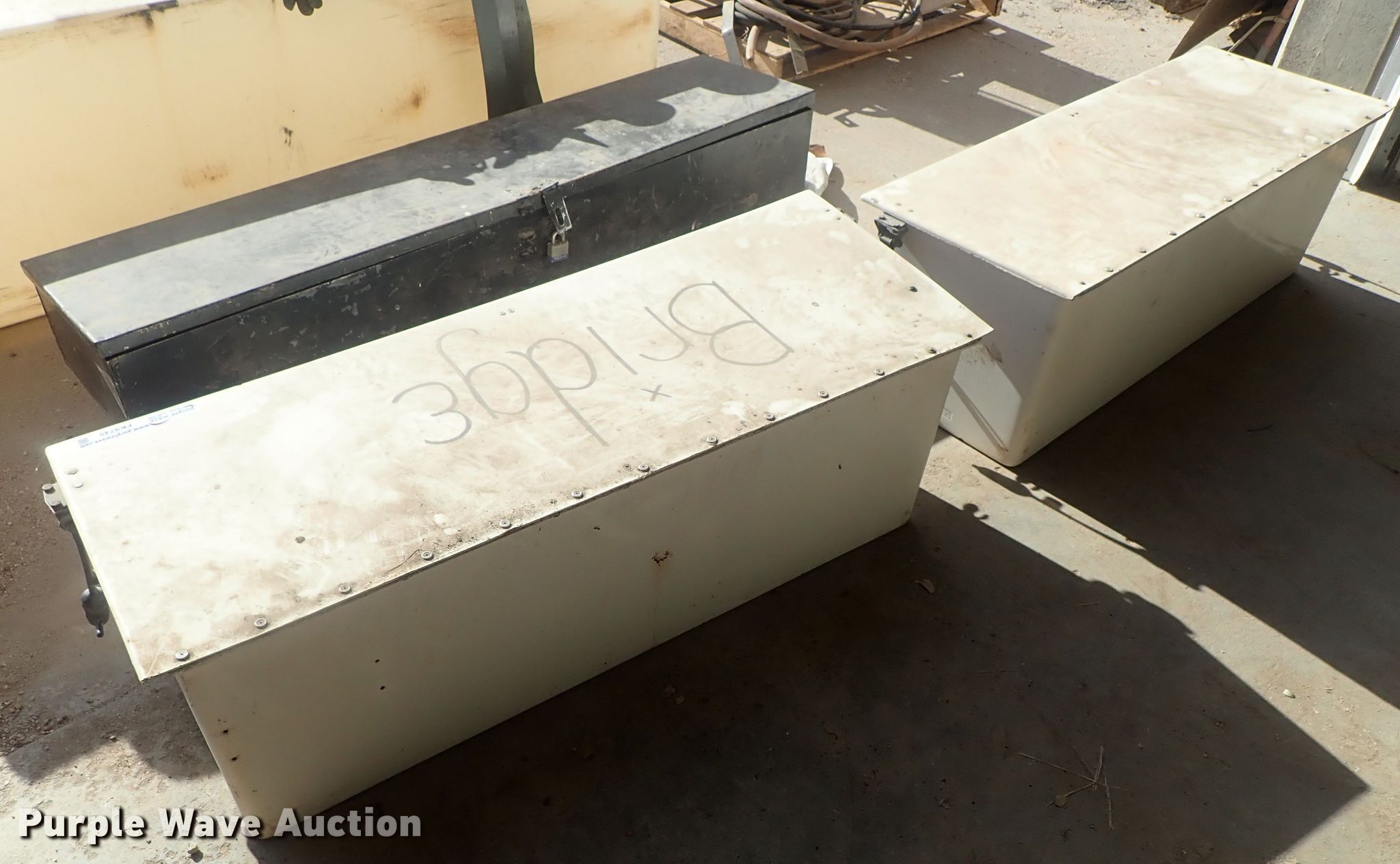 (3) toolboxes. (2) fiberglass 50" x 18" x 17", Metal 60"W, Contents not included. Pawnee County. 615 E 10th St. Larned, KS 67550