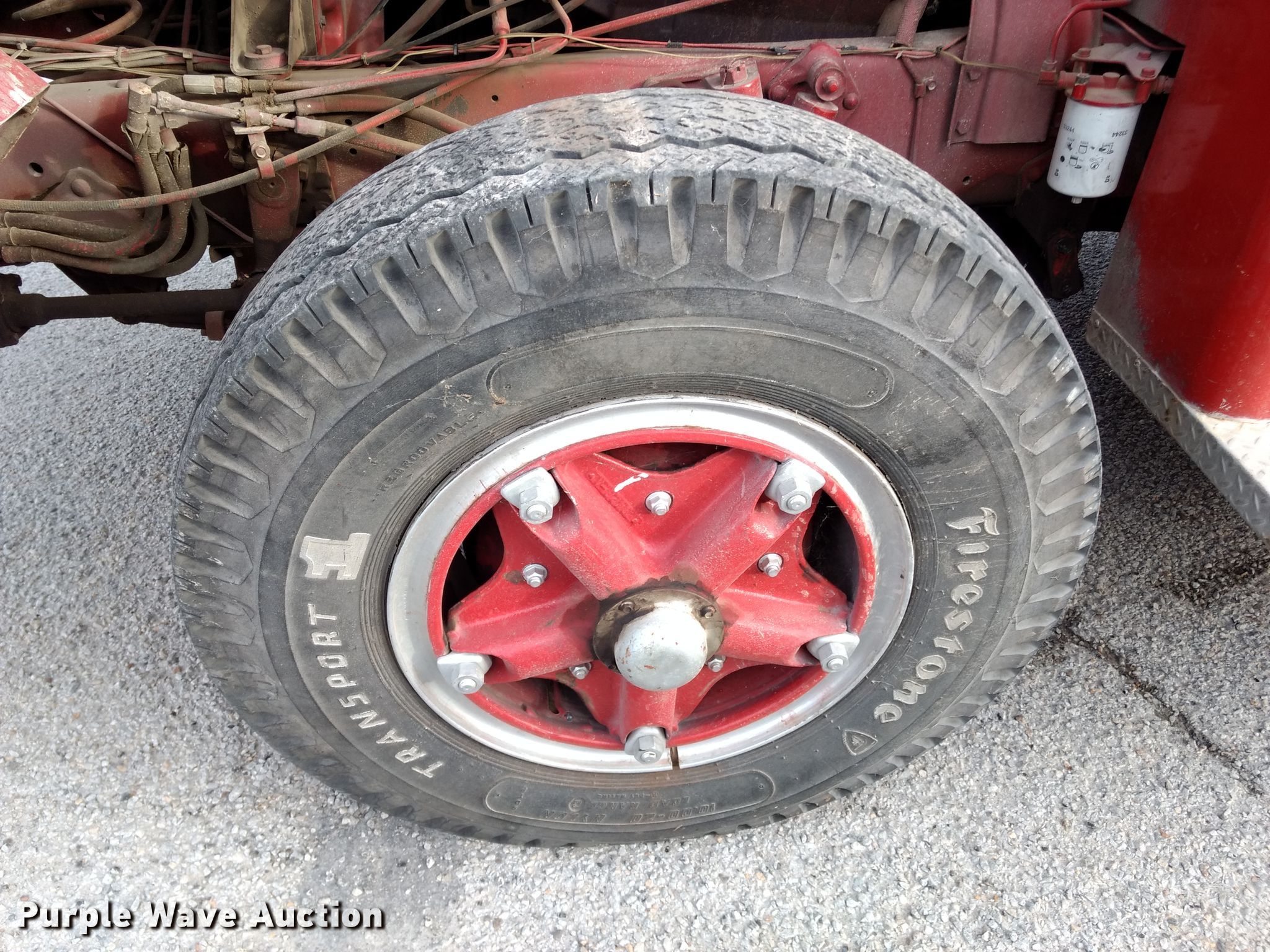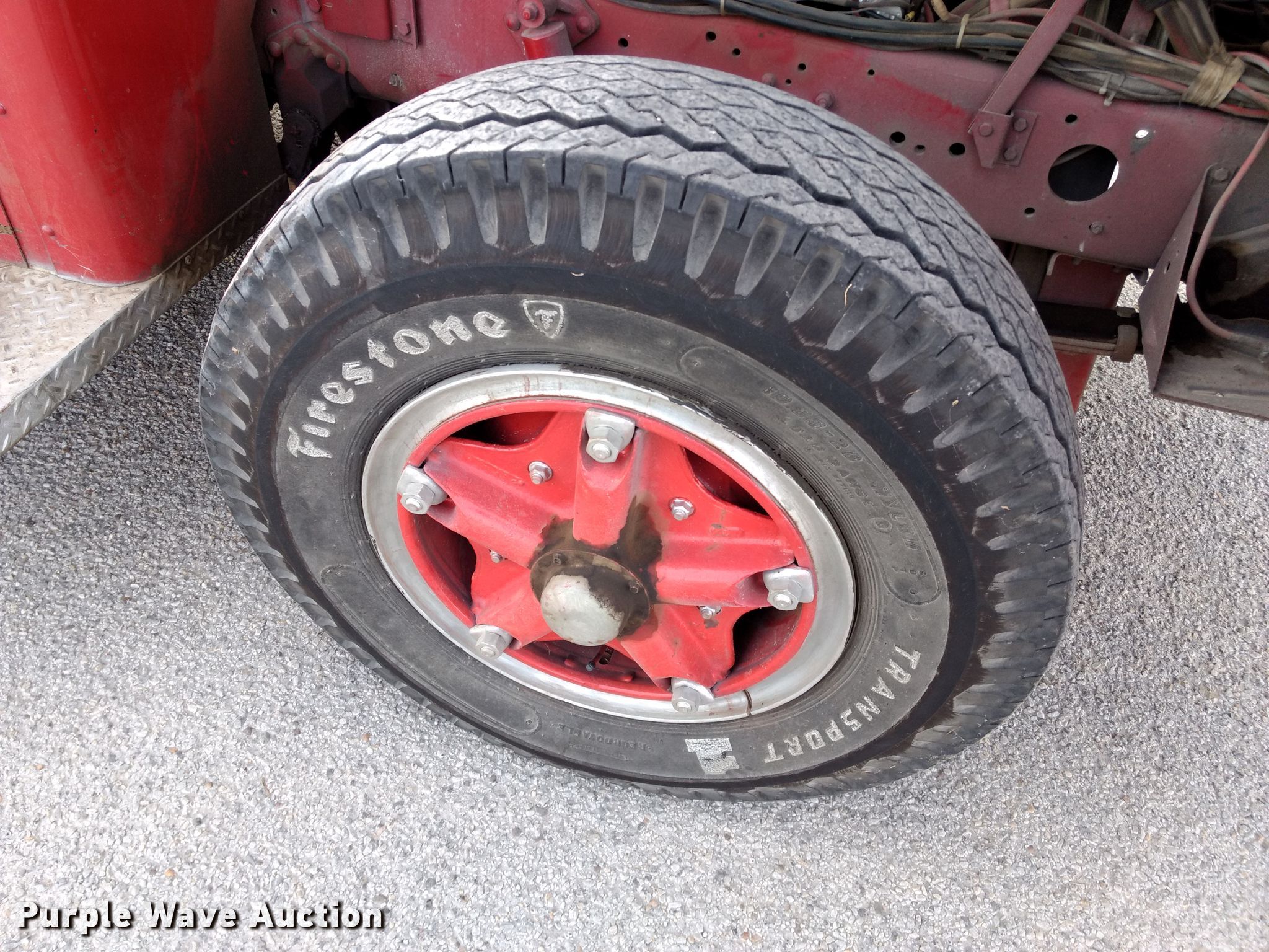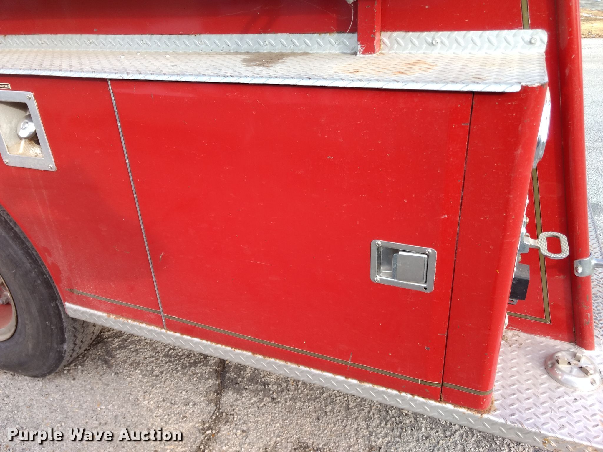 Purple Wave is selling a used Fire Truck or Emergency Vehicle in Kansas. This item is a 1974 Ford pumper fire truck with the following: 10,820 miles on odometer, Odometer exceeds mechanical limits, Ford 534 C.I.D. eight cylinder gas engine, Five speed manual transmission, Single axle, Heat, American Fire Apparatus Co. bed, 750 gpm pump, Ground ladder, Spring suspension, Hydraulic brakes, 10.00-20 tires