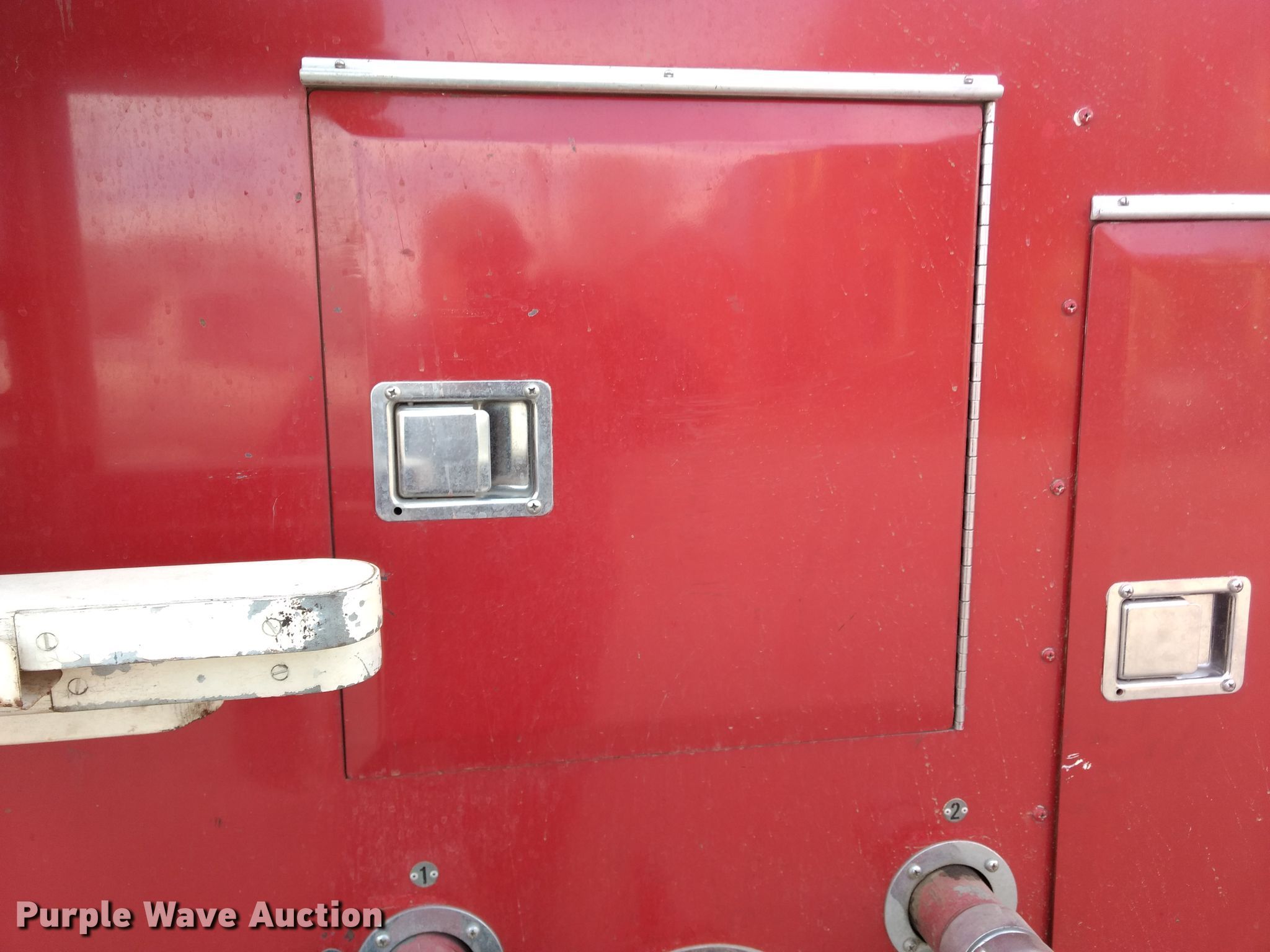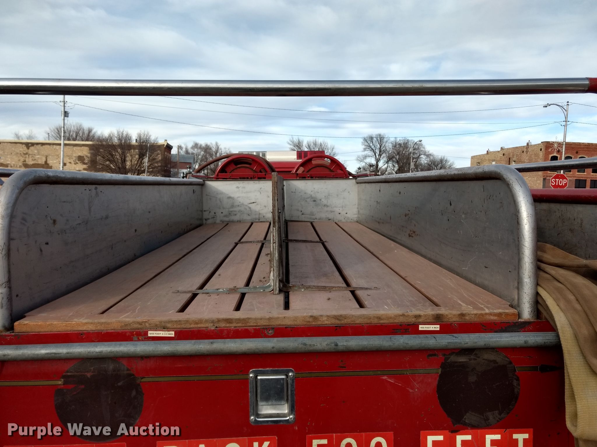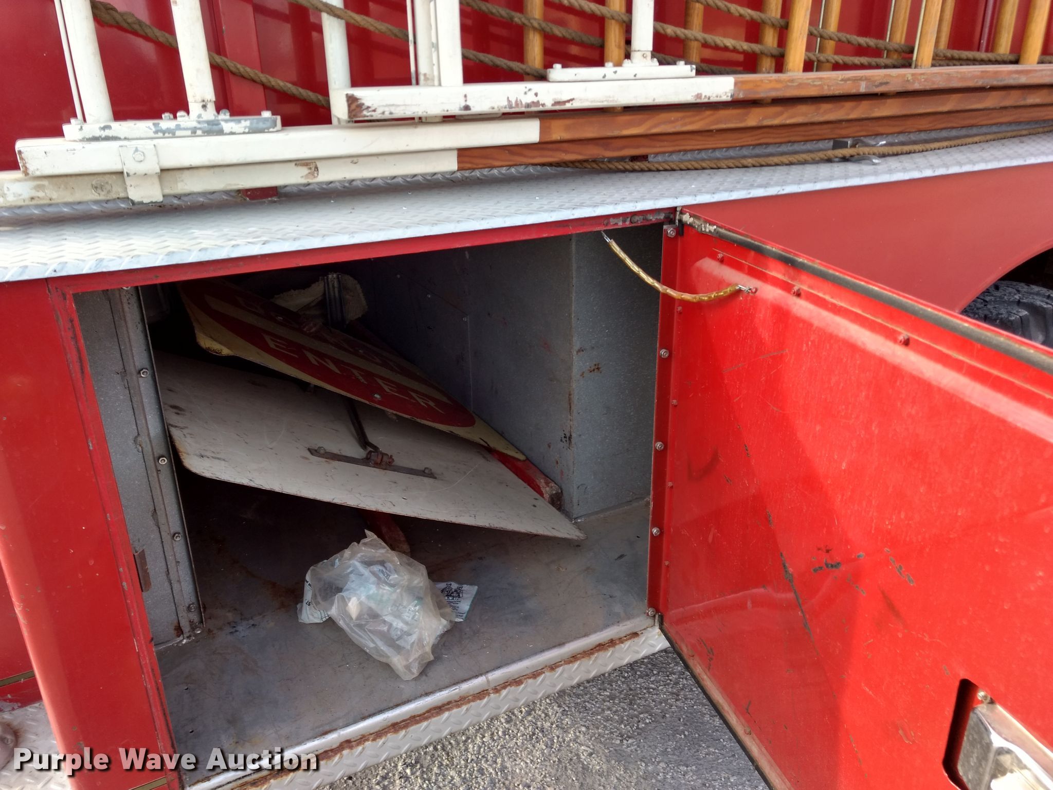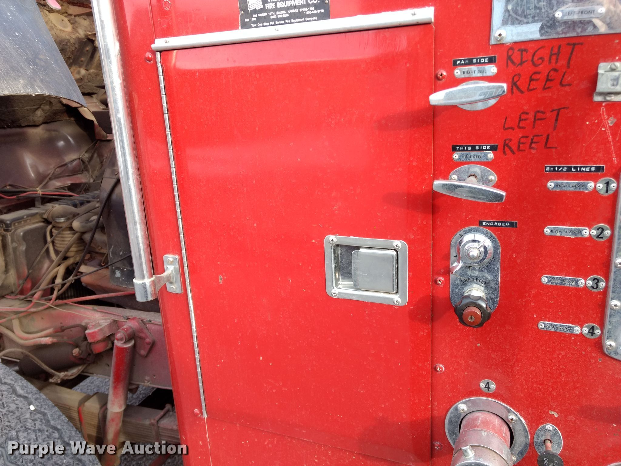 Purple Wave is selling a used Fire Truck or Emergency Vehicle in Kansas. This item is a 1974 Ford pumper fire truck with the following: 10,820 miles on odometer, Odometer exceeds mechanical limits, Ford 534 C.I.D. eight cylinder gas engine, Five speed manual transmission, Single axle, Heat, American Fire Apparatus Co. bed, 750 gpm pump, Ground ladder, Spring suspension, Hydraulic brakes, 10.00-20 tires