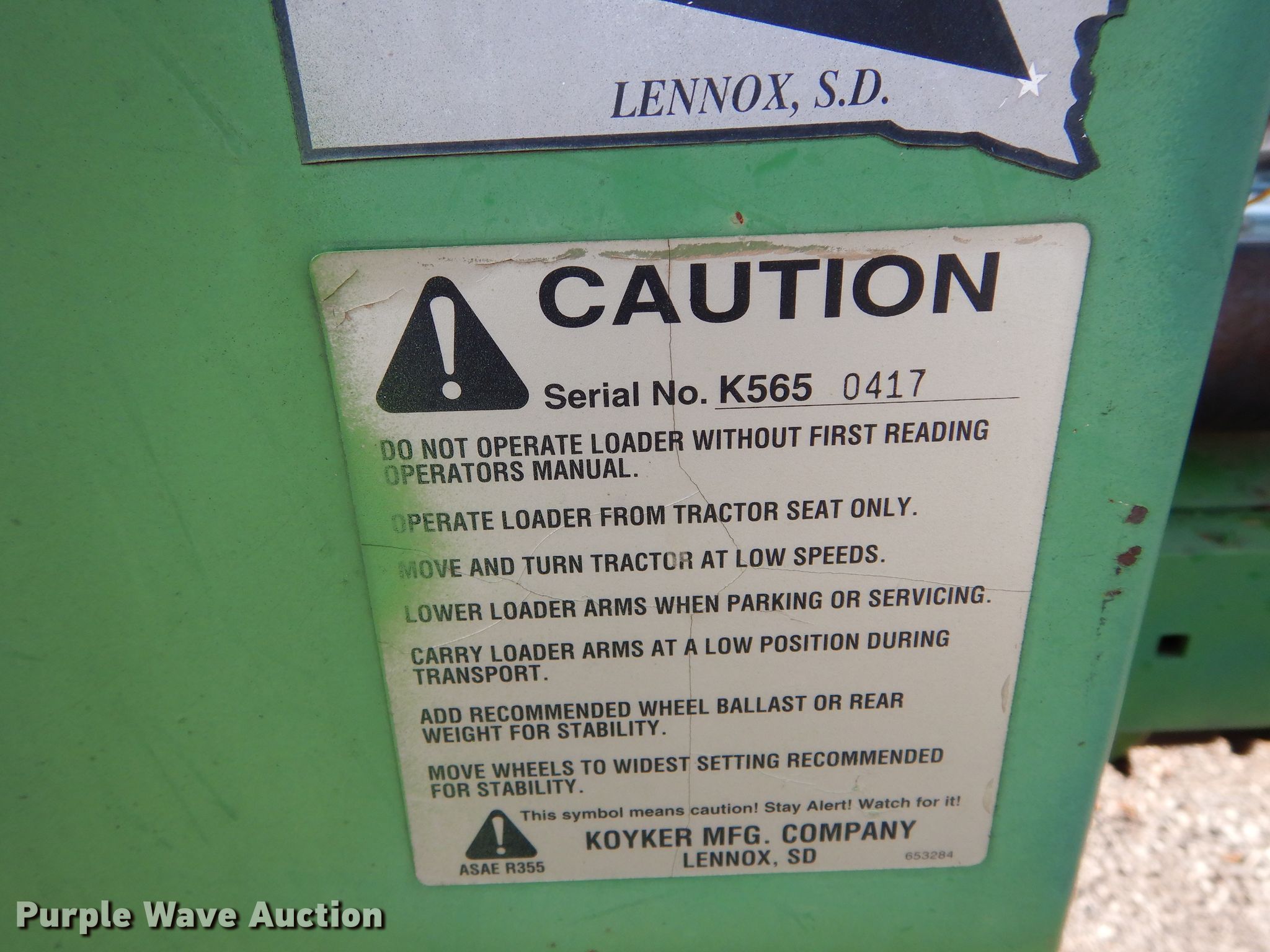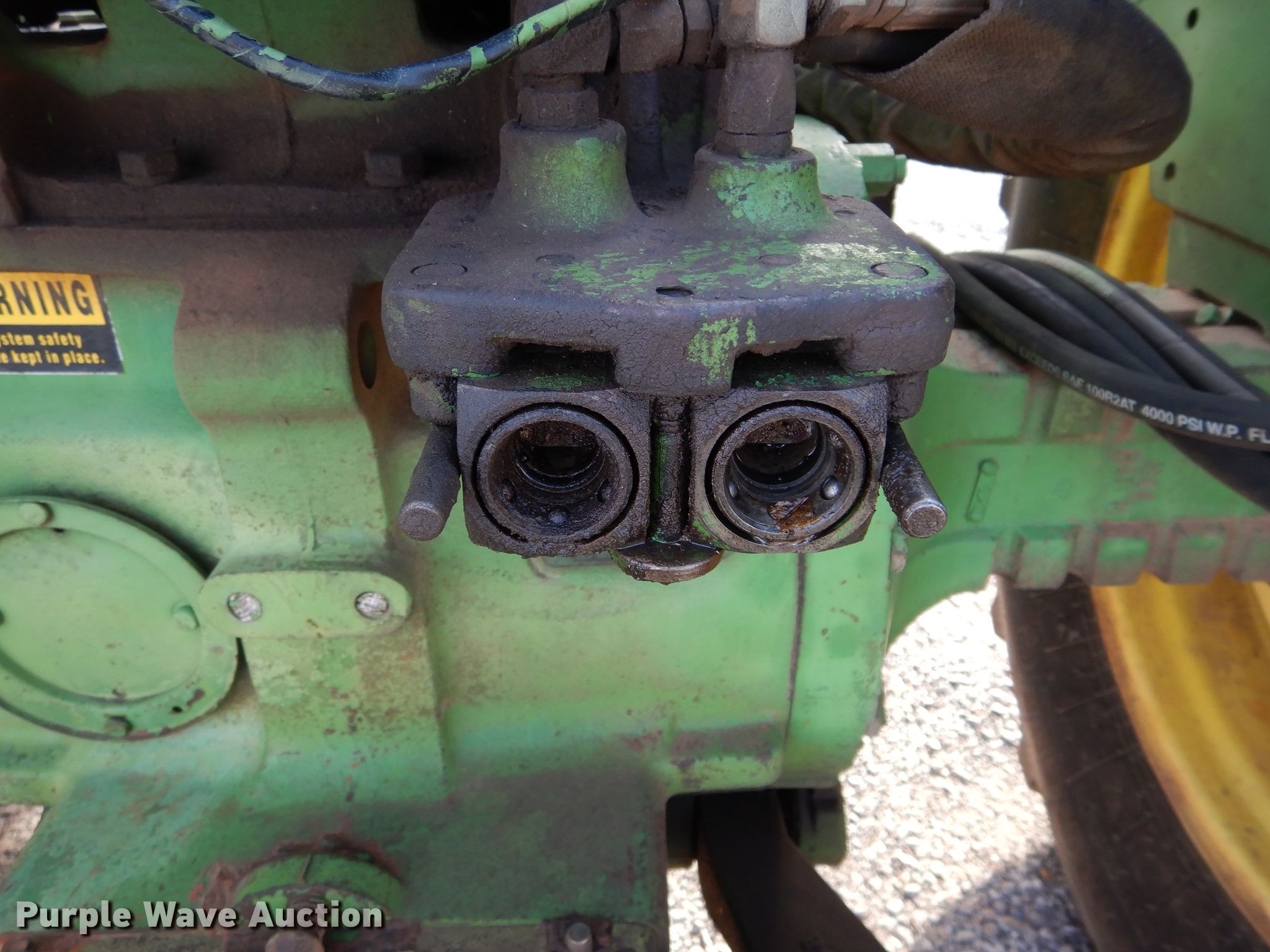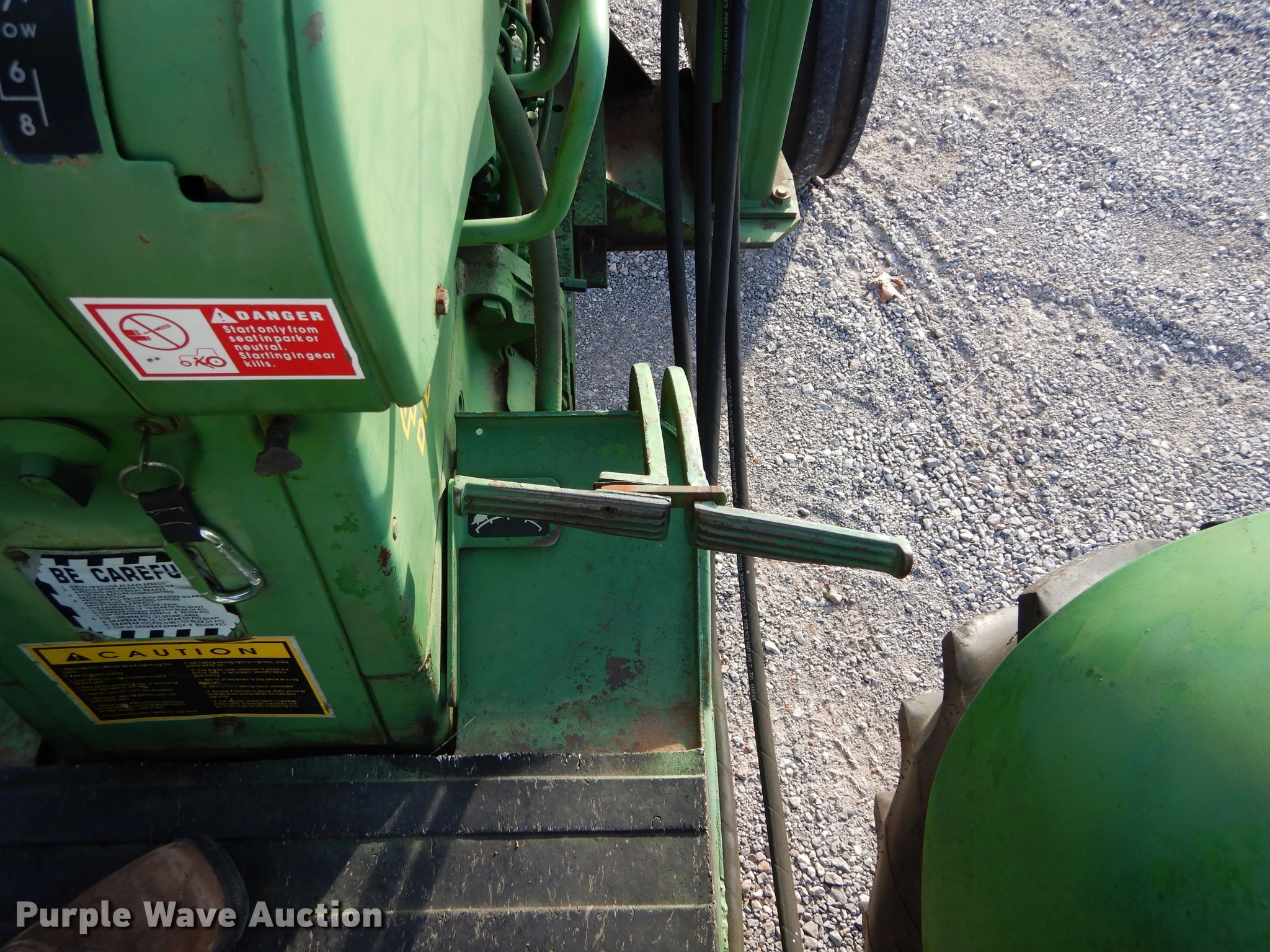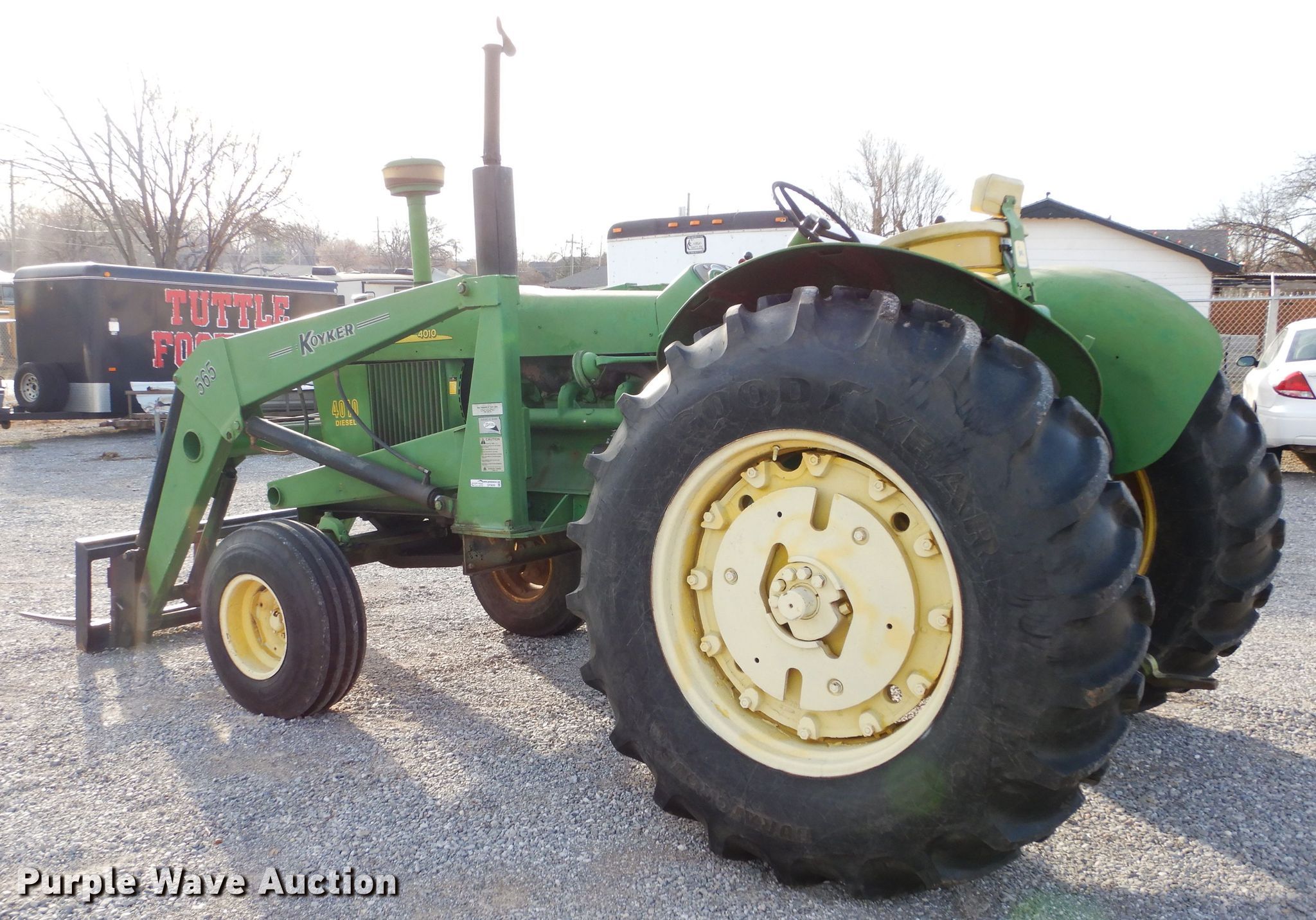 Purple Wave is selling a used Tractor in Oklahoma. This item is a John Deere 4010 tractor with the following: 3,490 hours on meter, John Deere four cylinder diesel engine, Manual transmission, 8F-2R gears, Koyker 565 loader, Bale spear, 540 PTO, Rear hydraulic remote set, 11L-15SL front tires, 18.4-34 rear tires, Serial 4010-2T45285