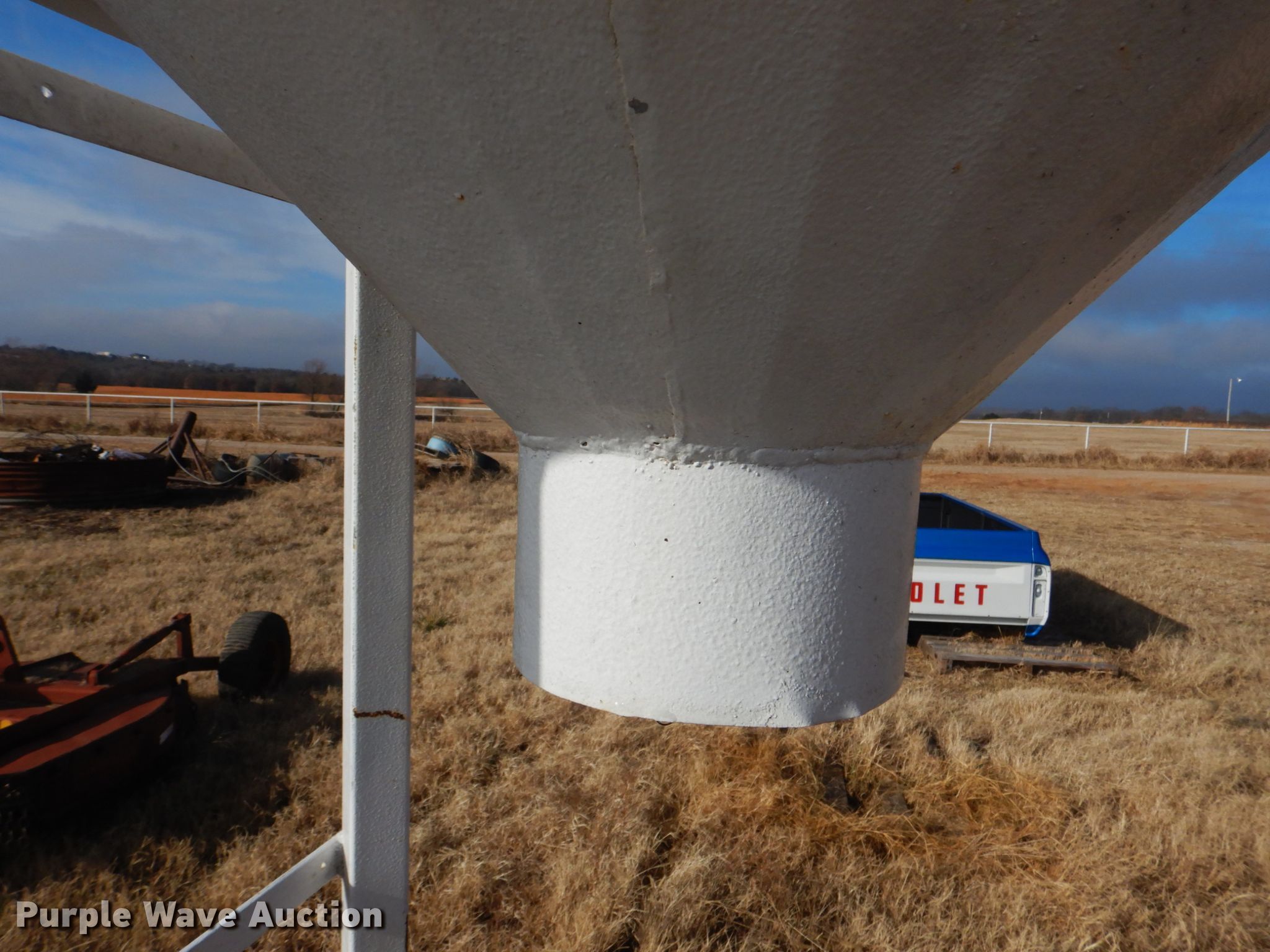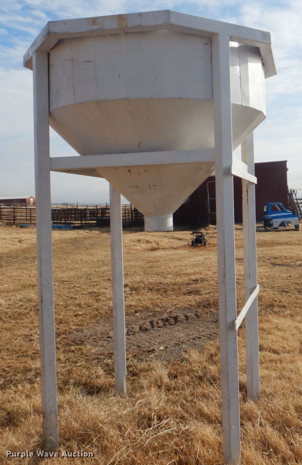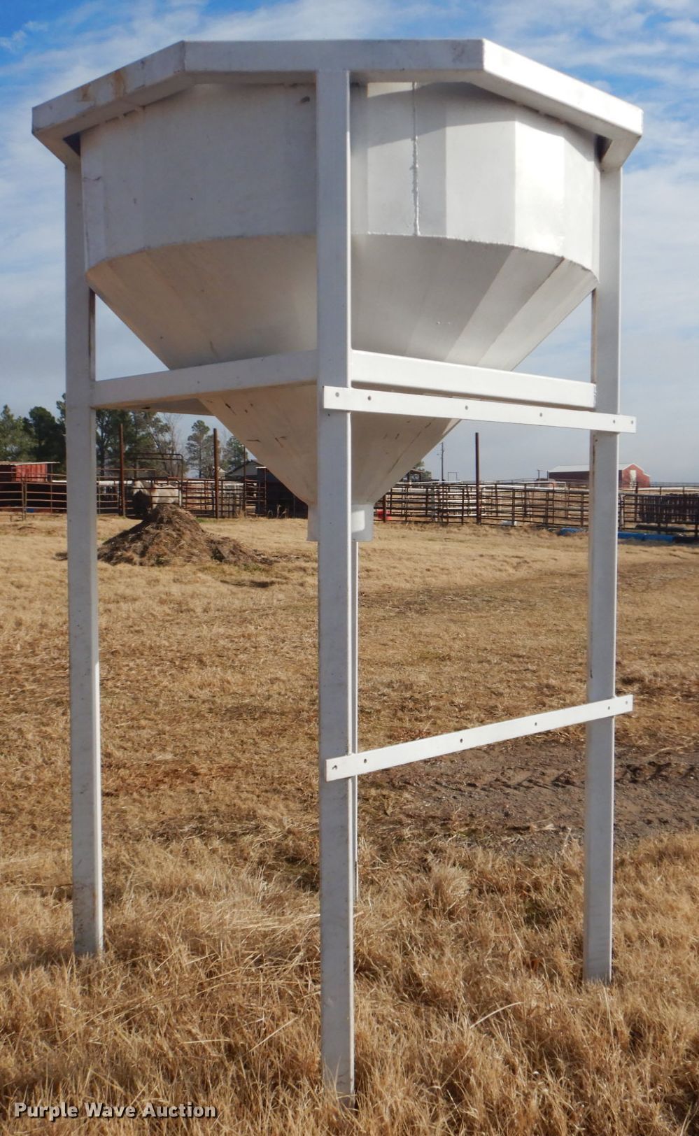 Purple Wave is selling a used Livestock Equip. in Oklahoma. This item is a Feeder with the following: 8'H, 8" outlet, Stand