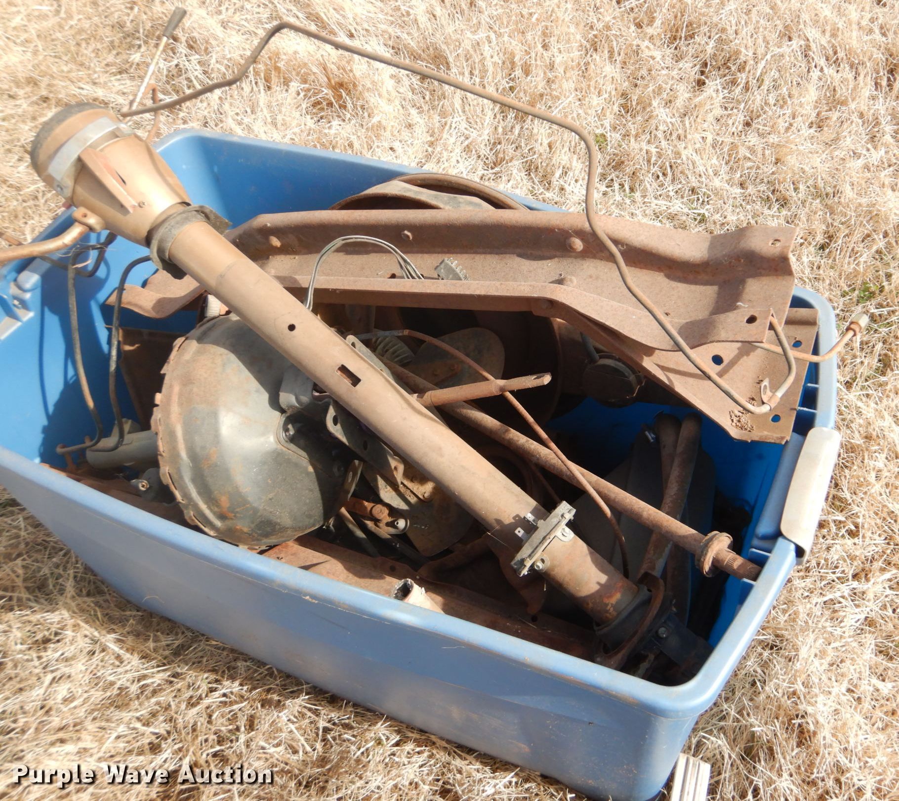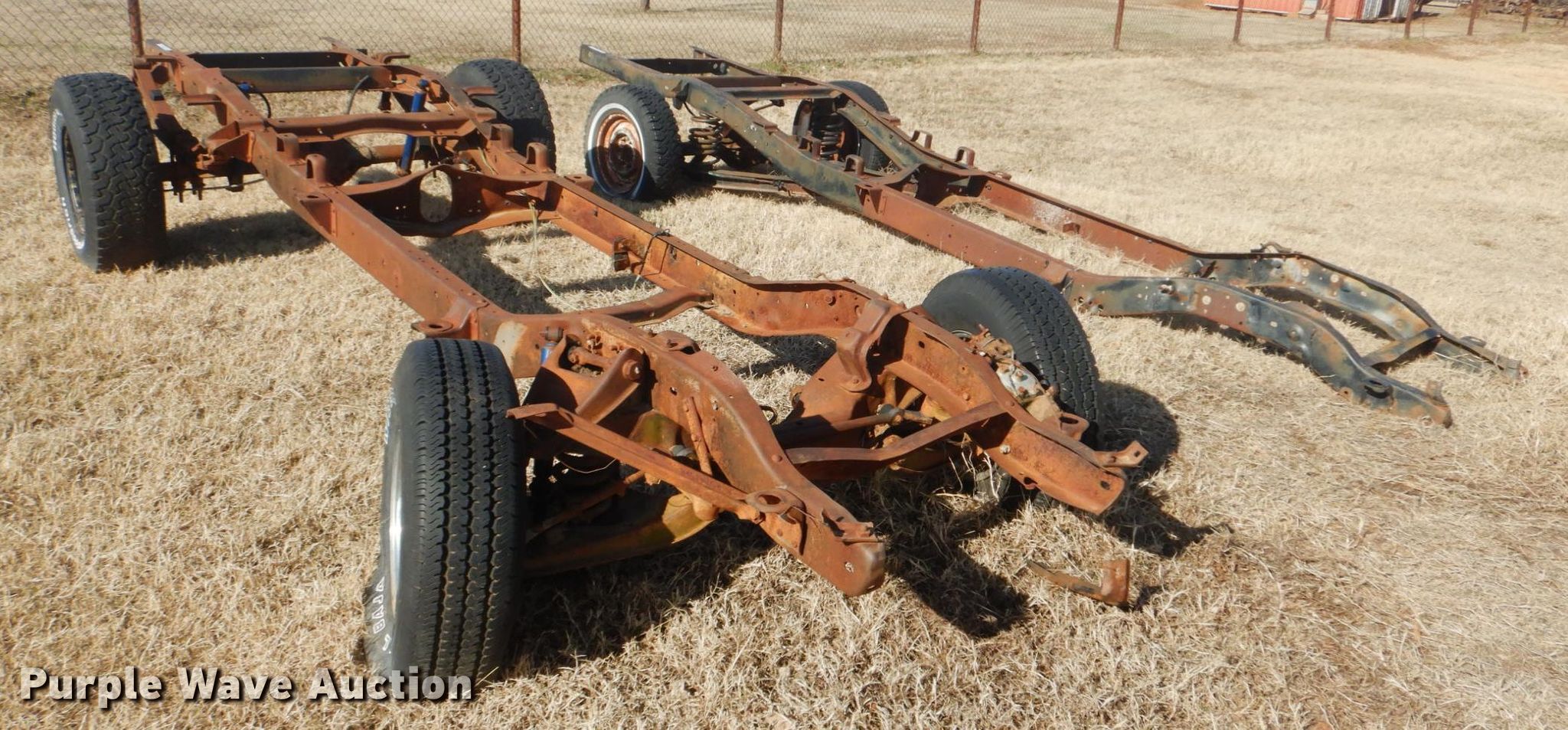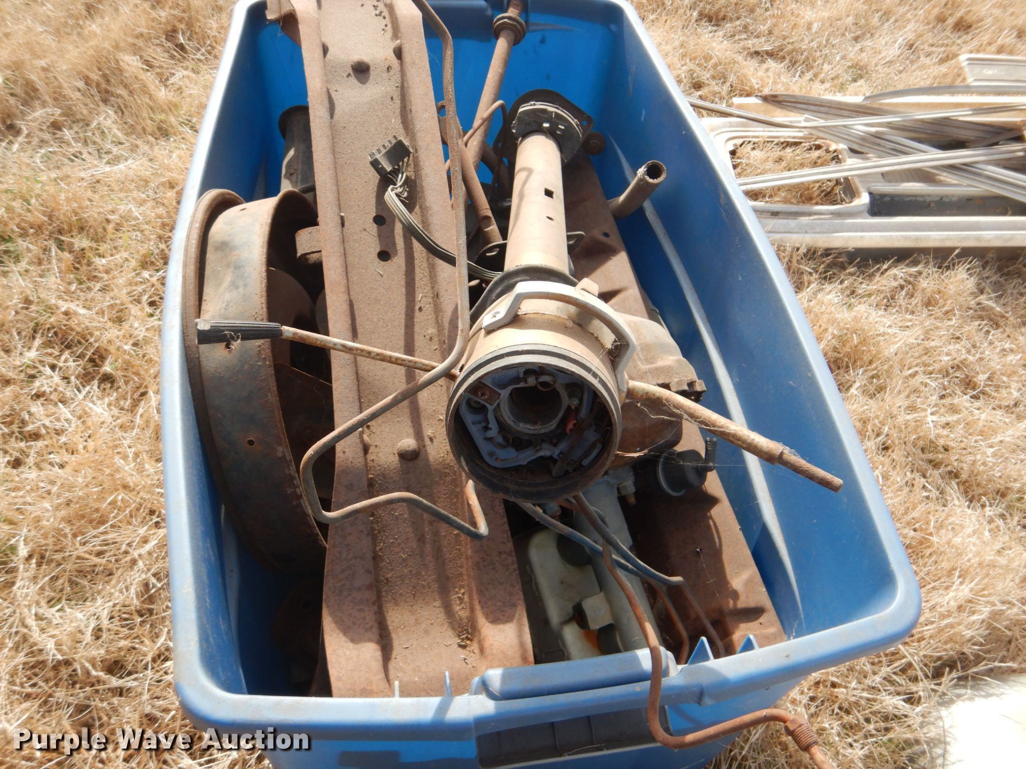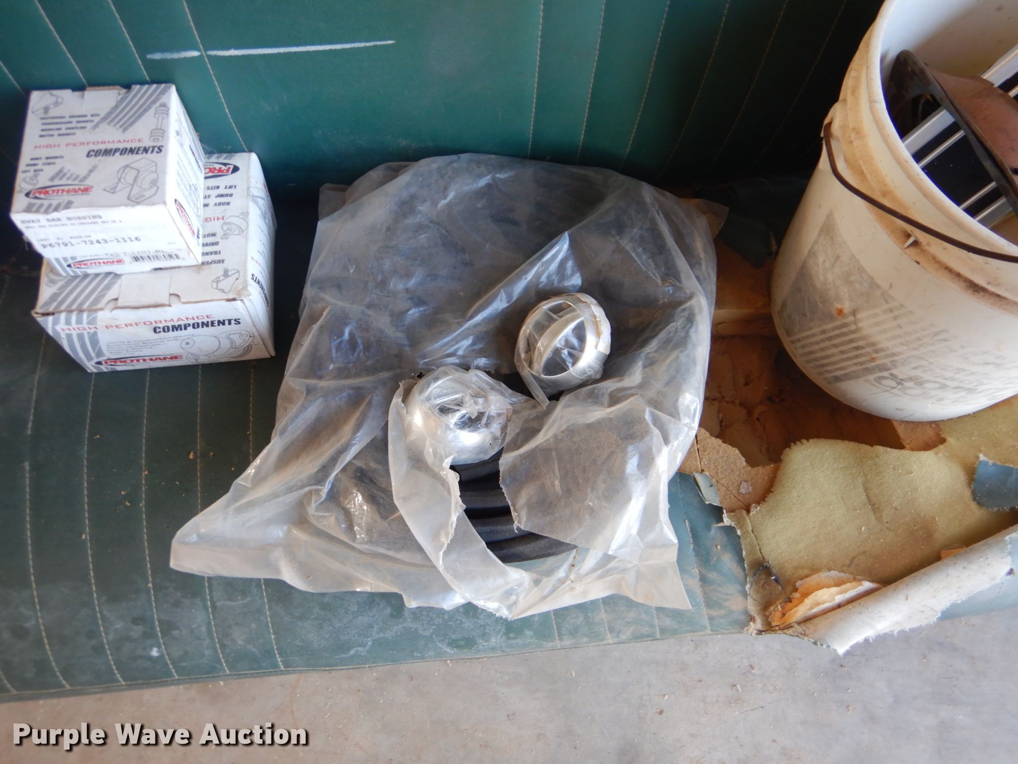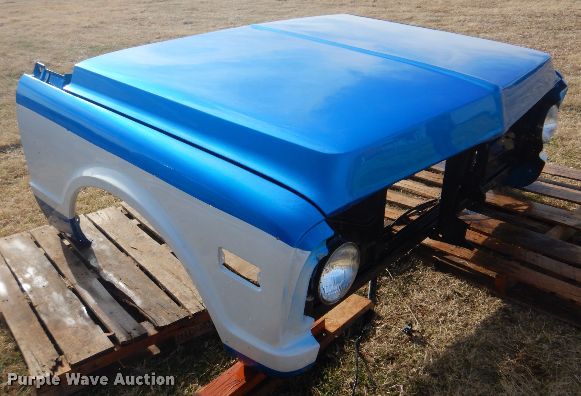 Purple Wave is selling a used Automotive Parts or Acces. in Oklahoma. This item is a 1969 Chevrolet truck parts with the following: Cab, front end, and bed, (2) chassis, 198"L, LT23575R15 front tires, 32x11.50R15LT rear tires, 305 Chevrolet V8 engine with headers, 383 Stroker short block, (2) 350 transmissions, 400 turbo transmission, Chevrolet headers, Chevrolet 350 engine on stand, Removed from 1979 Blazer, Four barrel Quadrajet carburetor, Four barrel carburetor, Two barrel Carburetor, Transmission cooler, Fan shroud, Drive shaft, Edelbrock air filter, Power steering pump, Air conditioner compressor and condensor, Aluminum rollers, rockers, and lifters, Wing windows, Rubber cab and window seals, Air conditioner parts, Cab and bed mount bushings, Bench seat, Mouldings, Grill, Rear bumper, Steering column and more