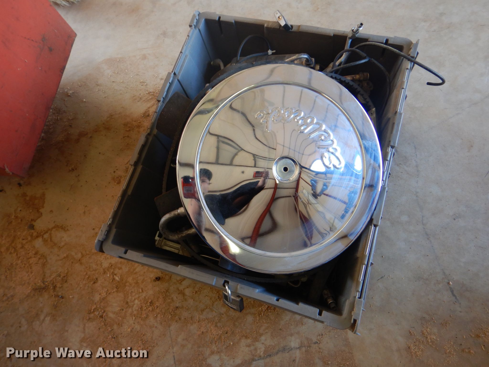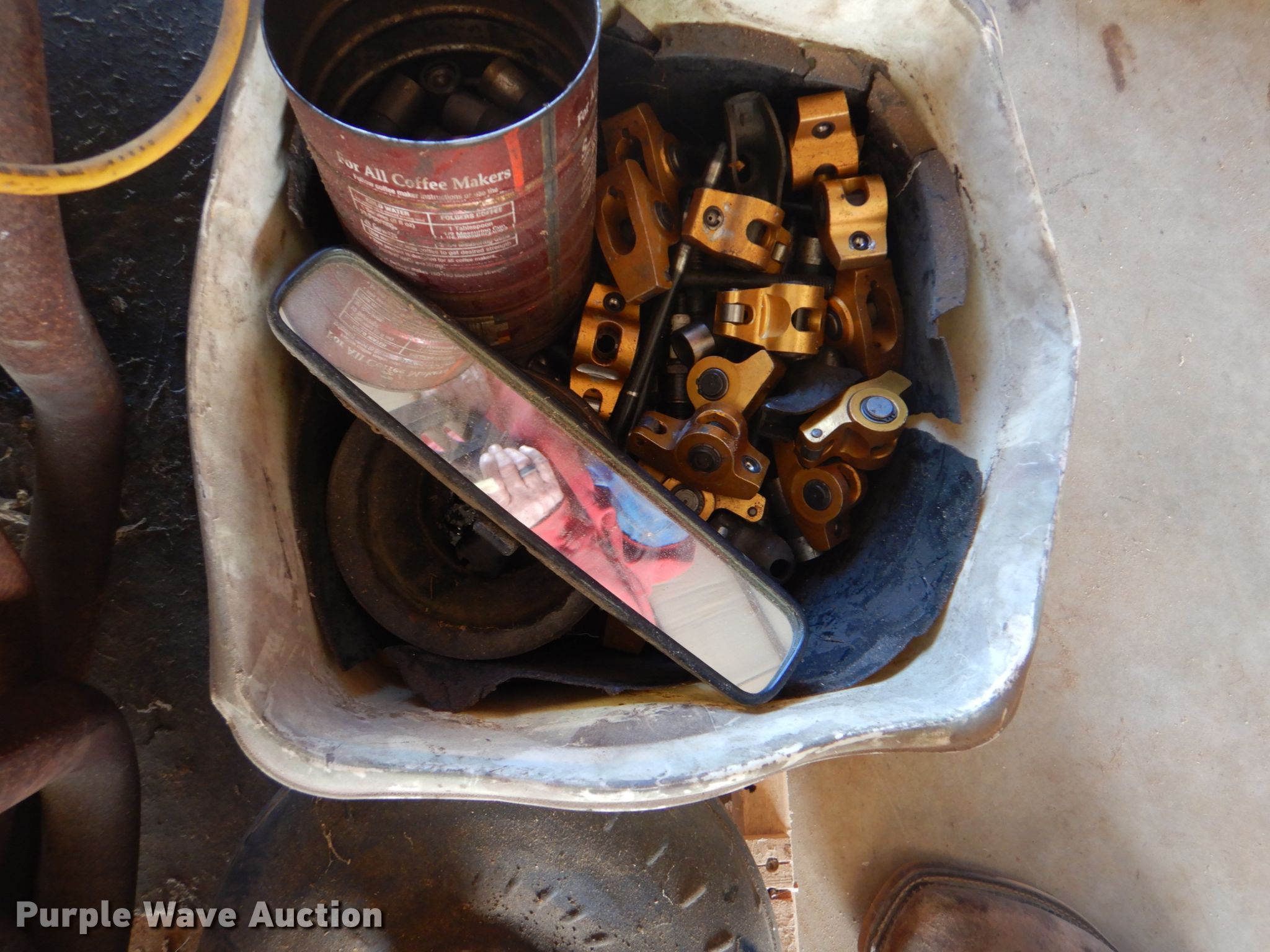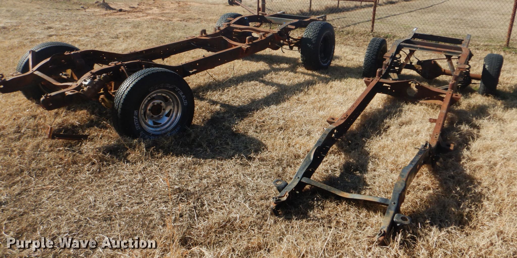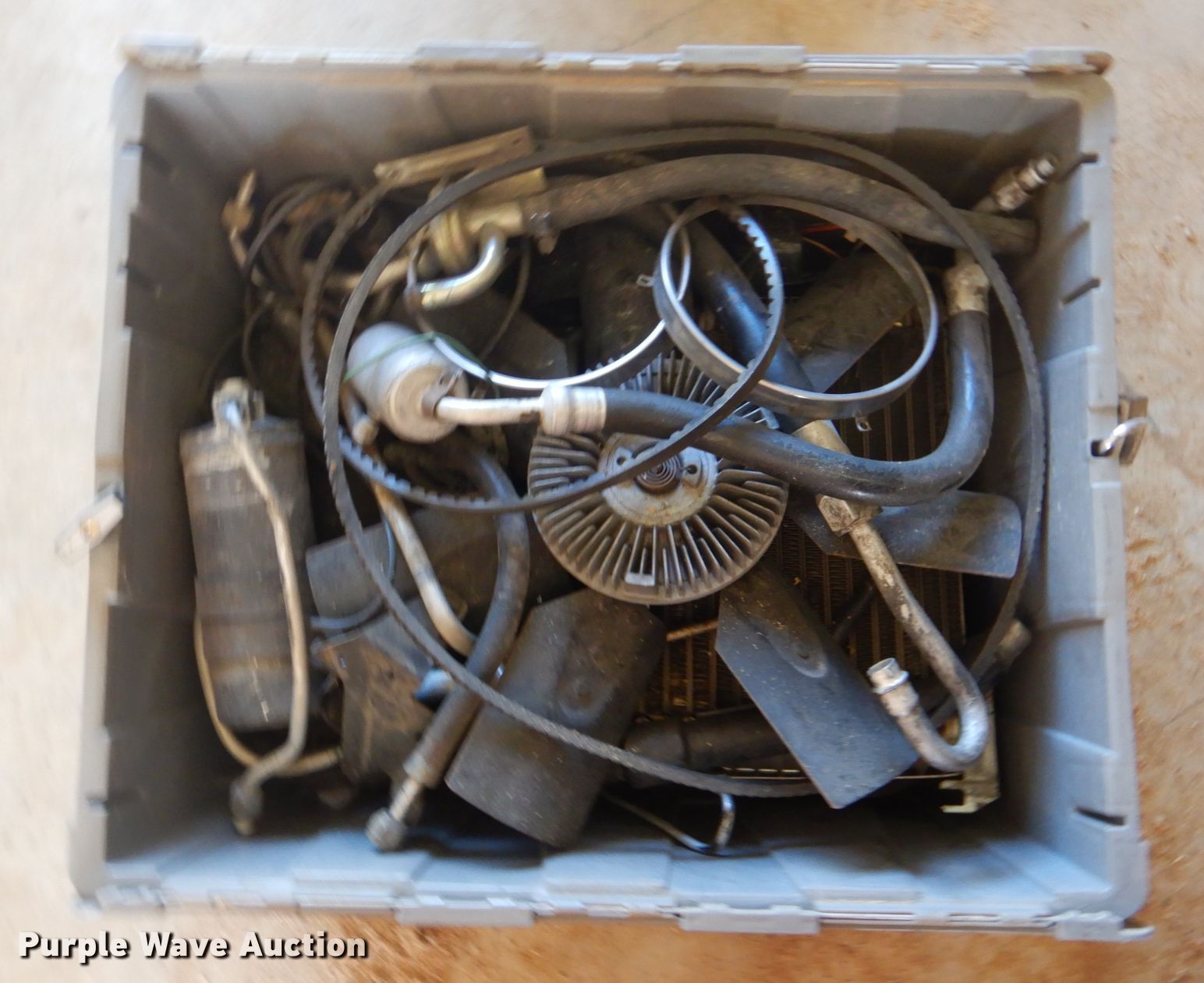 Purple Wave is selling a used Automotive Parts or Acces. in Oklahoma. This item is a 1969 Chevrolet truck parts with the following: Cab, front end, and bed, (2) chassis, 198"L, LT23575R15 front tires, 32x11.50R15LT rear tires, 305 Chevrolet V8 engine with headers, 383 Stroker short block, (2) 350 transmissions, 400 turbo transmission, Chevrolet headers, Chevrolet 350 engine on stand, Removed from 1979 Blazer, Four barrel Quadrajet carburetor, Four barrel carburetor, Two barrel Carburetor, Transmission cooler, Fan shroud, Drive shaft, Edelbrock air filter, Power steering pump, Air conditioner compressor and condensor, Aluminum rollers, rockers, and lifters, Wing windows, Rubber cab and window seals, Air conditioner parts, Cab and bed mount bushings, Bench seat, Mouldings, Grill, Rear bumper, Steering column and more