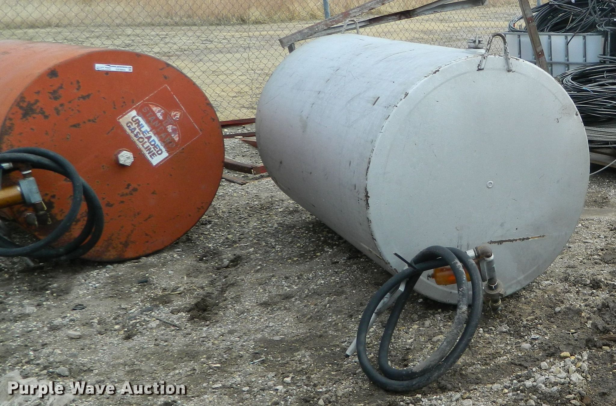 Purple Wave is selling a used Fuel and Lube in Kansas. This item is a (2) fuel tanks with the following: 38" x 60", 39" x 62", Fill hose with nozzle