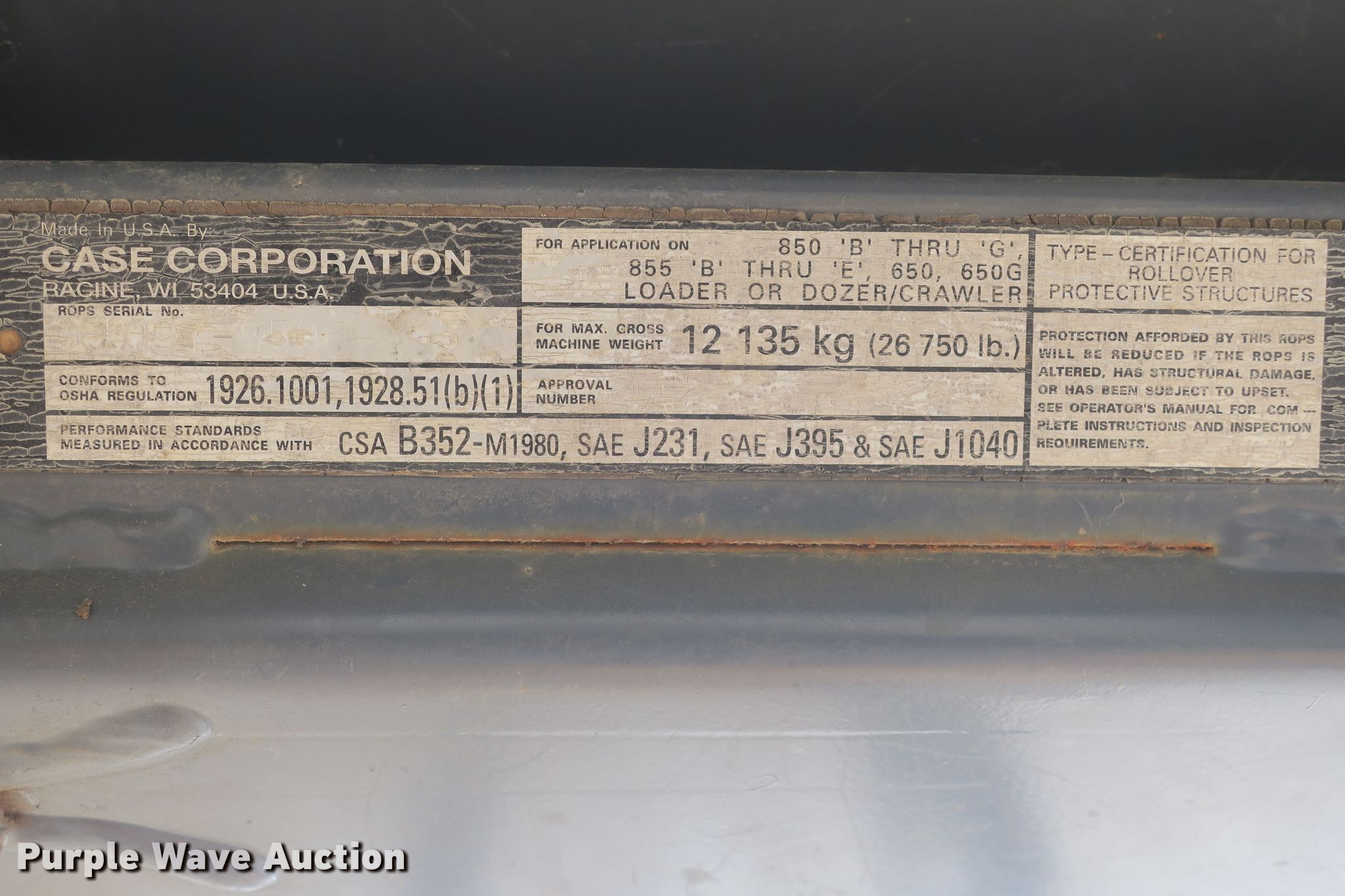 Purple Wave is selling a used Crawler Dozer in Missouri. This item is a 1998 Case 850G dozer with the following: 6,323 hours on meter, Case 6T590 six cylinder diesel engine, Serial 45607256, Powershift transmission, 4F-4R gears, OROPS, Clutch brake steering, Screen guard, Sweeps, 99'W six-way dozer blade, Allied W3C winch, Six bottom rollers, 18"W single grouser track pads, Serial JJG0253921