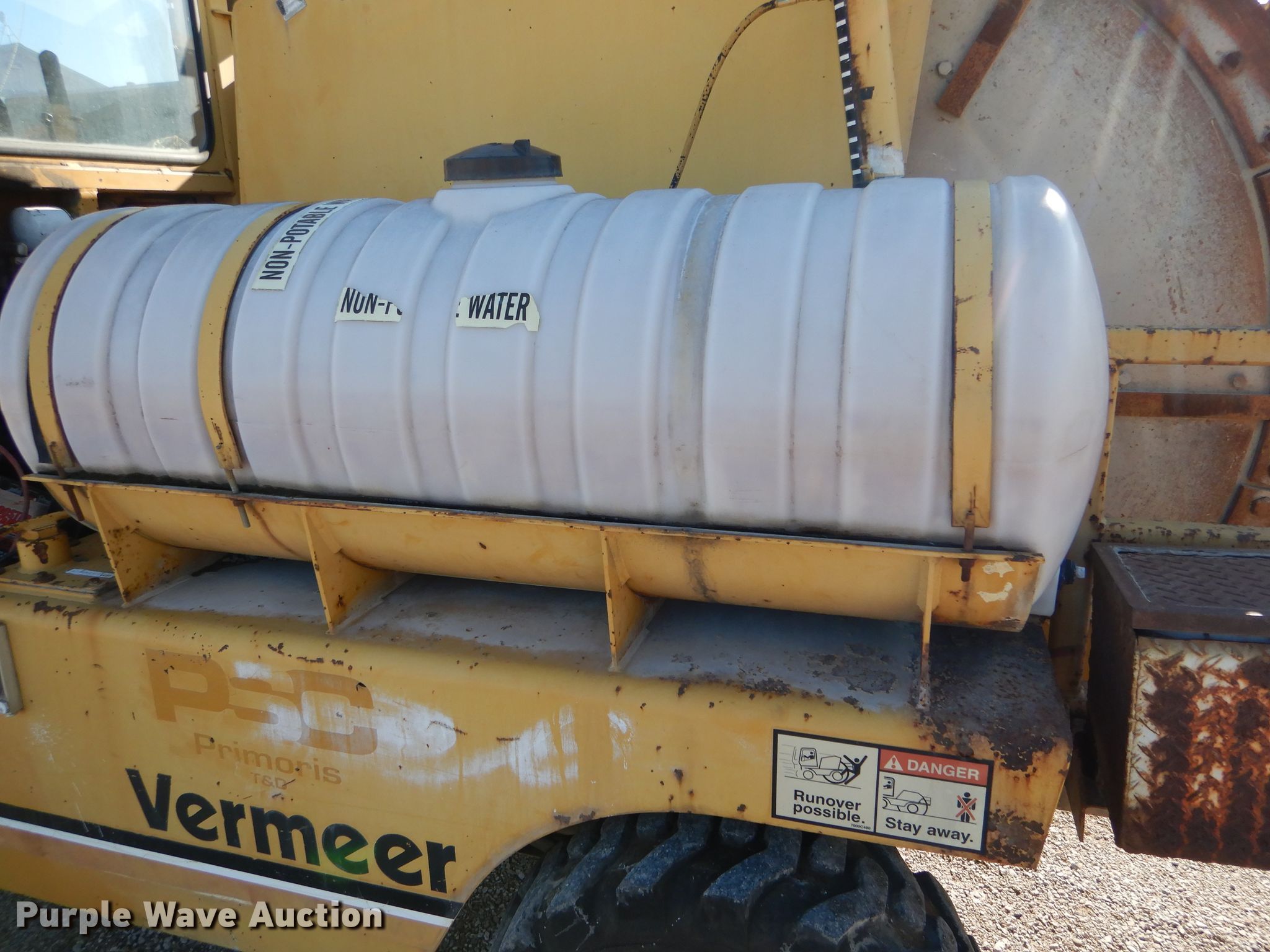 Purple Wave is selling a used Trencher or Rock Saw in Illinois. This item is a Vermeer CC135 rock saw with the following: 3,801 hours on meter, Three cylinder diesel engine, Hydrostatic transmission, EROPS, Rock wheel model CC84, 89" diameter, 5" cutting width, Rock teeth, Serial 1VRG07089N1000349, 12-16.5 tires, Serial 1VRF122V8N1000356