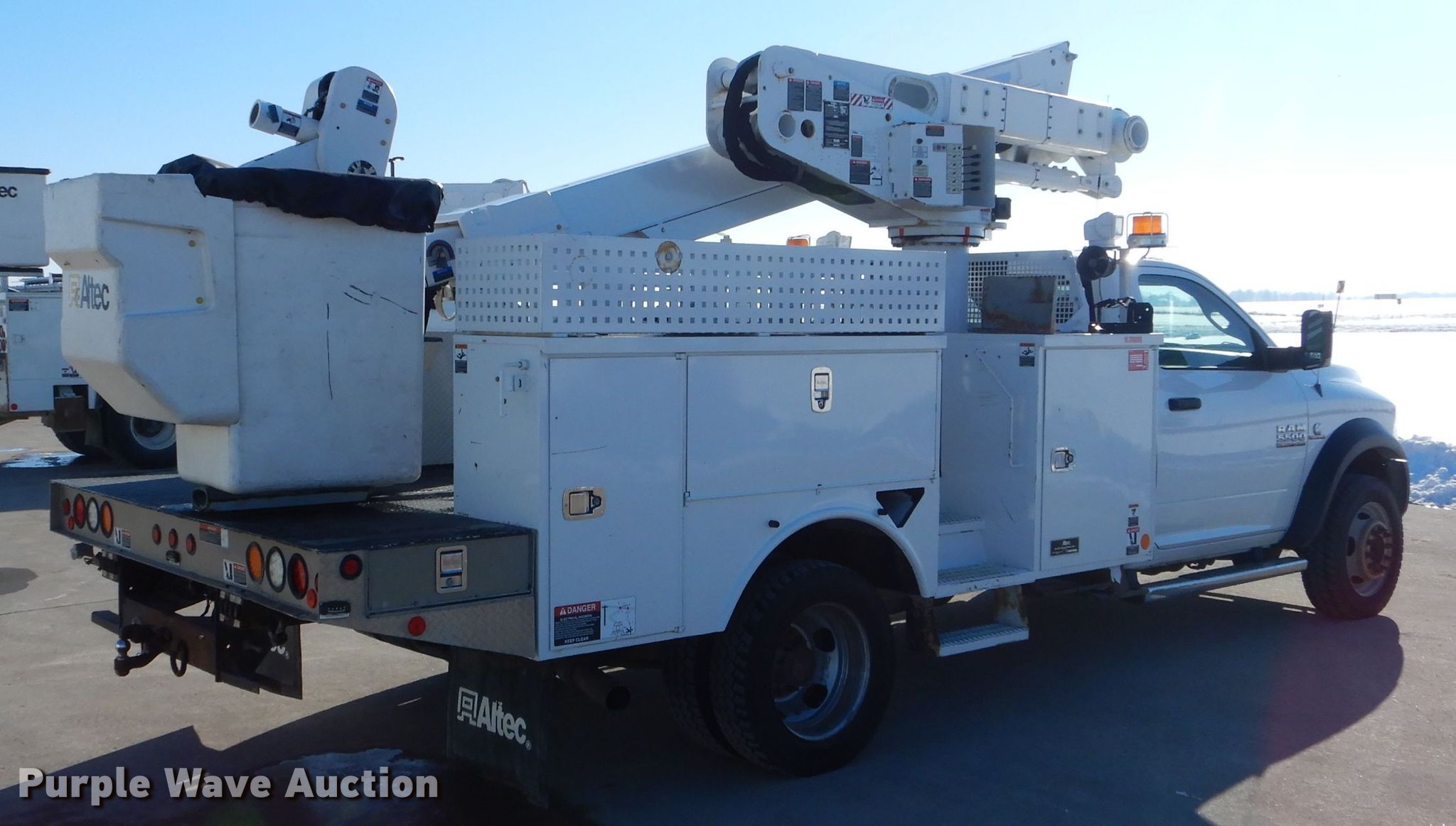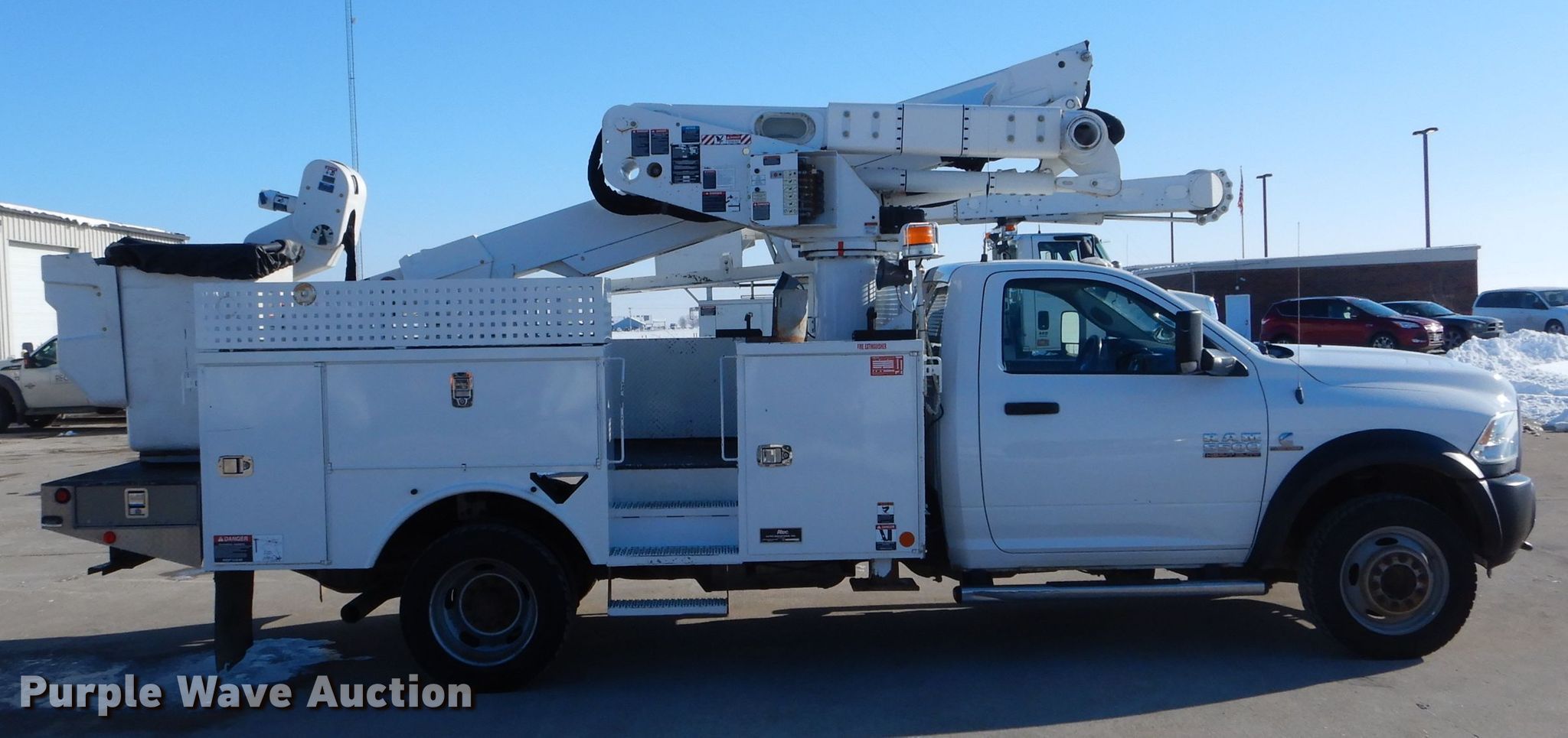 Purple Wave is selling a used Bucket Truck in Missouri. This item is a 2013 Dodge Ram 5500 bucket truck with the following: 151,534 miles on odometer, 6.7L L6 OHV 24V diesel engine, Automatic transmission, Four wheel drive, AC and heat, PTO, Altec 11'L utility bed, Altec AT40M articulating, insulated, telescopic boom, 400 lbs max lift capacity, 40' maximum lift height, Man basket, Platform controls, Material handler, Serial 1113CZ01407, Spring suspnesion, Hydraulic brakes, 168" wheelbase, 225/70R19.5 tires, GVWR 19,500 lbs, Dielectric test report available upon request