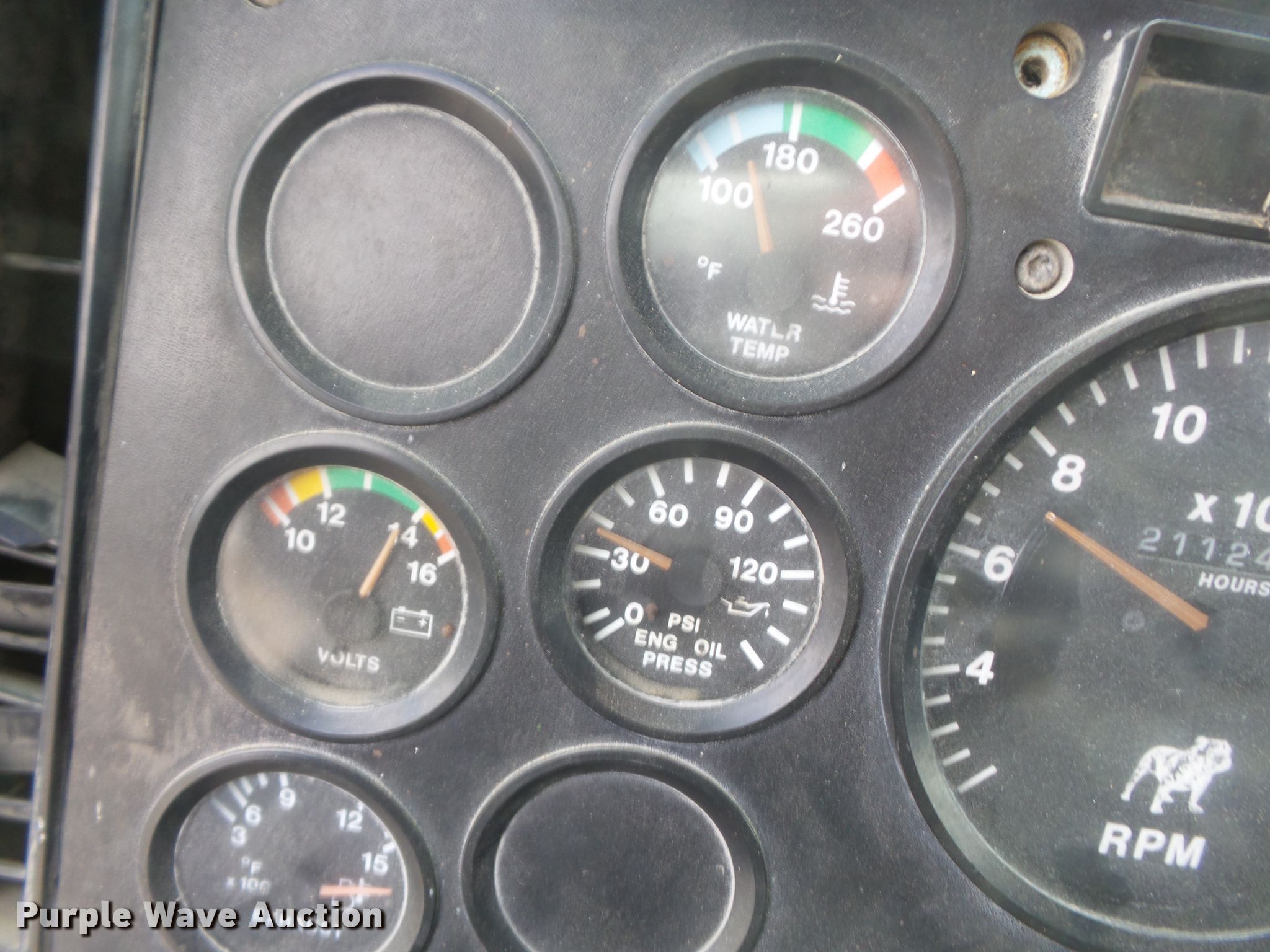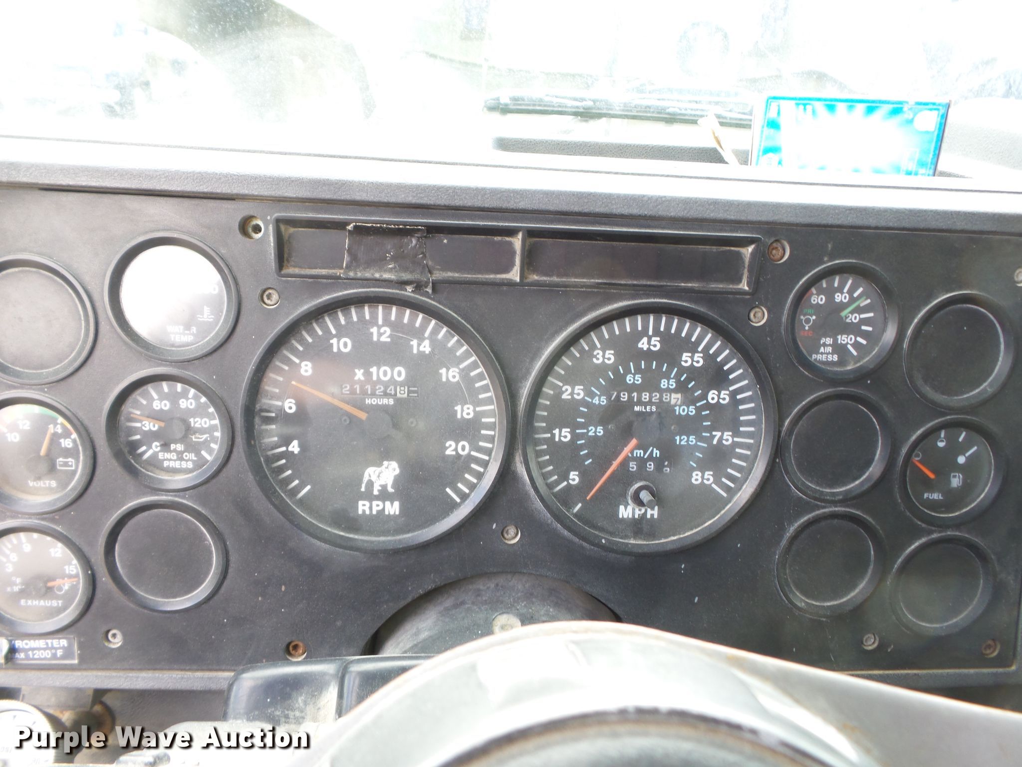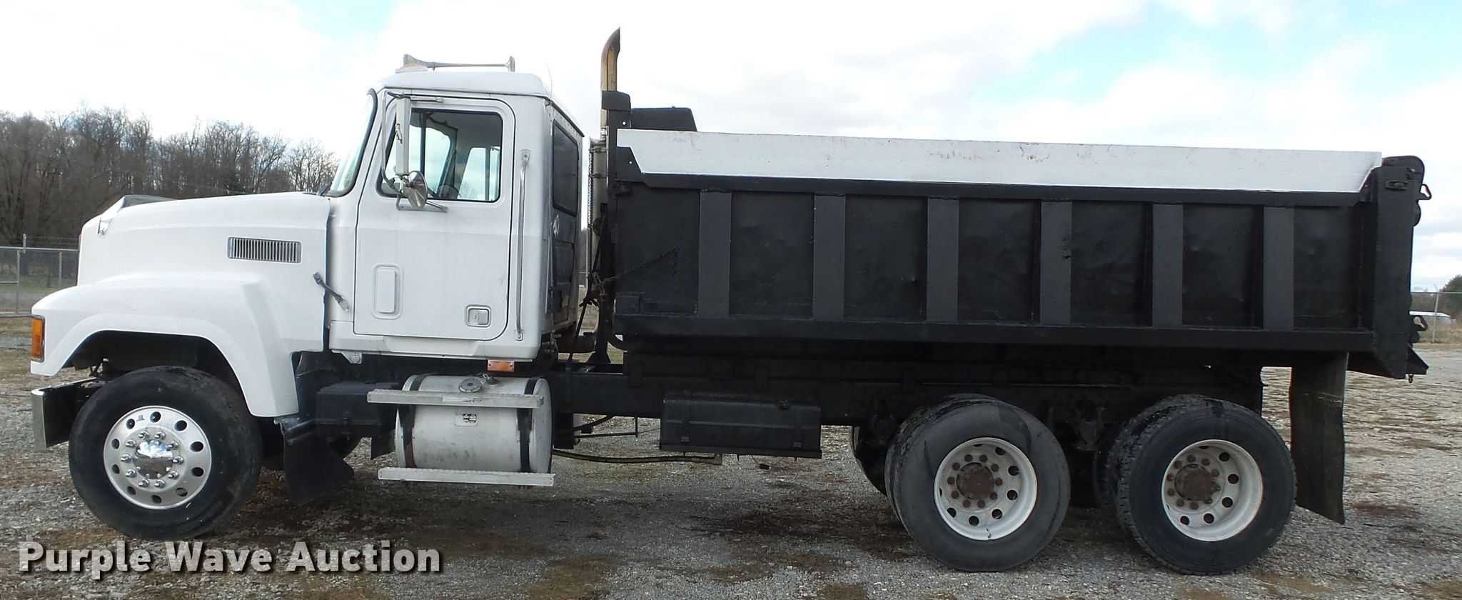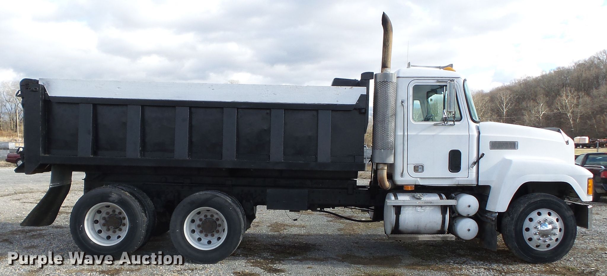 Purple Wave is selling a used Construction Dump Truck in Missouri. This item is a 1996 Mack CH600 dump truck with the following: 791,828 miles on odometer, 21,124 hours on meter, Mack E7 12.0L L6 diesel engine, Eaton Fuller nine speed manual transmission, Tandem axle, Inter-axle differential lock, AC and heat, Cruise, PTO, 15'L x 93"W steel dump bed, 36" side height, 10" side board height, Liner, Single ram hoist, Manual end gate, Air suspension, Air brakes, 192" wheelbase, 275/80R22.5 tires