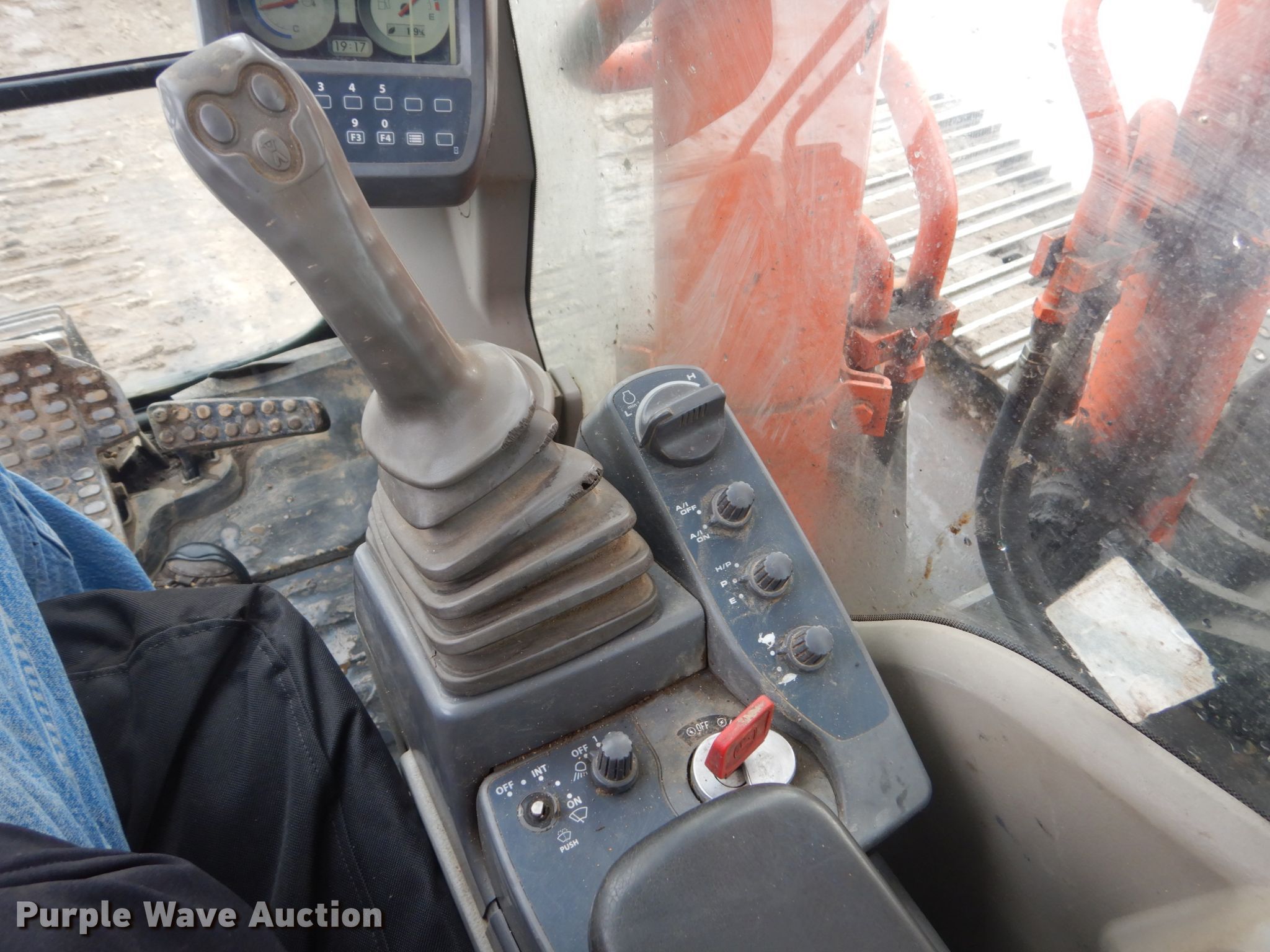 Purple Wave is selling a used Hydraulic Excavator in Minnesota. This item is a 2006 Hitachi ZX270LC-3 excavator with the following: 9,688 hours on meter, Isuzu AH-4HK1X four cylinder diesel engine, Serial 4HK1XDHAA-01, Two speed hydrostatic transmission, Enclosed cab, AC and heat, Pattern changer, Auxiliary hydraulics, Standard boom, 12'4" stick lenght, Hitatchi 53'W bucket, (6) teeth, Hydraulic thumb, Removable counter weights, 31.5"W triple grouser track pads, Serial FF01V4Q030319