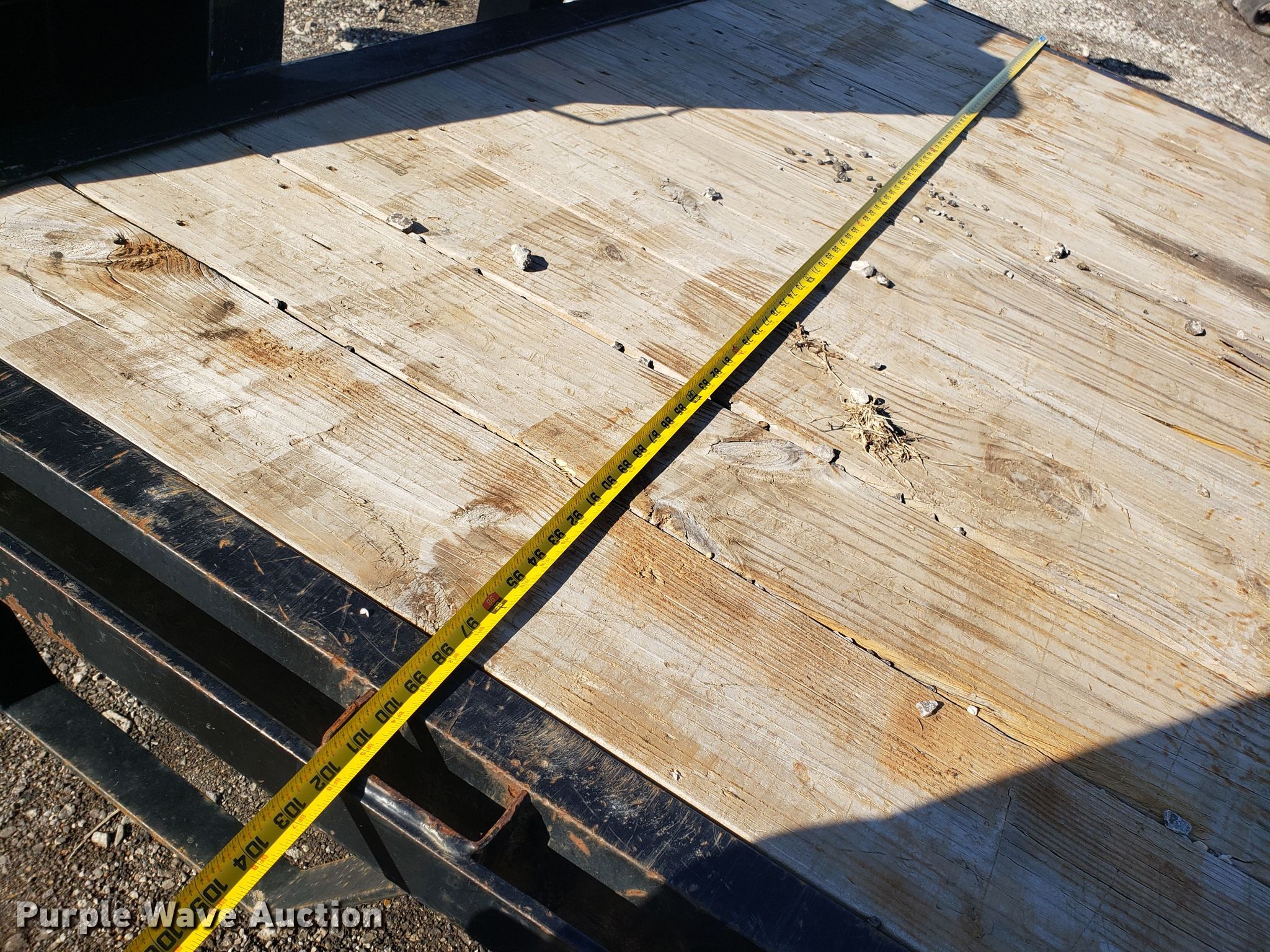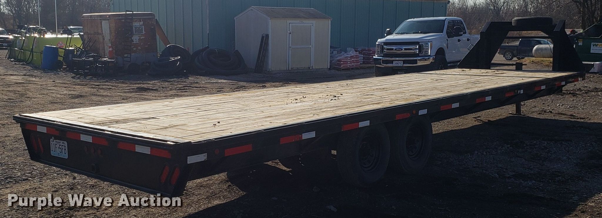 Purple Wave is selling a used Flat or Drop Deck Trailer in Missouri. This item is a 2013 flat bed trailer with the following: 38'L x 102"W overall, 30'L wood deck, Gooseneck hitch, Single leg landing gear, Spring suspension, Electric brakes, Tandem axle, 235/80R16 tires, GAWR 7,000 lbs