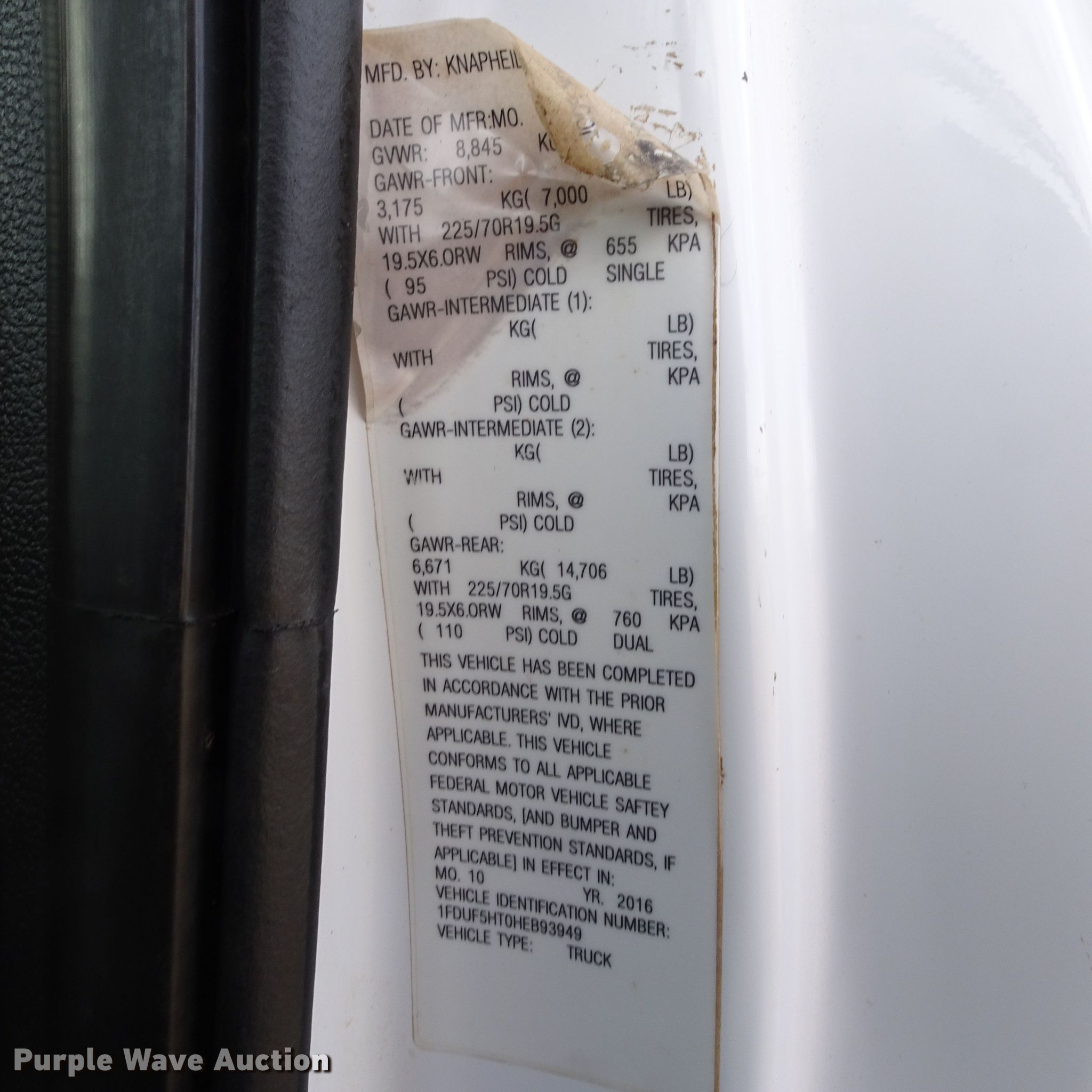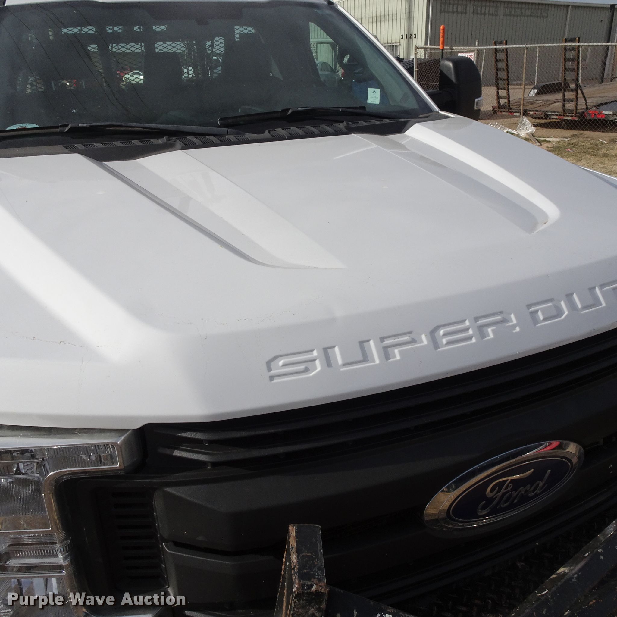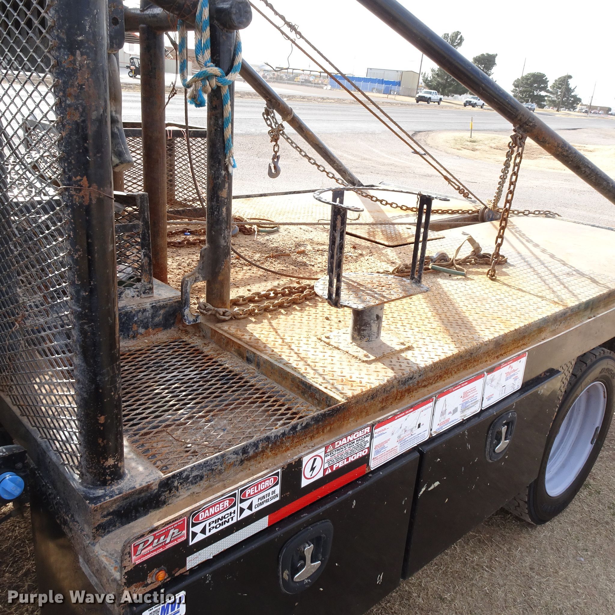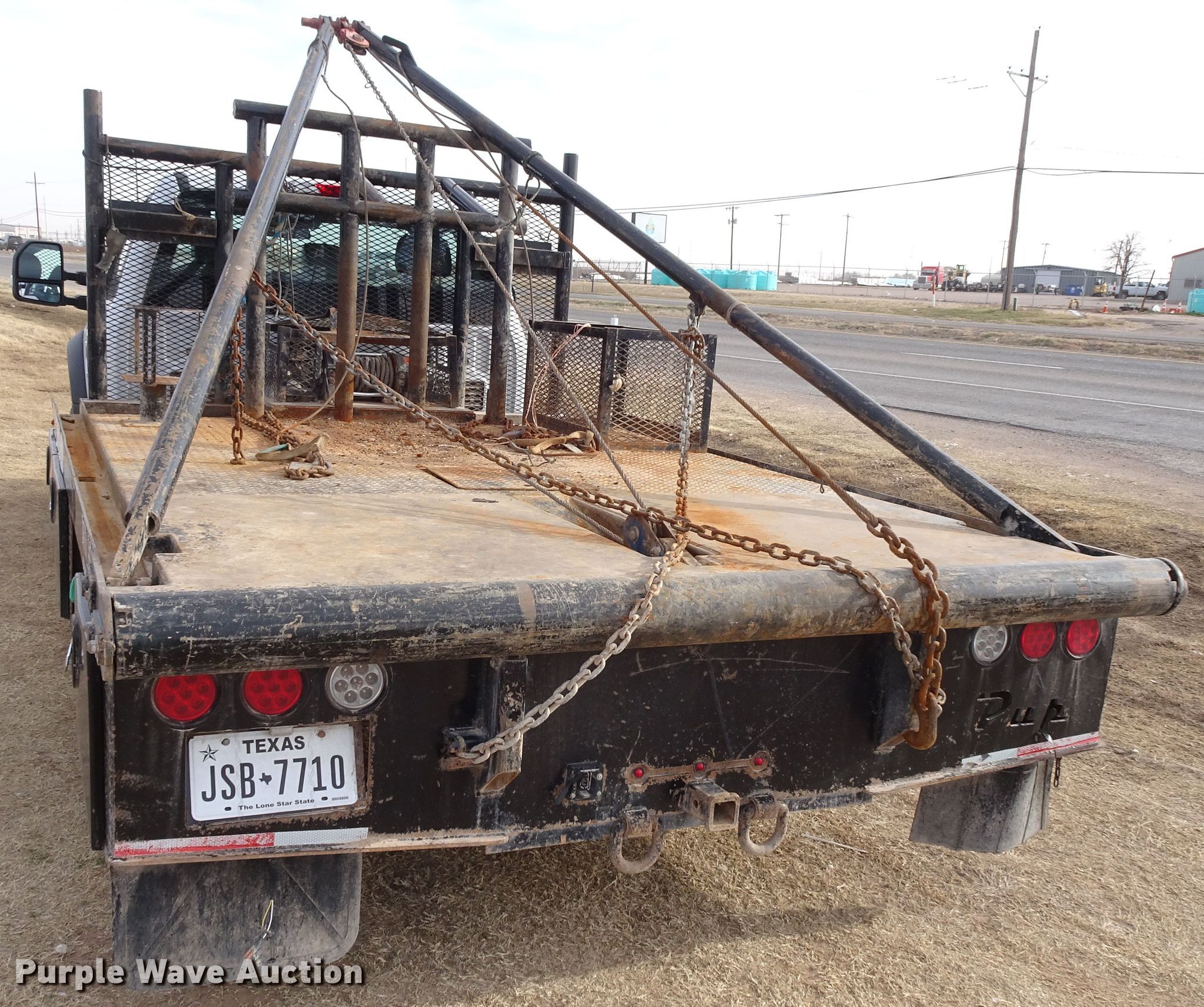 Purple Wave is selling a used Flat Bed Truck in Texas. This item is a 2017 Ford F550 flatbed truck with the following: 93,576 miles on odometer, 6.7L V8 OHV 16V diesel engine, Automatic transmission, Four wheel drive, Single axle, AC and heat, Power windows and locks, 138"L x 97"W flatbed, 13' gin pole, CE winch, Rolling tailboard, Gooseneck hitch, Spring suspension, Hydraulic brakes, 225/70R19.5 tires, GVWR 19,500 lbs