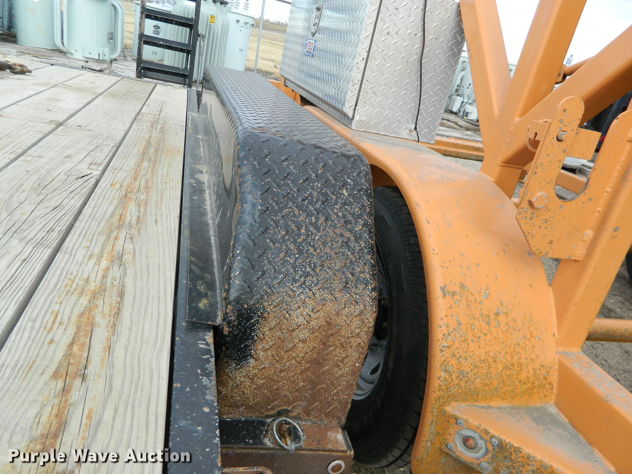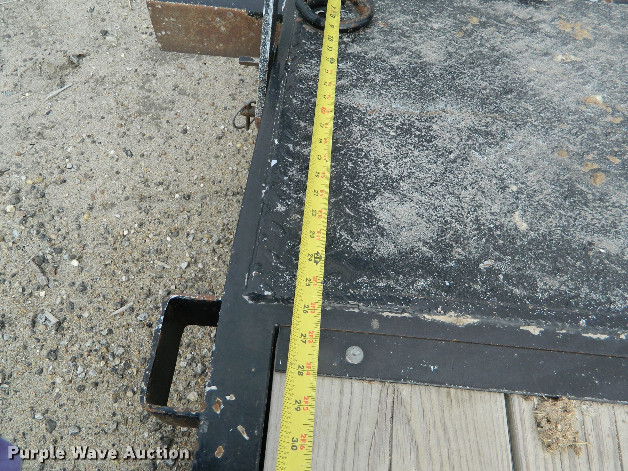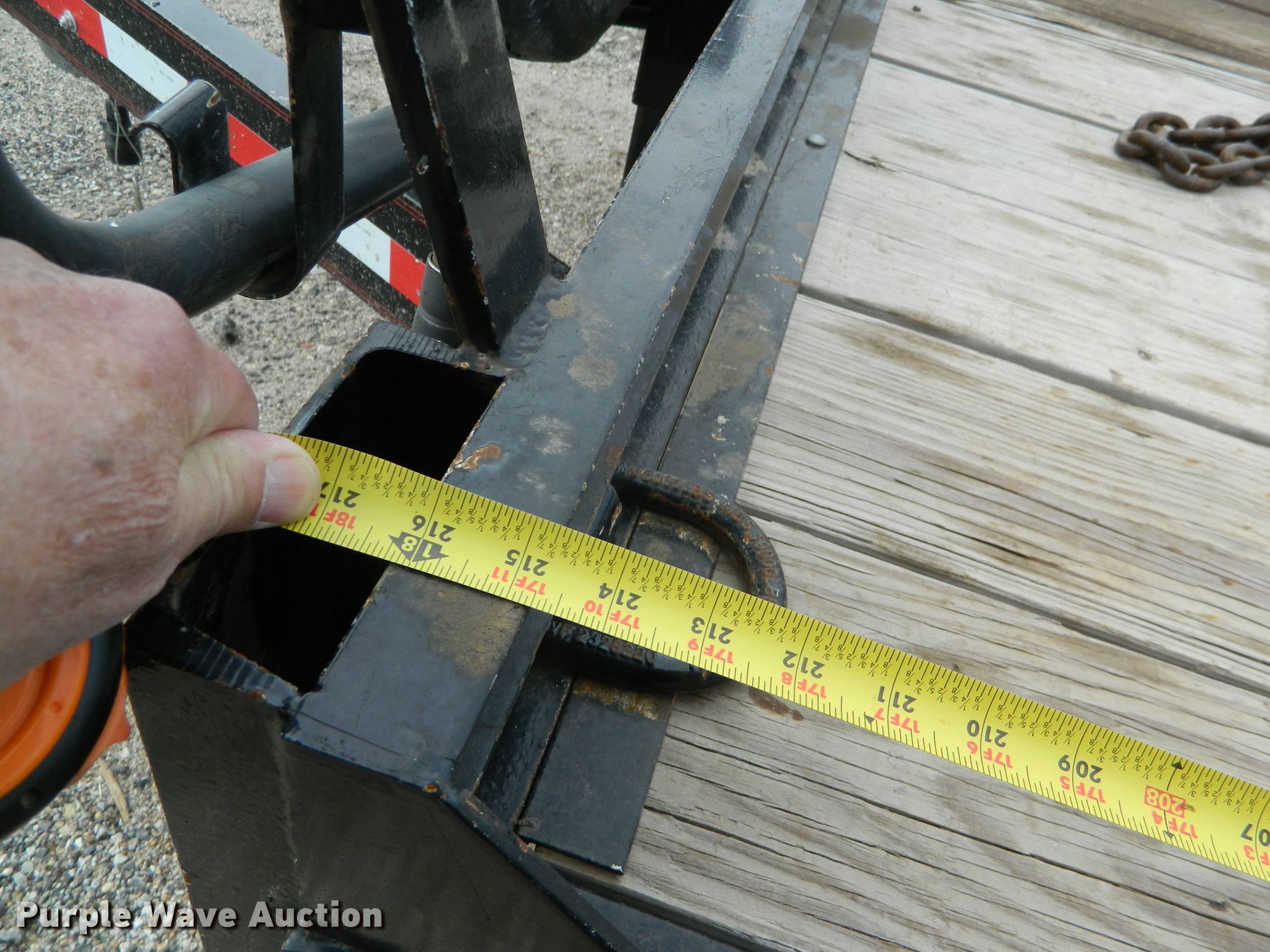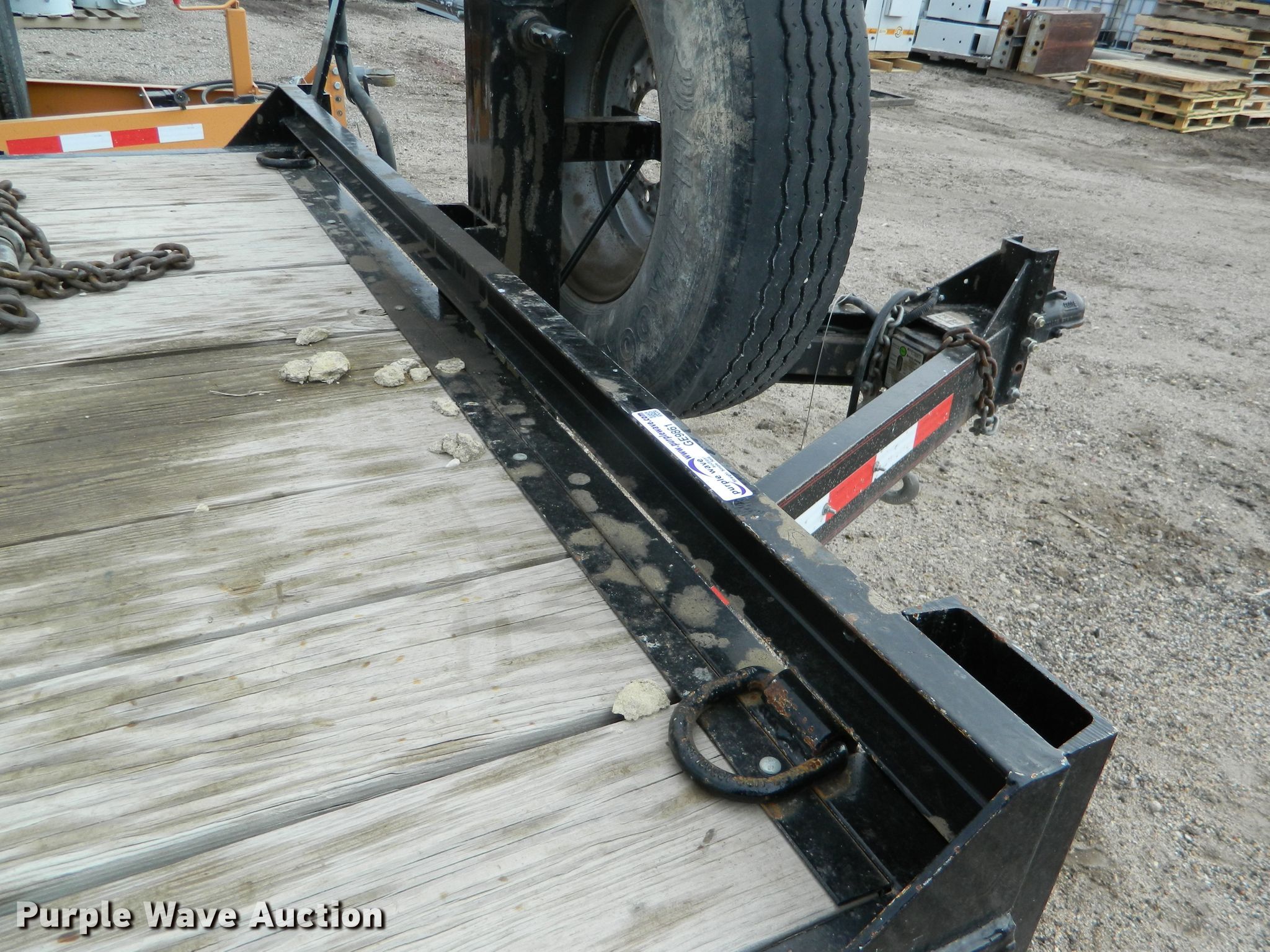 Purple Wave is selling a used Equip. Trailer in Kansas. This item is a 2014 Eagle 7X20FTA70-14000 equipment trailer with the following: 25'L x 102"W overall, 18'L x 82"W deck, 2' tail length, 5'L ramps, Single leg landing gear, 2 5/16" ball hitch, Spring suspension, Electric brakes, Tandem axle, Steel wheels, 7.50R16 tires, GVWR 14,000 lbs