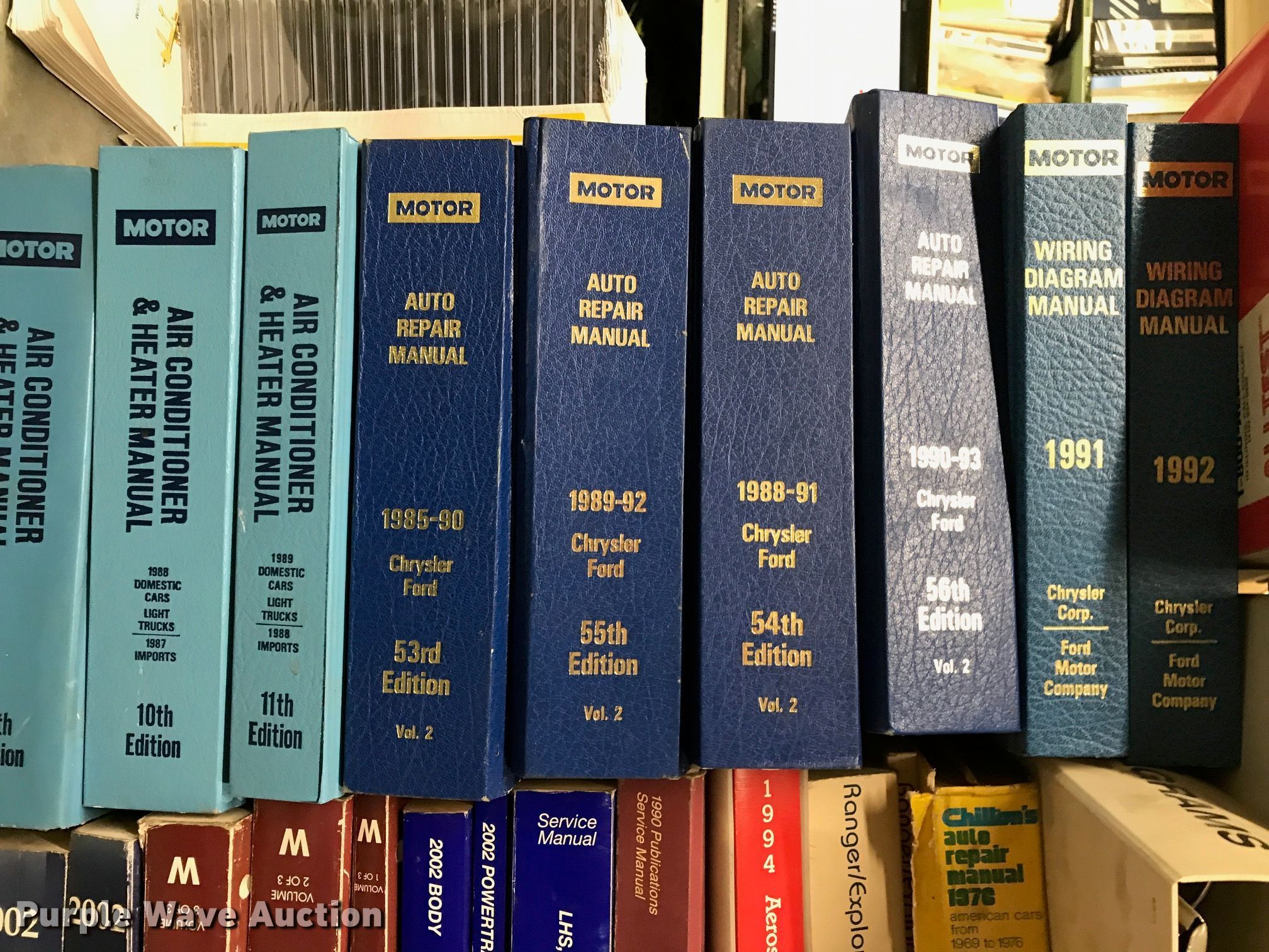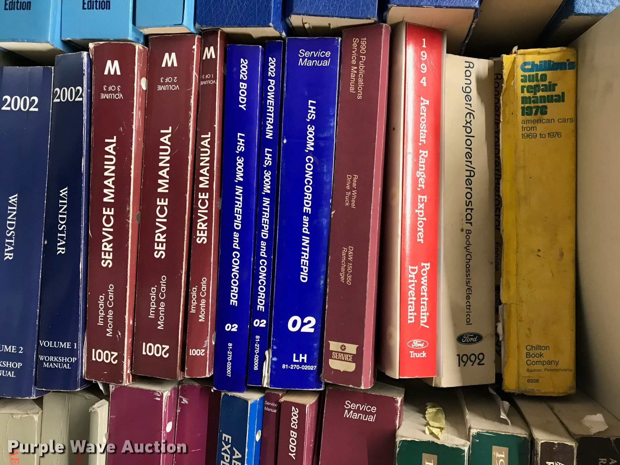 Purple Wave is selling a used Tools in Kansas. This item is a (21) auto repair manuals with the following: Aerostar/Ranger/Bronco II 1990 Vol 1 and 2, F and B 600-700-800-900 1993, Lincoln Town Car, Crown Victoria/ Grand Marquis 1993, DR Ram Truck Vol 1-3, Aerostar, Ranger Explorer Supplement 1996, Aerostar, Ranger Powertrain, Drivetrain 1997, Aerostar, Ranger Body chassis 1997, Chilton Auto repair manual 1996, Ranger/Explorer Aerostar 1992, Aerostar, Ranger, Explorer 1994, D&W 150-350 Ram charger 1990, LHS, 300M, Conconcorde and Intrepid 2002, LHS, 300M, Conconcorde and Intrepid 2002 power train, LHS, 300M, Conconcorde and Intrepid 2002 body, Impala, Monte Carlo Vol 1-3, Windstar 2002 Vol 1-2, Wiring Diagram manual 1991, Wiring Diagram manual 1992, Auto repair manual 1980-83, Auto repair manual 1988-92, Auto repair manual 1985-90