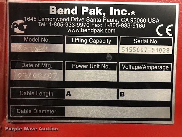 Purple Wave is selling a used Parts Washer in Kansas. This item is a 2007 Bend Pak 300 engine/parts washer with the following: 240V, Single phase, Serial 5155097-51028