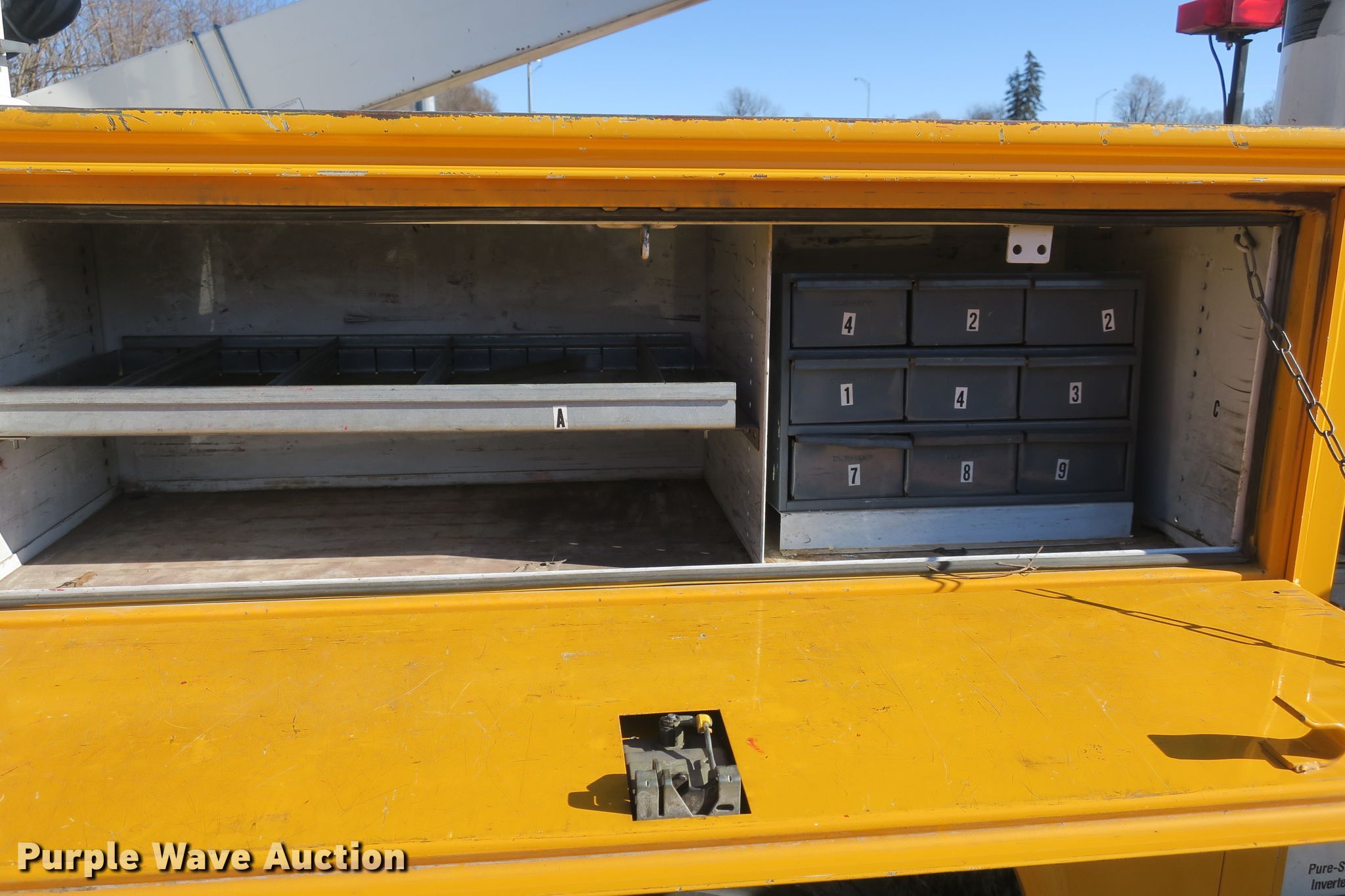 Purple Wave is selling a used Bucket Truck in Missouri. This item is a 2008 Ford F550 bucket truck with the following: 233,906 miles on odometer, 6.4L V8 OHV 32V diesel engine, Automatic transmission, Single axle, PTO, Knapheide 6132D54J utility bed, 13'L, Puresine inverter, Serial 20070330-0064952, Versalift VST240N01 boom, 16' retracted boom length, 1,000 lbs max lift capacity, Articulating telescopic boom, Man basket, Ground and platform controls, Serial GF07001, Spring suspension, Hydraulic brakes, 225/70R19.5 tires, Check engine light on, ECM issues, Misfire on no. 7 cylinder