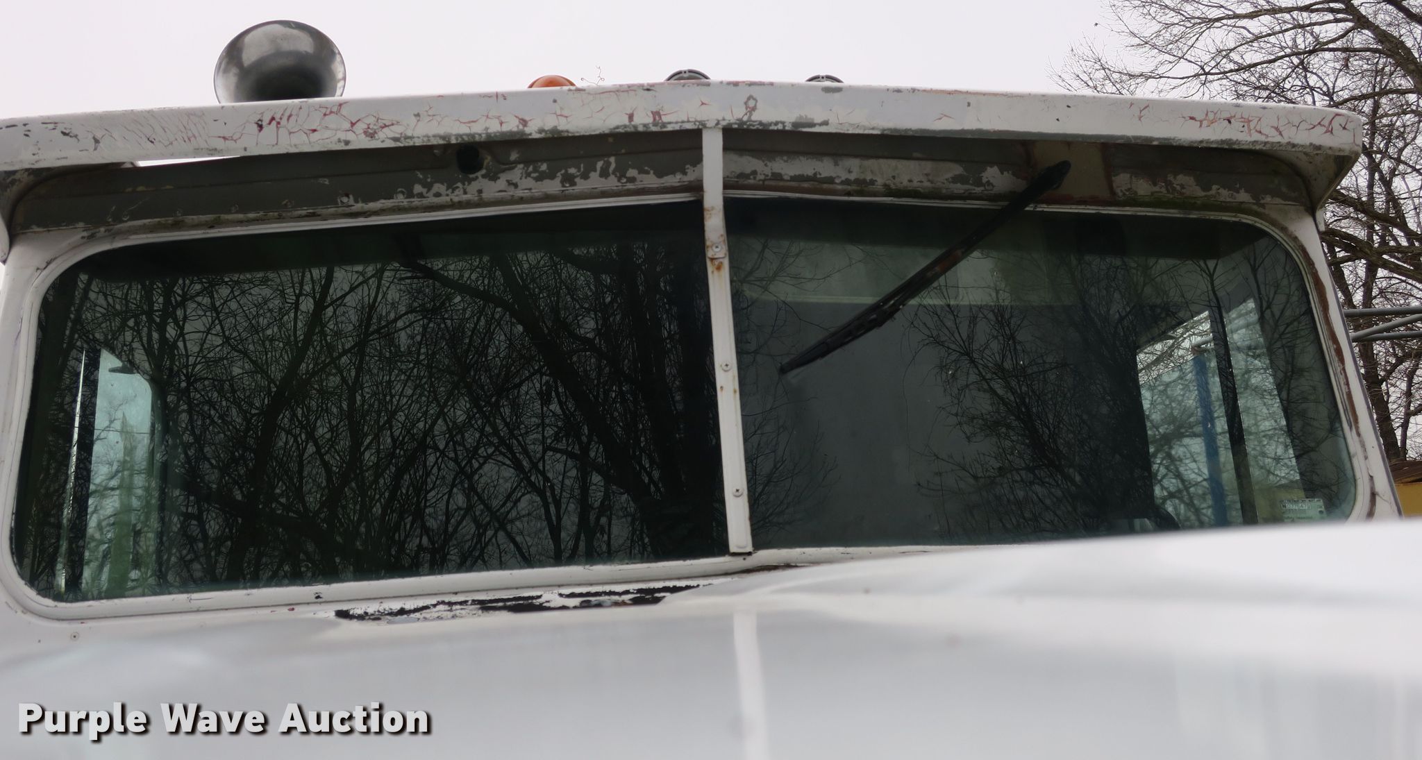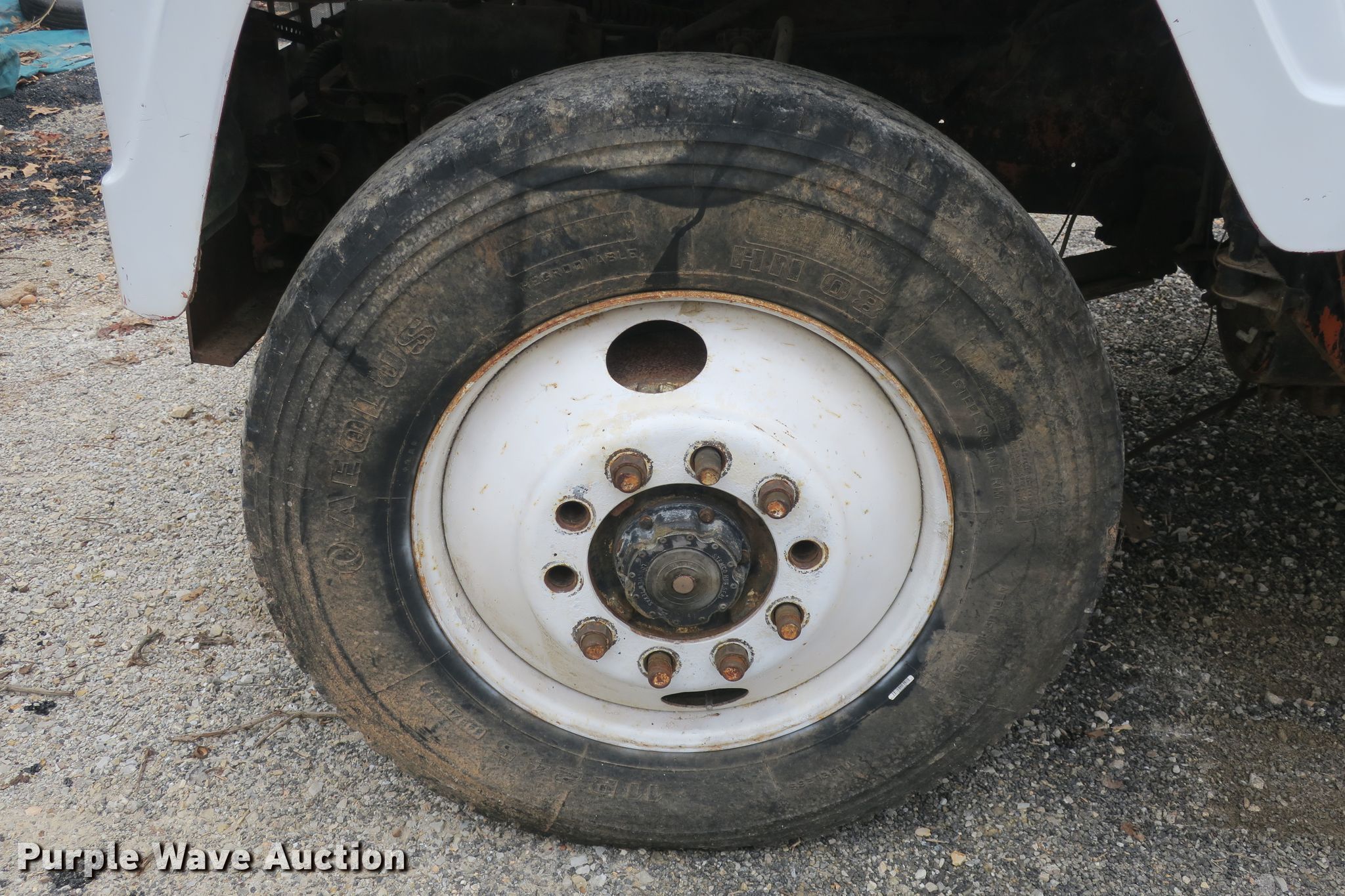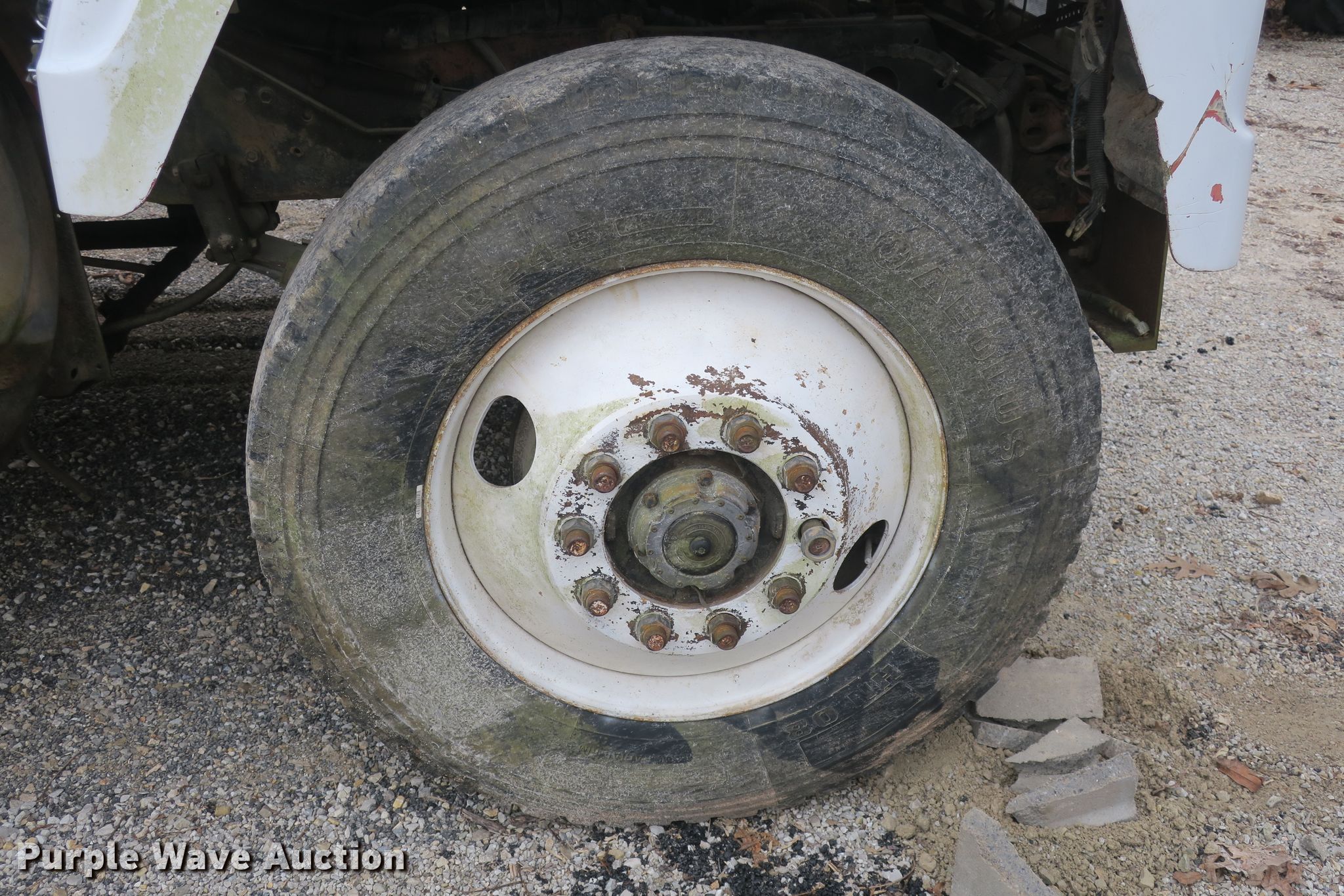 1980 International F4370 dump truck. 643,834 miles on odometer, No engine, No transmission, Single axle, 14'L x 97"W dump bed 36" side height, 8" side board height, Spring suspension, 11R24.5 tires, No PTO, Rear unattached, included in bed, Main cylinder unattached, included in bed, No air cylinder for end gate, Parts missing, Non-operational unit, Unit must be towed or hauled. Missouri title. D2137KGB19681. Mineral Springs Road District. 18300 FR 1170. Cassville, MO 65625