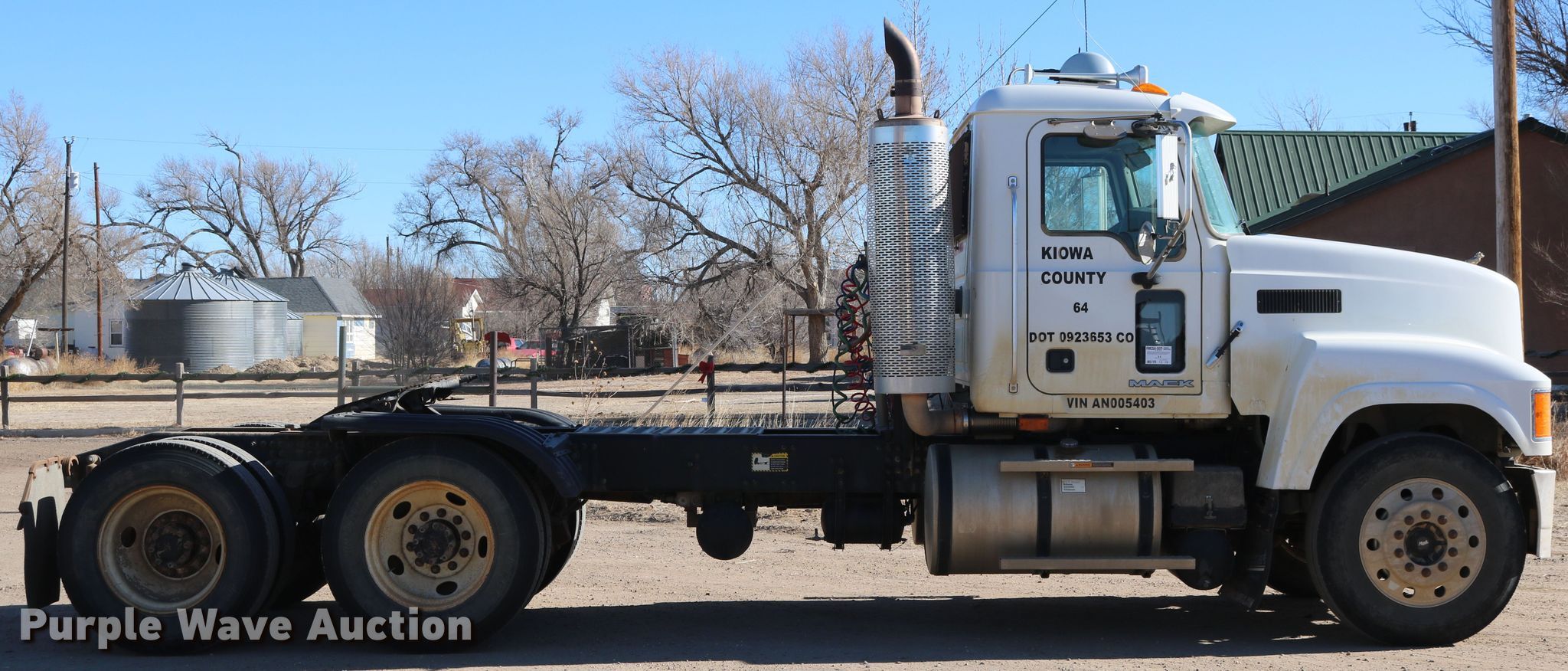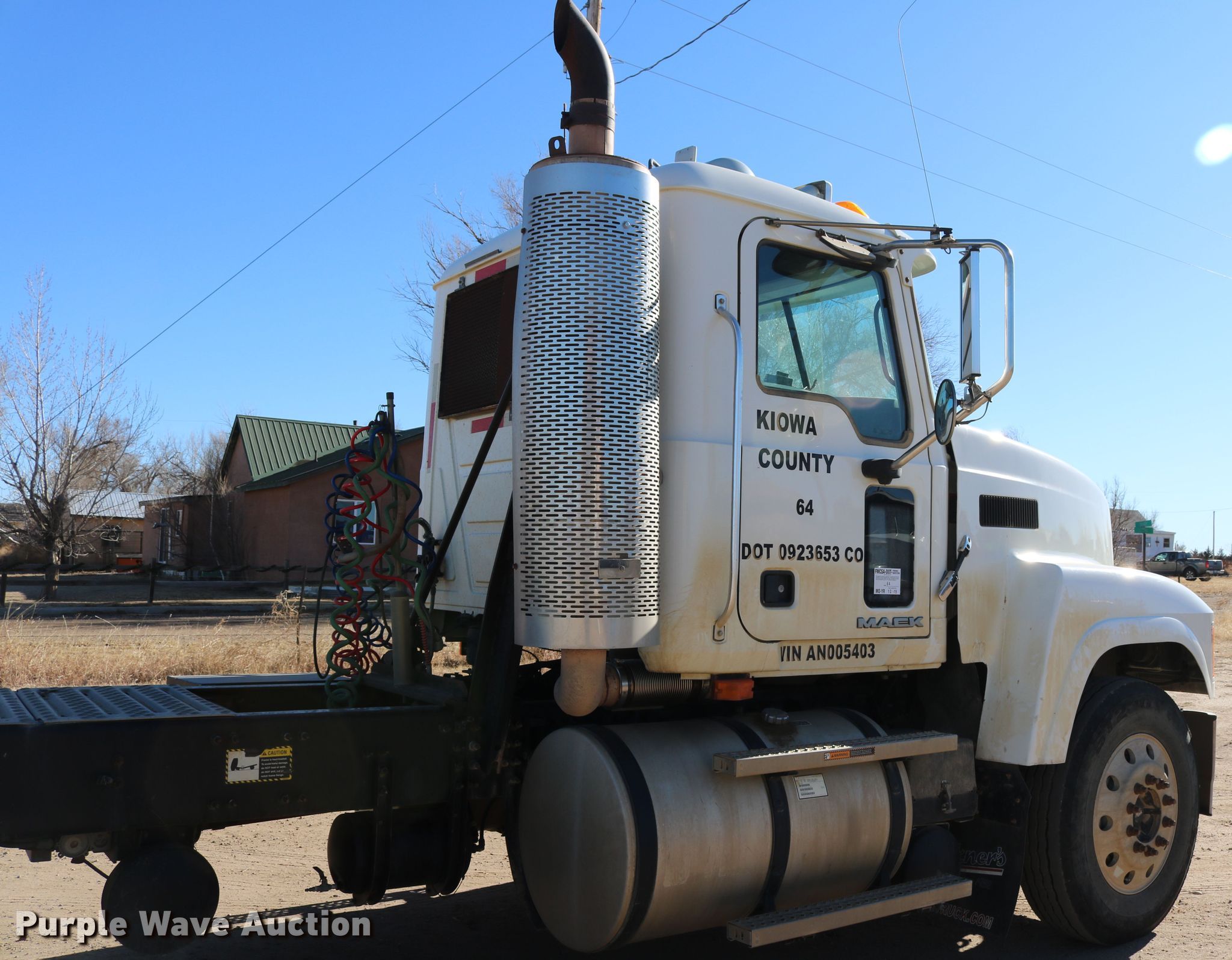 2010 Mack CH613 semi truck. 347,887 miles on odometer, Miles may vary, unit still in use, Mack 12.8L L6 diesel engine 338 HP, Serial 927308, Mack Maxitorque T310ES 10 speed manual transmission, Tandem axle, Inter-axle differential lock, AC and heat, Cruise, Power windows and locks, Air ride cab, Aluminum deck plate, Air operated sliding fifth wheel plate, Dual fuel tanks, 221" wheelbase, Air suspension, Air brakes, 11R24.5 tires, Decals will be removed prior to auction. Colorado title. 1M1AN09Y8AN005403. Kiowa County. 205 Sharp Ave. Haswell, CO 81045