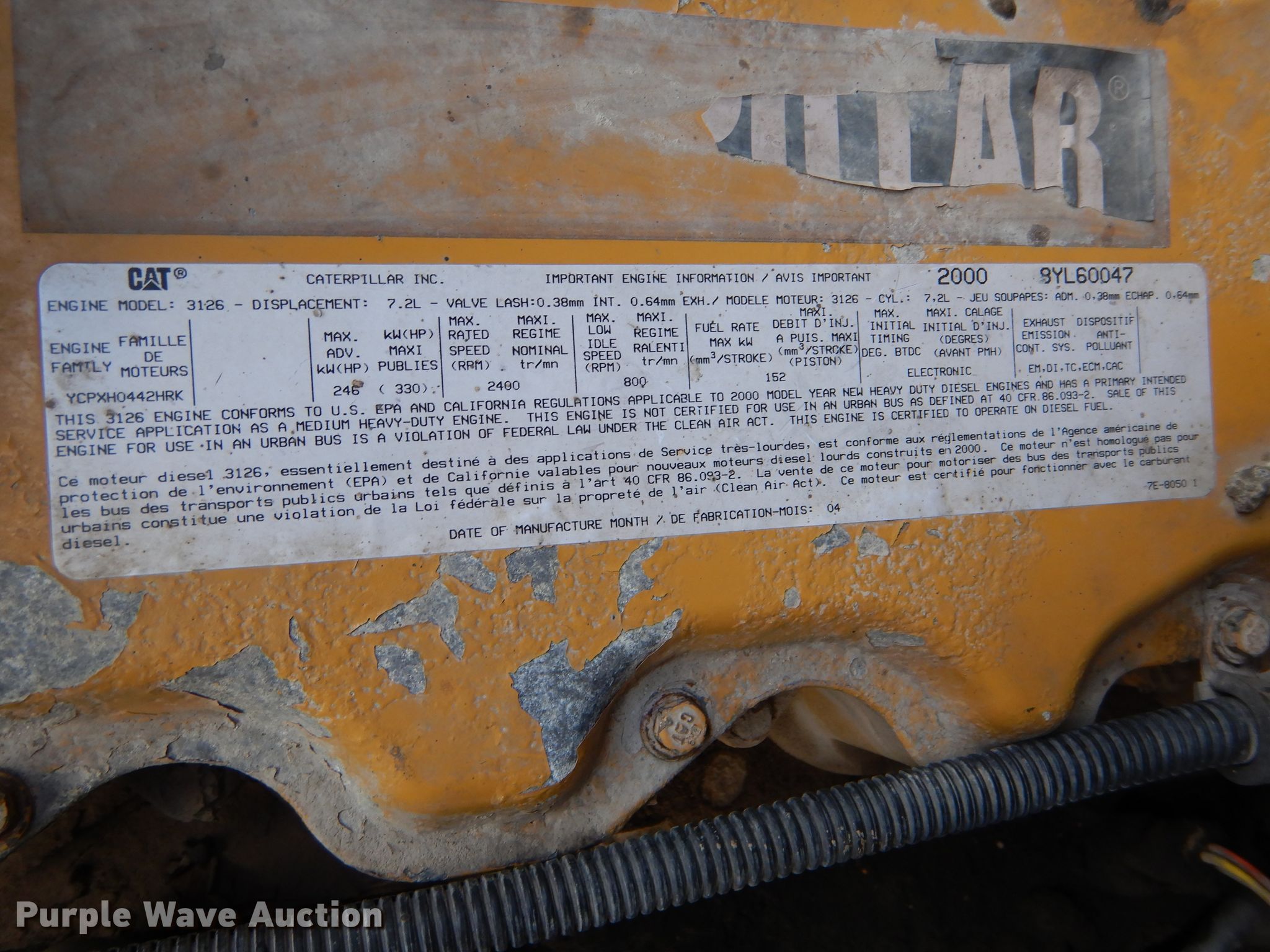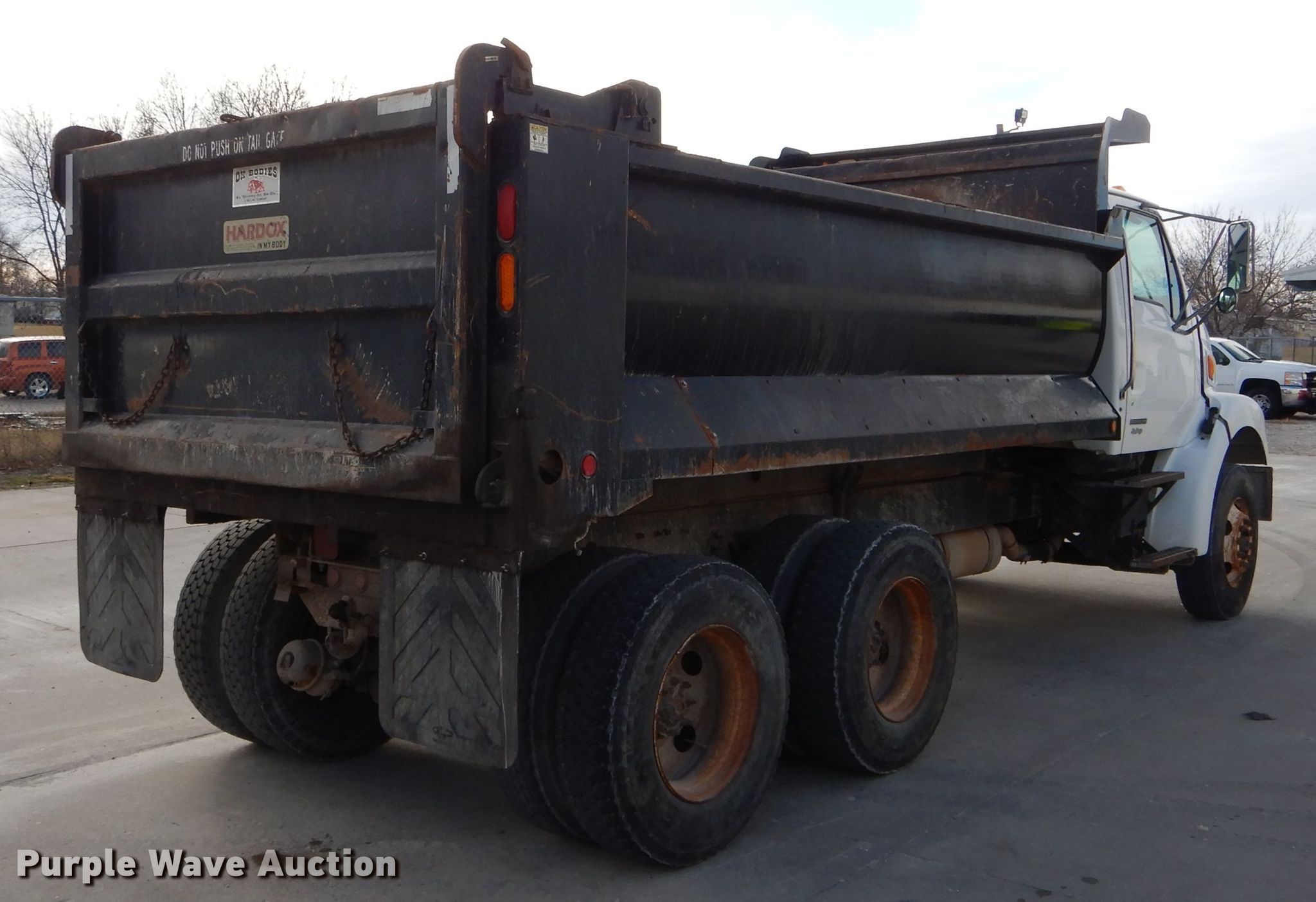 Purple Wave is selling a used Construction Dump Truck in Missouri. This item is a 2001 Sterling L-Line dump truck with the following: 93,234 miles on odometer, Caterpillar 3126 7.2L L6 diesel engine, Serial 9YL60047, Automatic transmission, Tandem axle, Inter-axle differential lock, AC and heat, Cruise, PTO, Ox Bodies 15FT13/15YD steel barrel dump bed, 15'L x 97"W, 41" side height, Single ram hoist, Air operated three-way end gate, Double frame, Spring suspension, Air brakes, 203" wheelbase, 11R22.5 tires, GVWR 53,220 lbs, FAWR 13,220 lbs, IAWR 20,000 lbs, RAWR 20,000 lbs