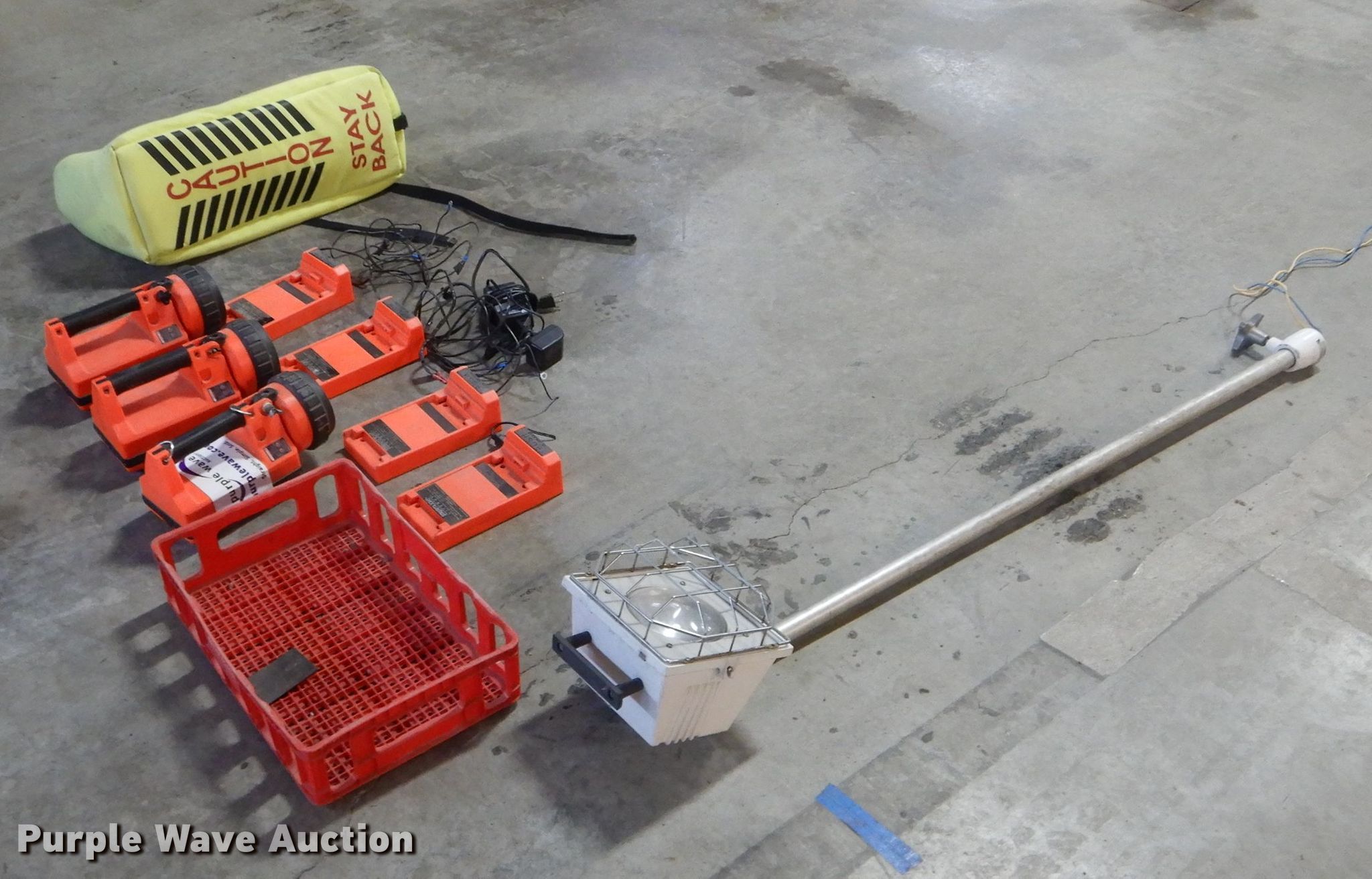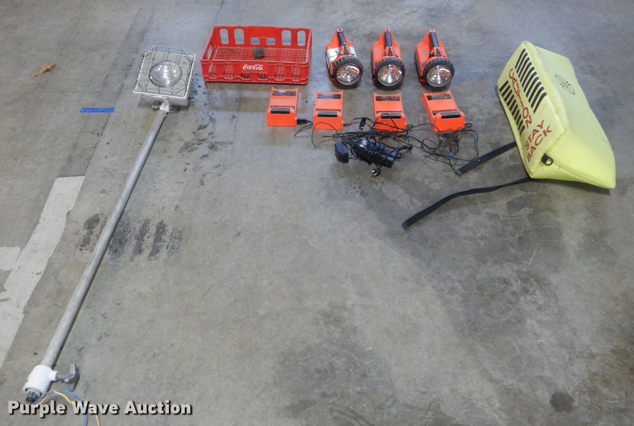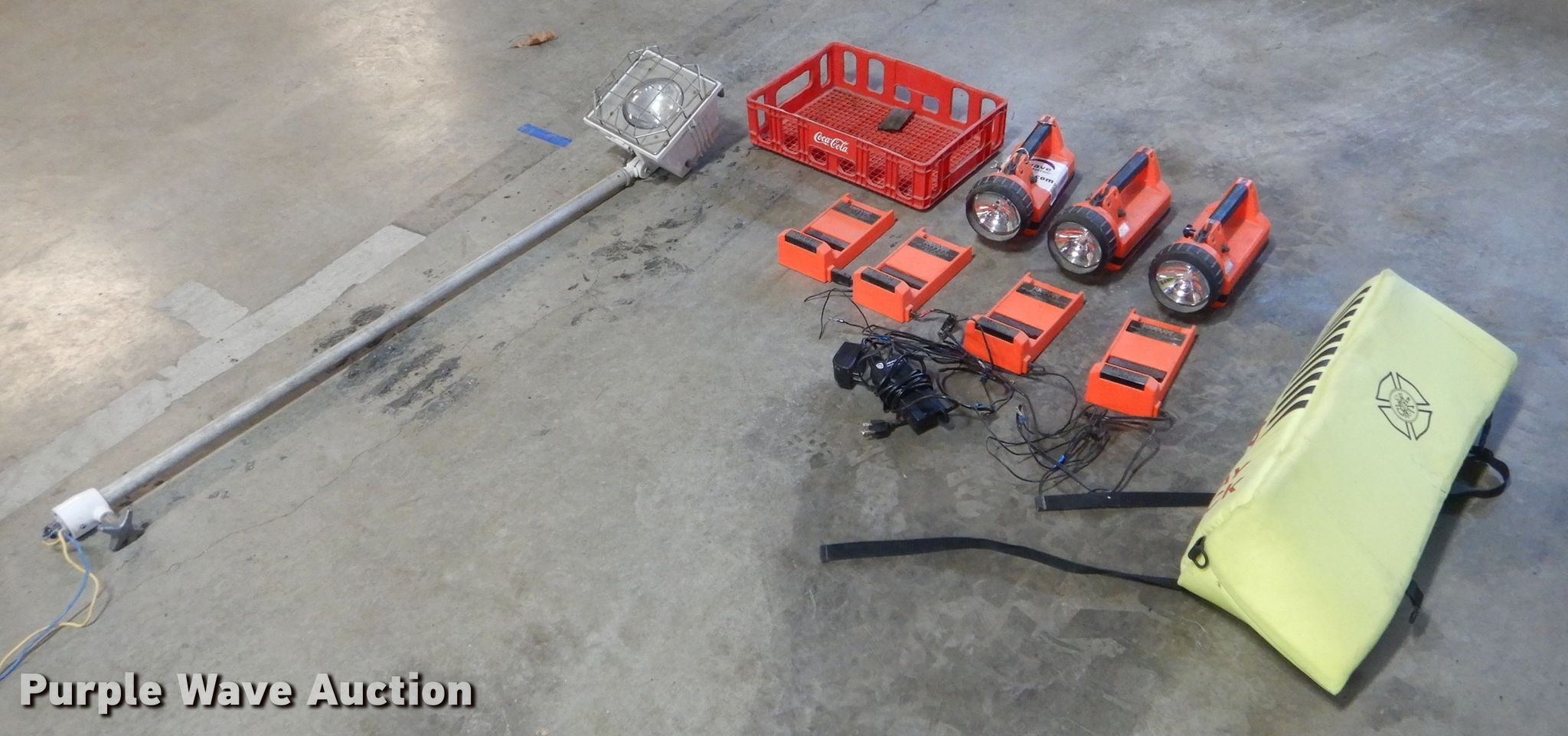 Purple Wave is selling a used Tools in Missouri. This item is a Tools with the following: (3) Streamlight rechargeable lights, (4) chargers, Ladder pad, Approx. 24"L, Light pole, Approx. 55", Unknown operating condition