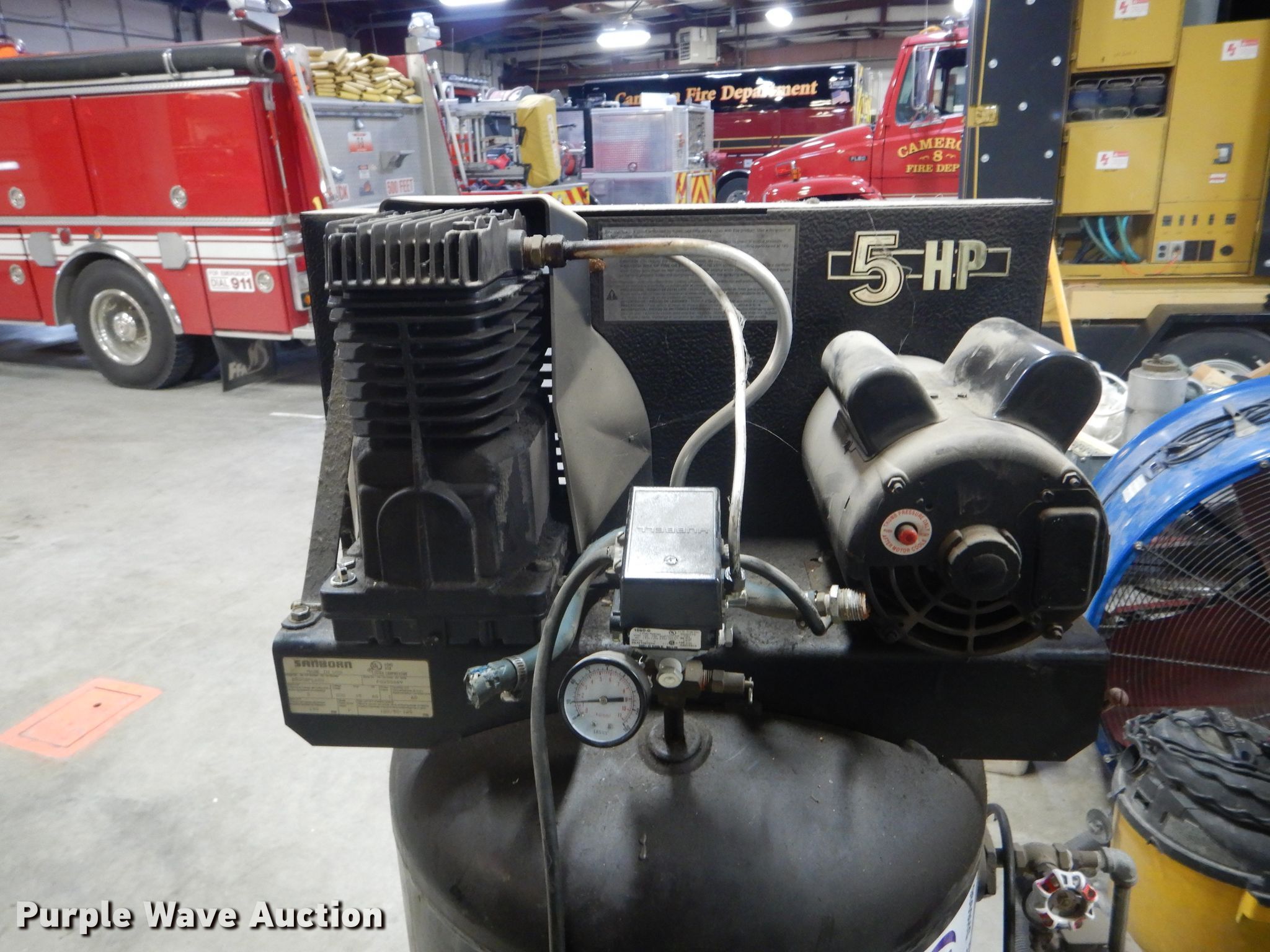 Purple Wave is selling a used Air Compressor in Missouri. This item is a Sanborn B500BPL60V air compressor with the following: 230V electric motor, 5 HP, 15 amp, Single phase, 140 psi, 60 gallon tank