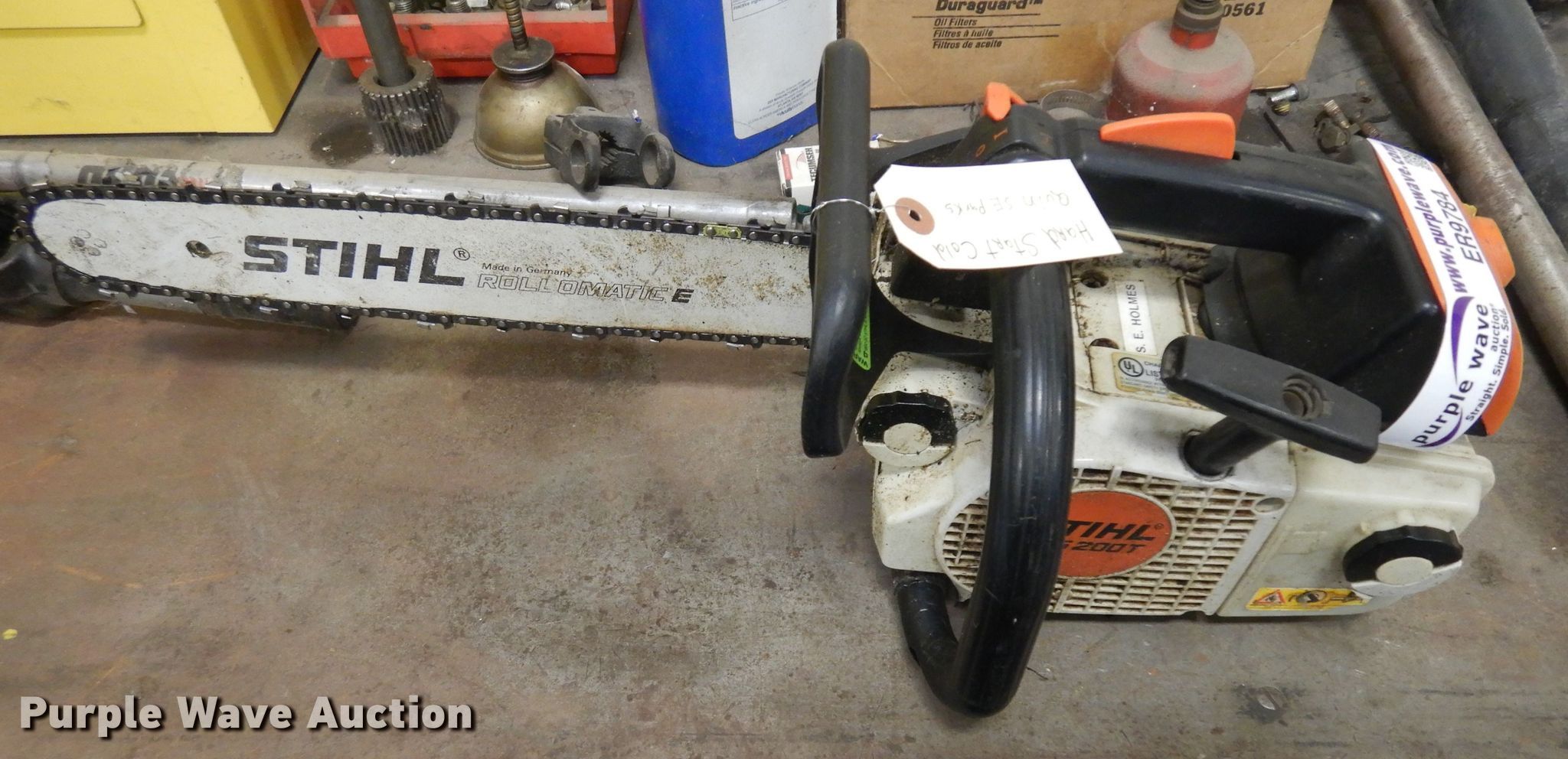 Purple Wave is selling a used Lawn and Garden in Nebraska. This item is a (4) chainsaws with the following: (3) Stihl MS200T, (2) are hard to start, One non-operational, Stihl MS201T, Unknown operating condition, Additional chains