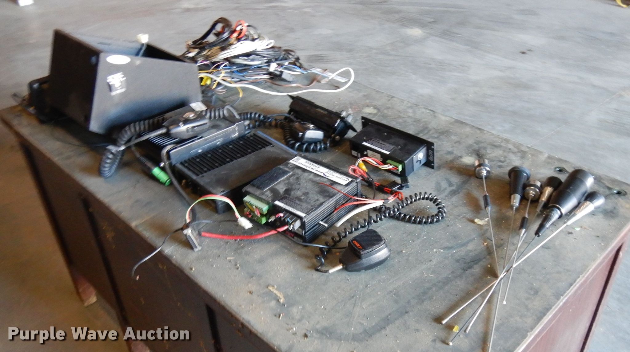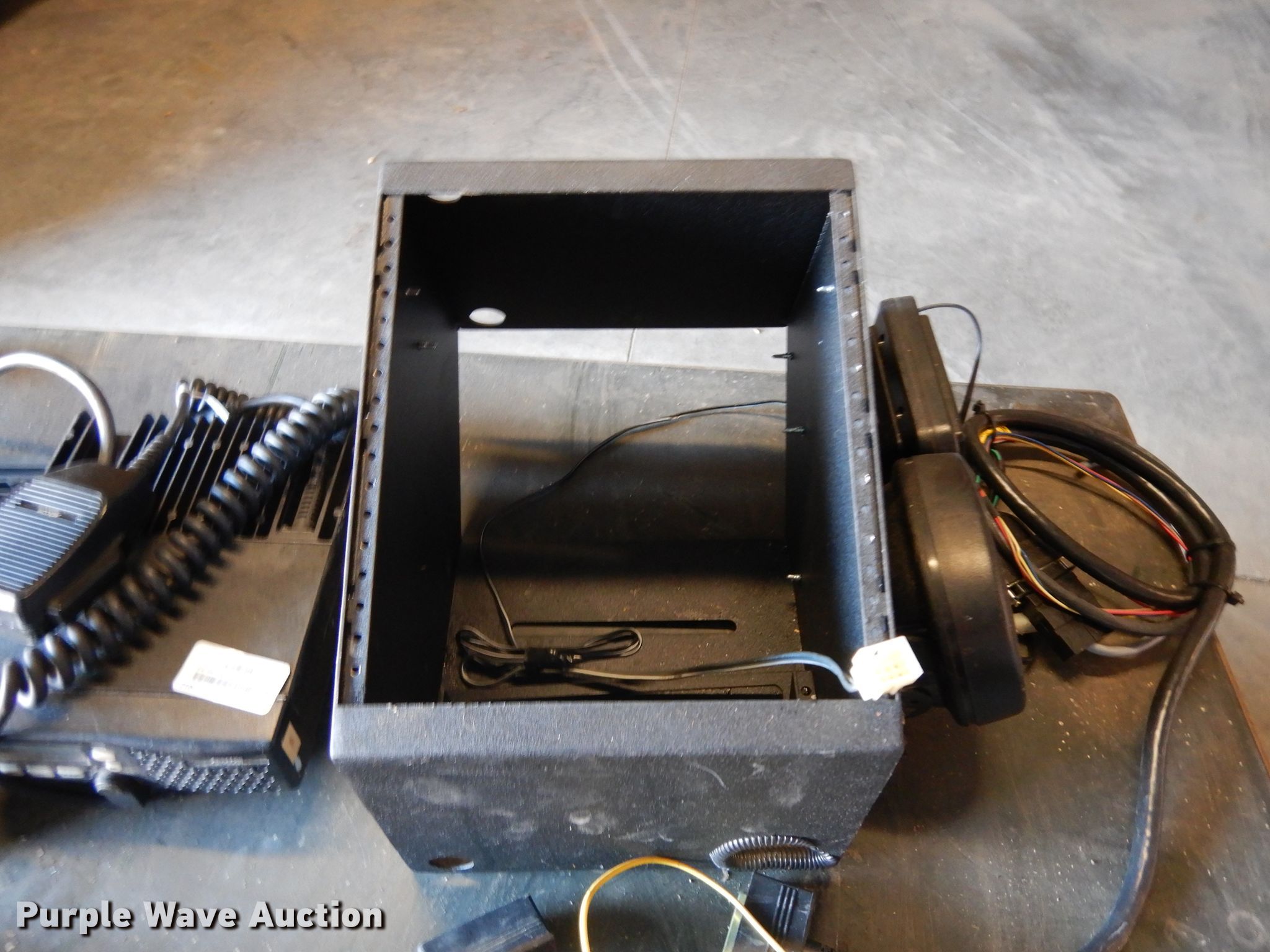 Purple Wave is selling a used Electronics in Nebraska. This item is a Electronics with the following: (3) radios, Microphones, Radio containment unit, Speakers, Wiring, (6) antennas