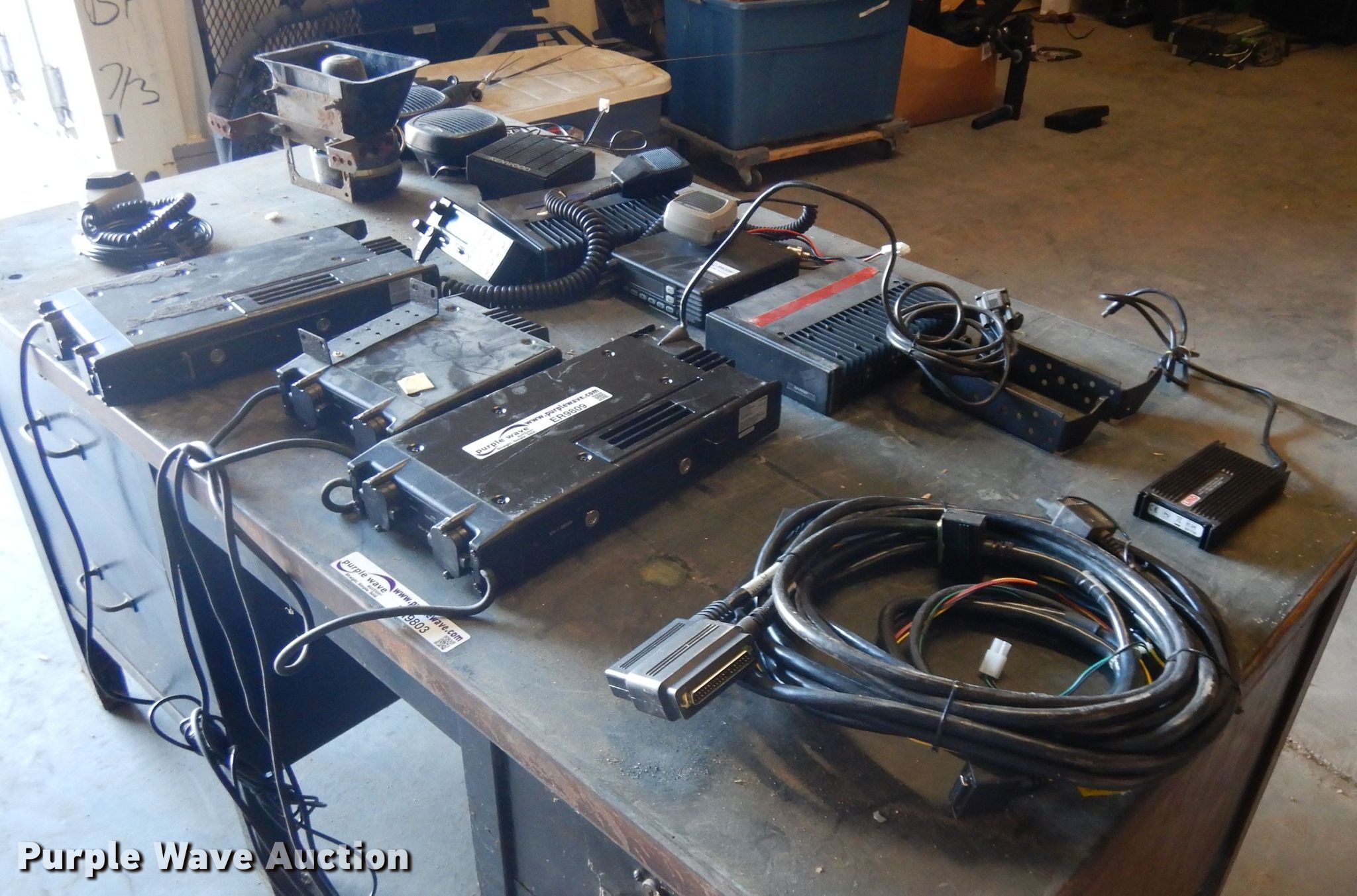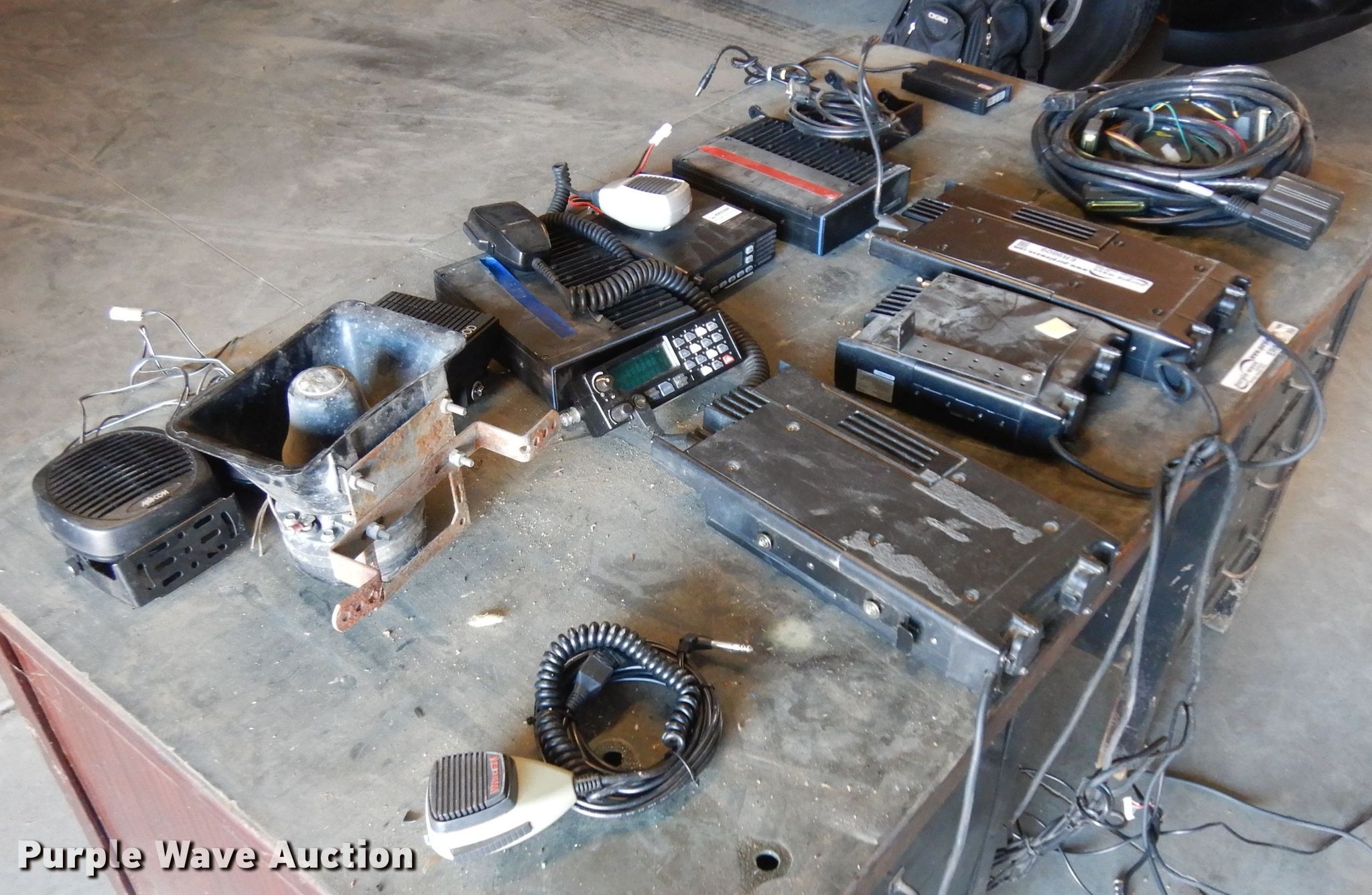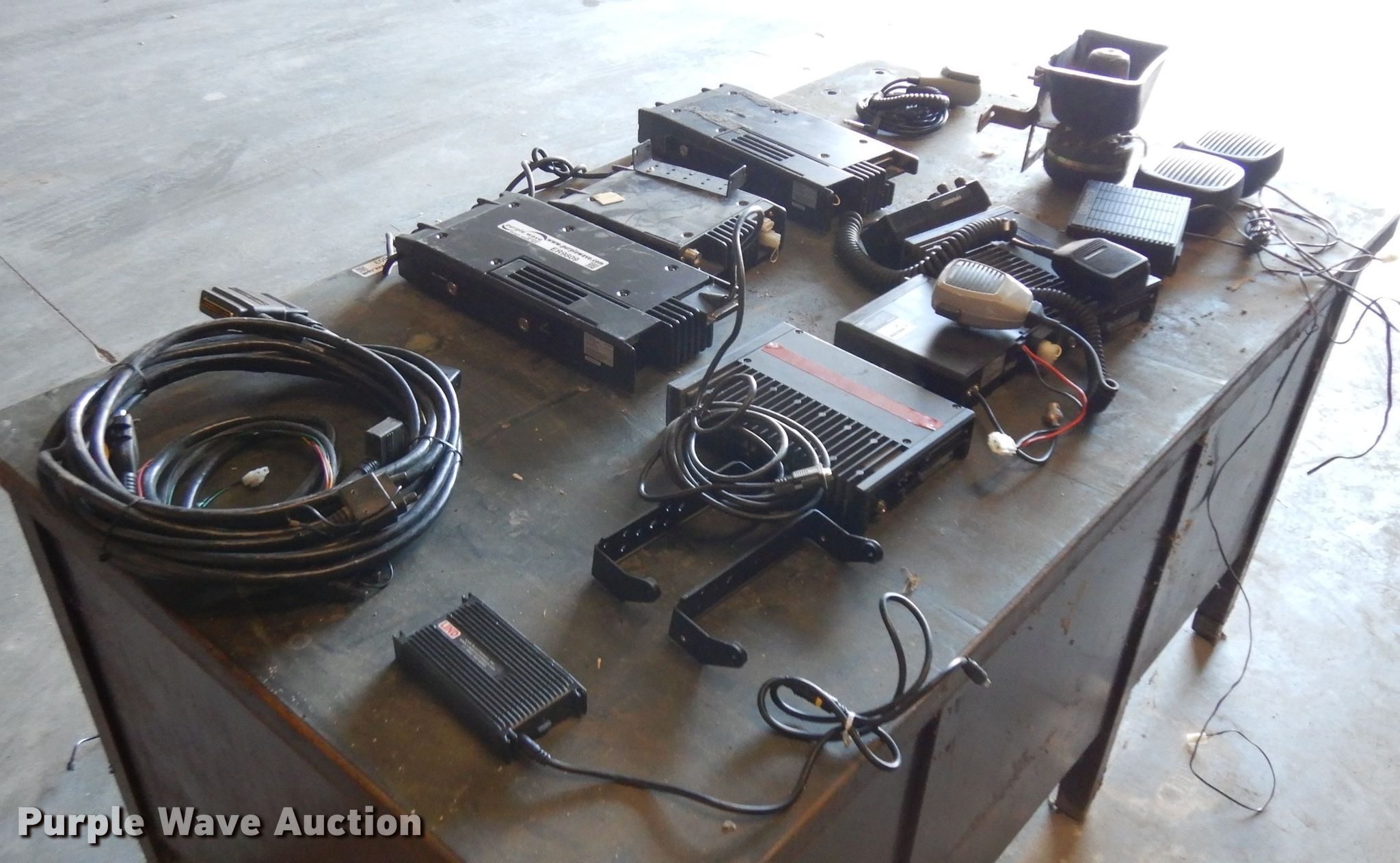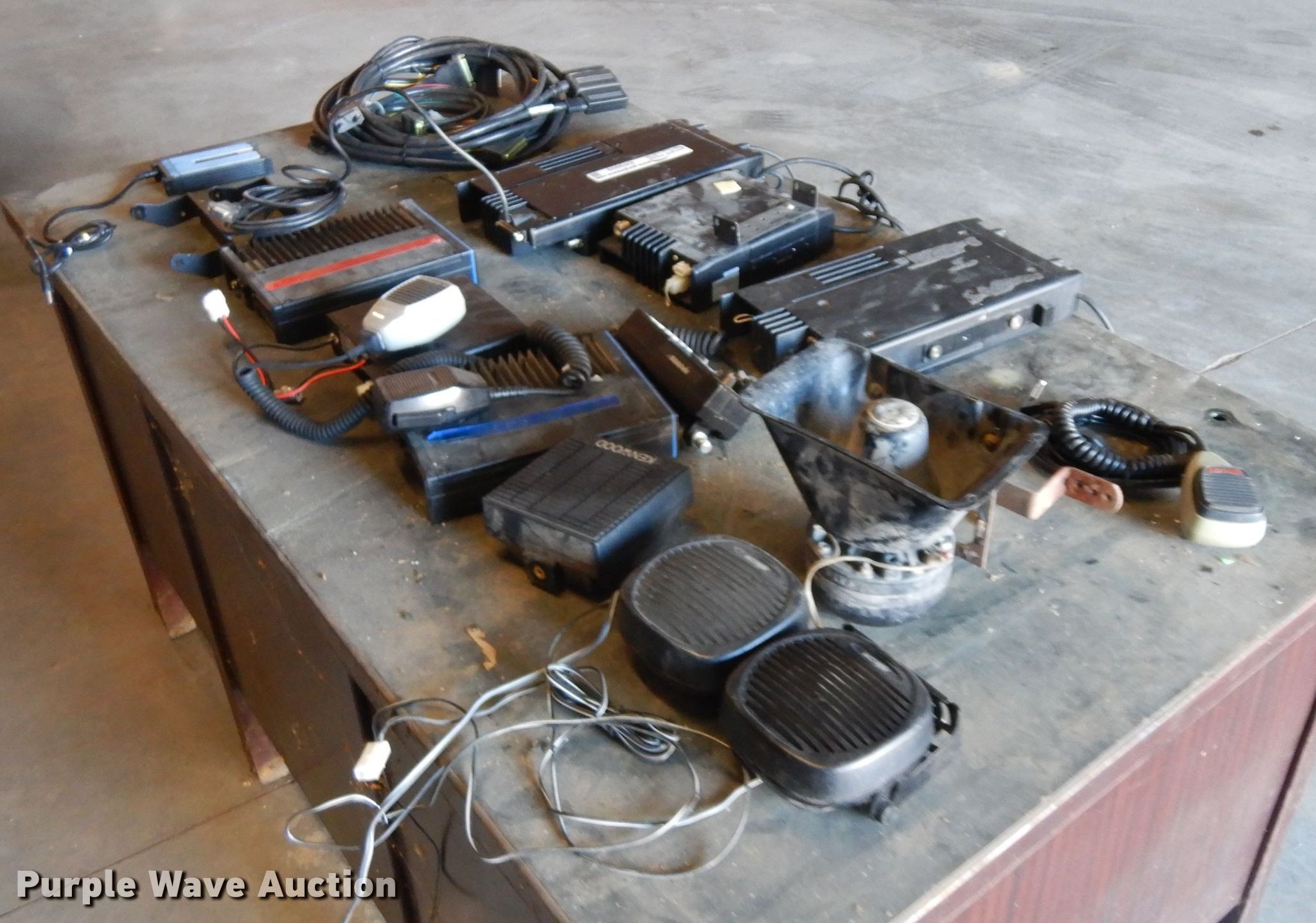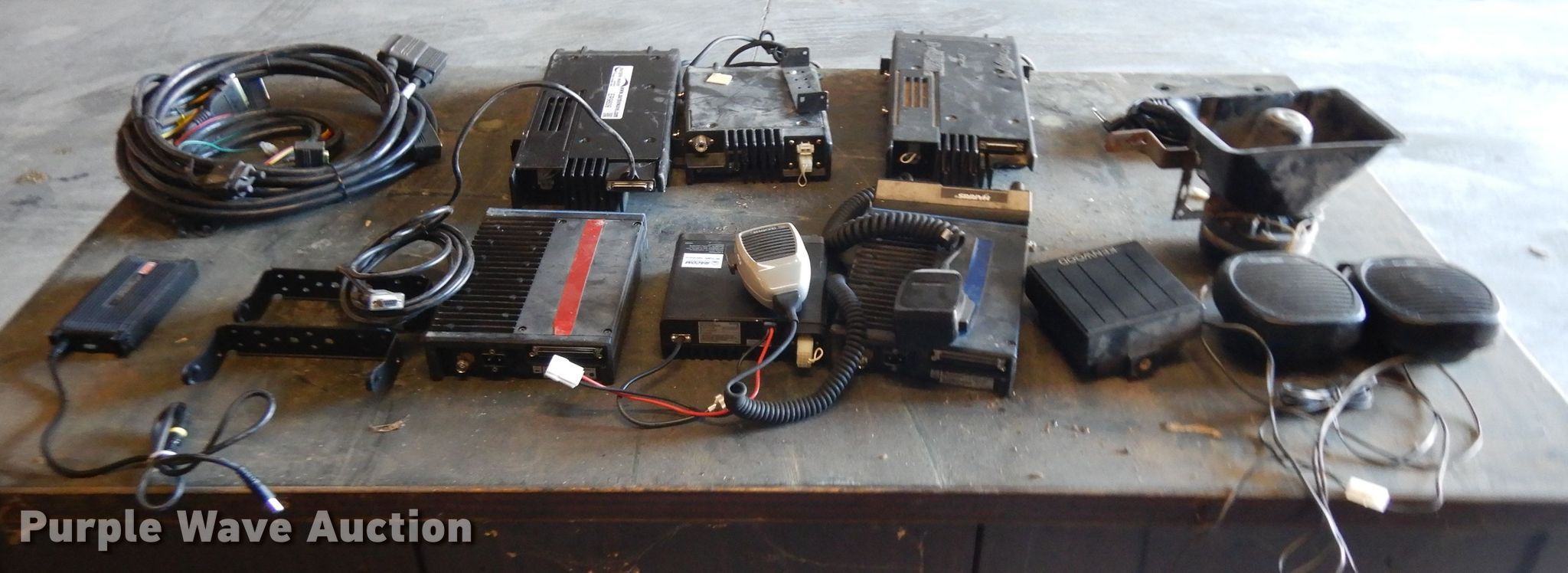 Purple Wave is selling a used Electronics in Nebraska. This item is a Electronics with the following: (2) radios, Microphones, (4) speakers, (3) FM transceivers, Loud speaker microphone, Computer charger adapter, Wiring, Antennas