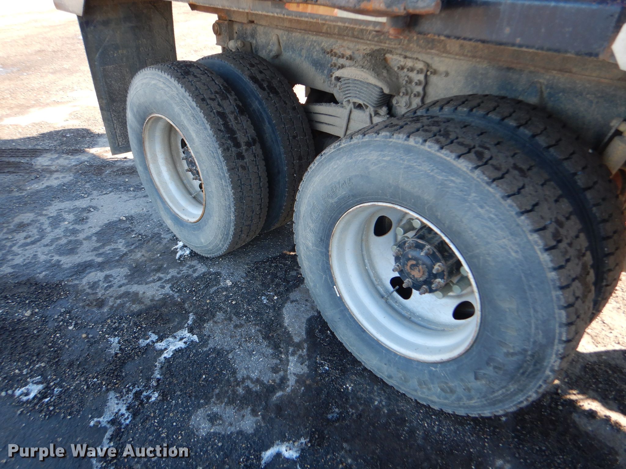 Purple Wave is selling a used Construction Dump Truck in Kansas. This item is a 2005 Sterling L-Line dump truck with the following: 299,075 miles on odometer, Mercedes 12.8L L6 diesel engine, Allison automatic transmission, Full differential lock, Tandem axle, AC and heat, Cruise, Heated mirrors, Ox Bodies steel dump bed, 16.5'L x 96"W, 46" side height, 15-17 yd. capacity, Roll tarp, Single ram hoist, Air operated end gate, Engine brake, Air brakes, Camelback suspension, 315/80R22.5 front tires, 11R22.5 rear tires, GVWR 58,000 lbs