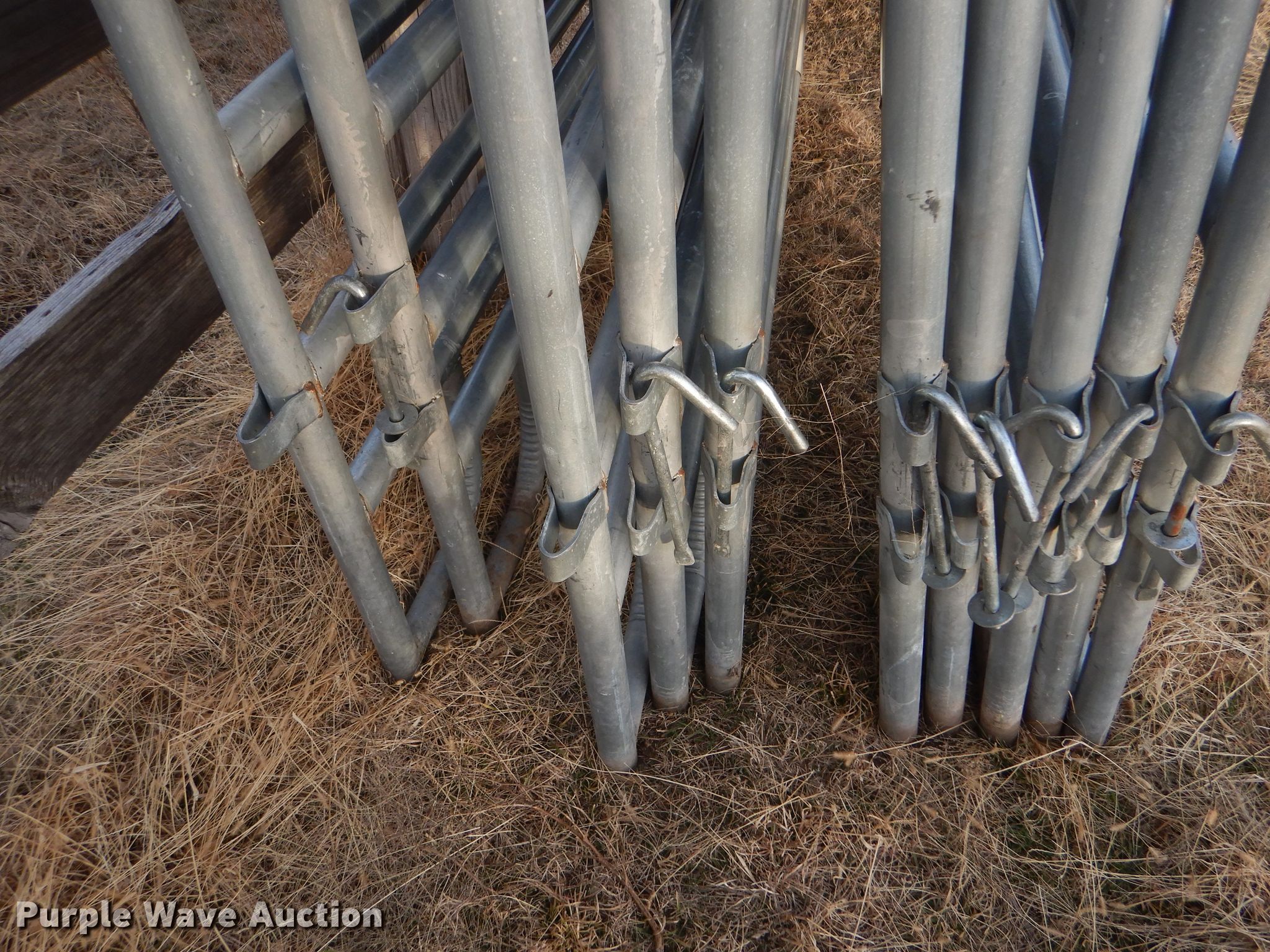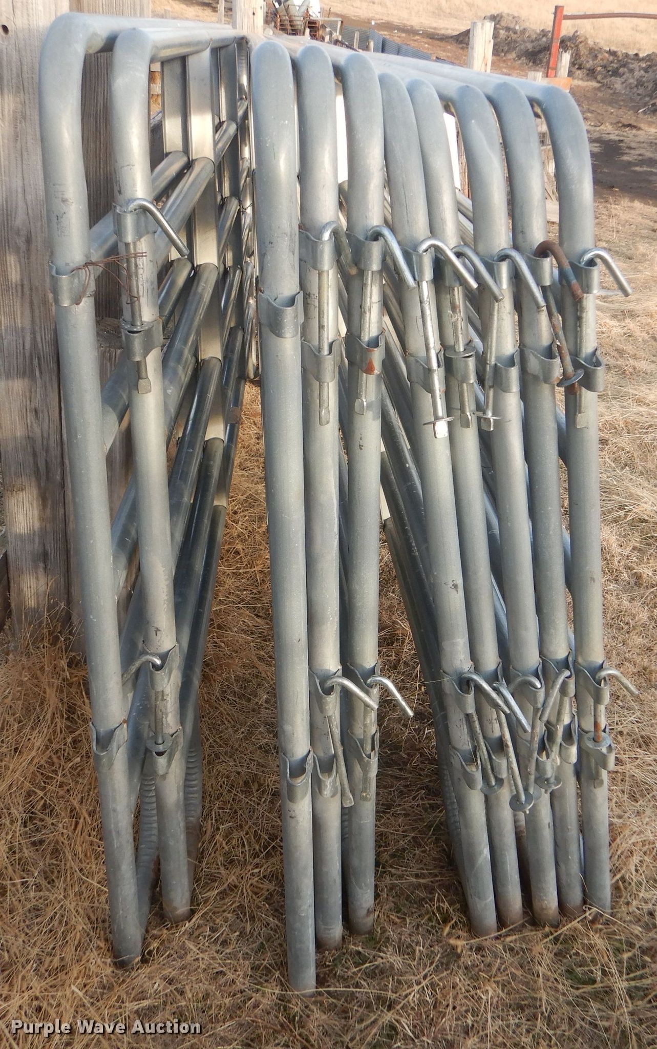 Purple Wave is selling a used Livestock Equip. in Kansas. This item is a (10) galvanized livestock panels with the following: 12'W x 62"H