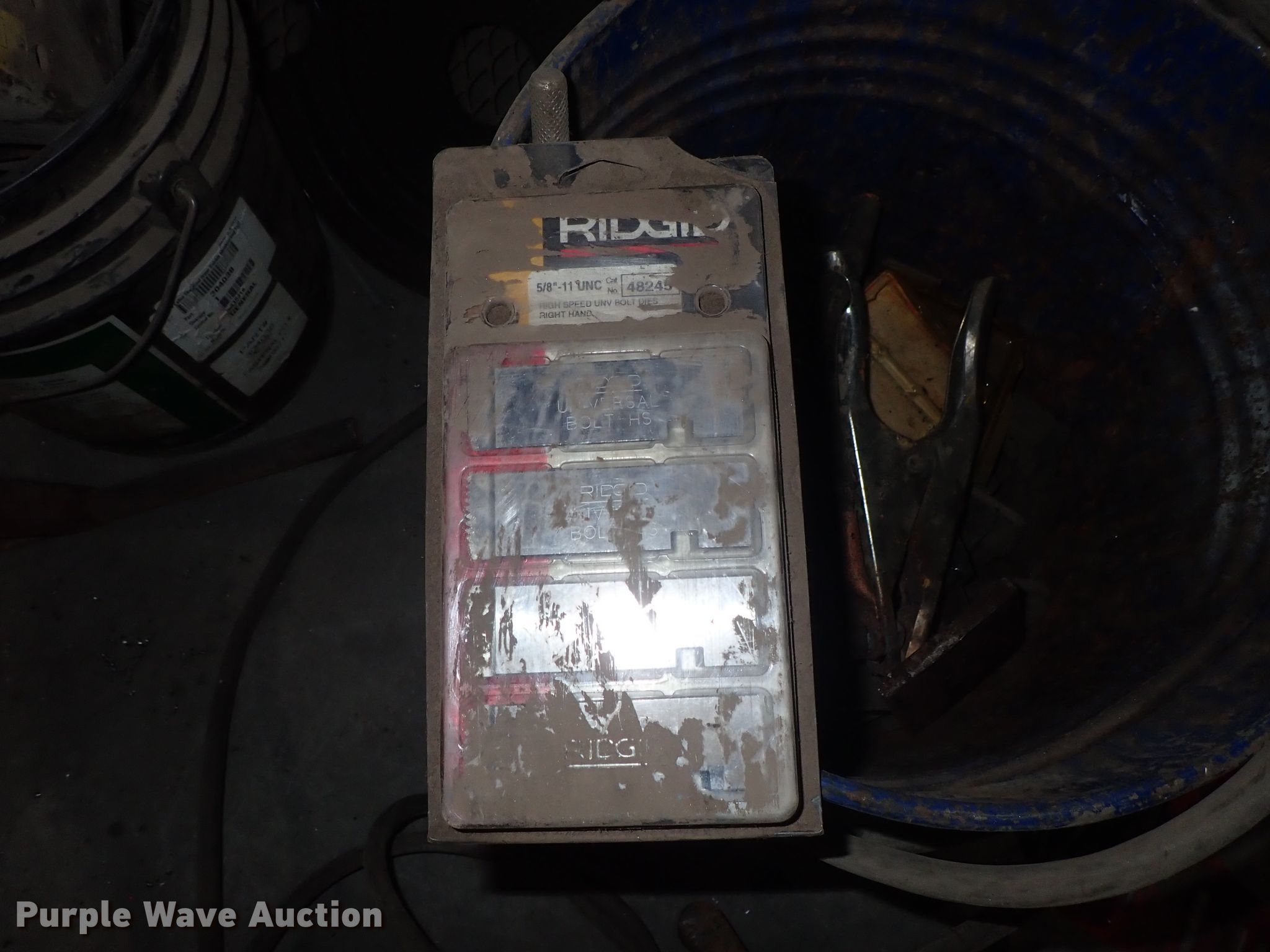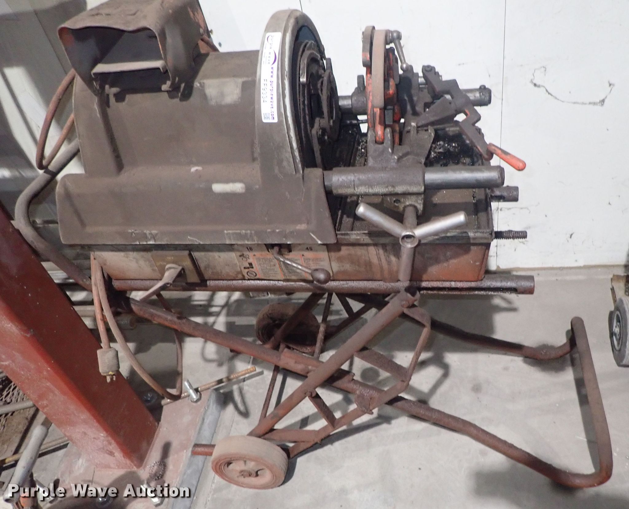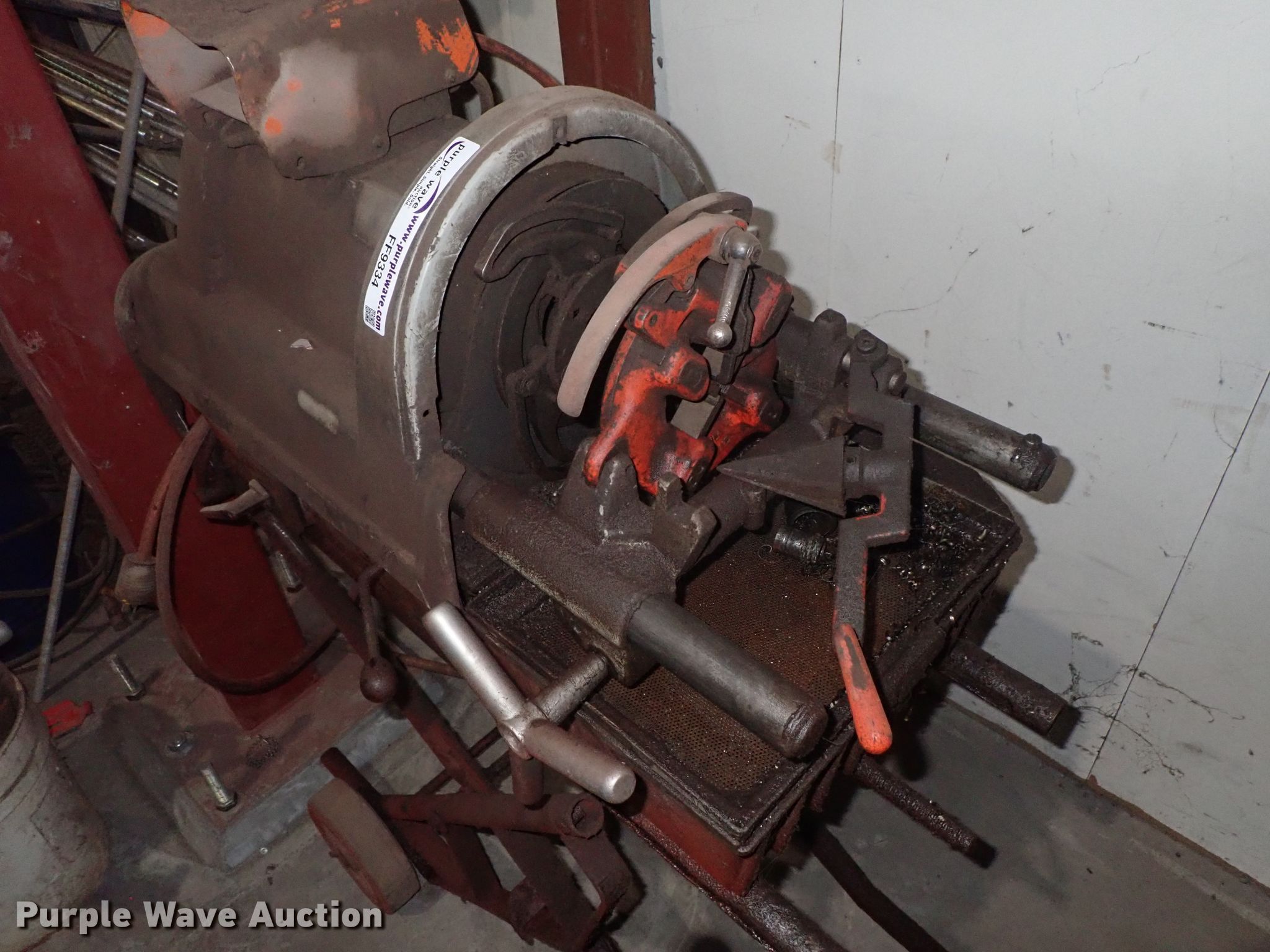 Purple Wave is selling a used Tools in Kansas. This item is a Ridgid 1822-I pipe threader with the following: 120V, Dies, Accessories, Serial EA02488