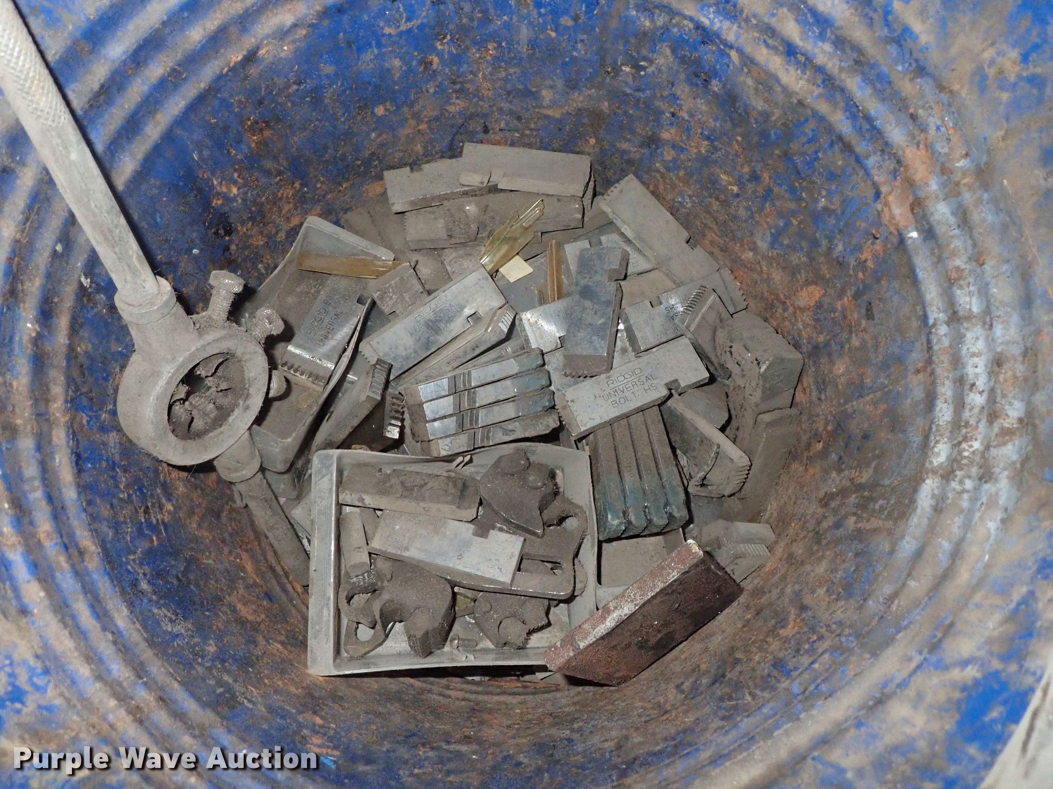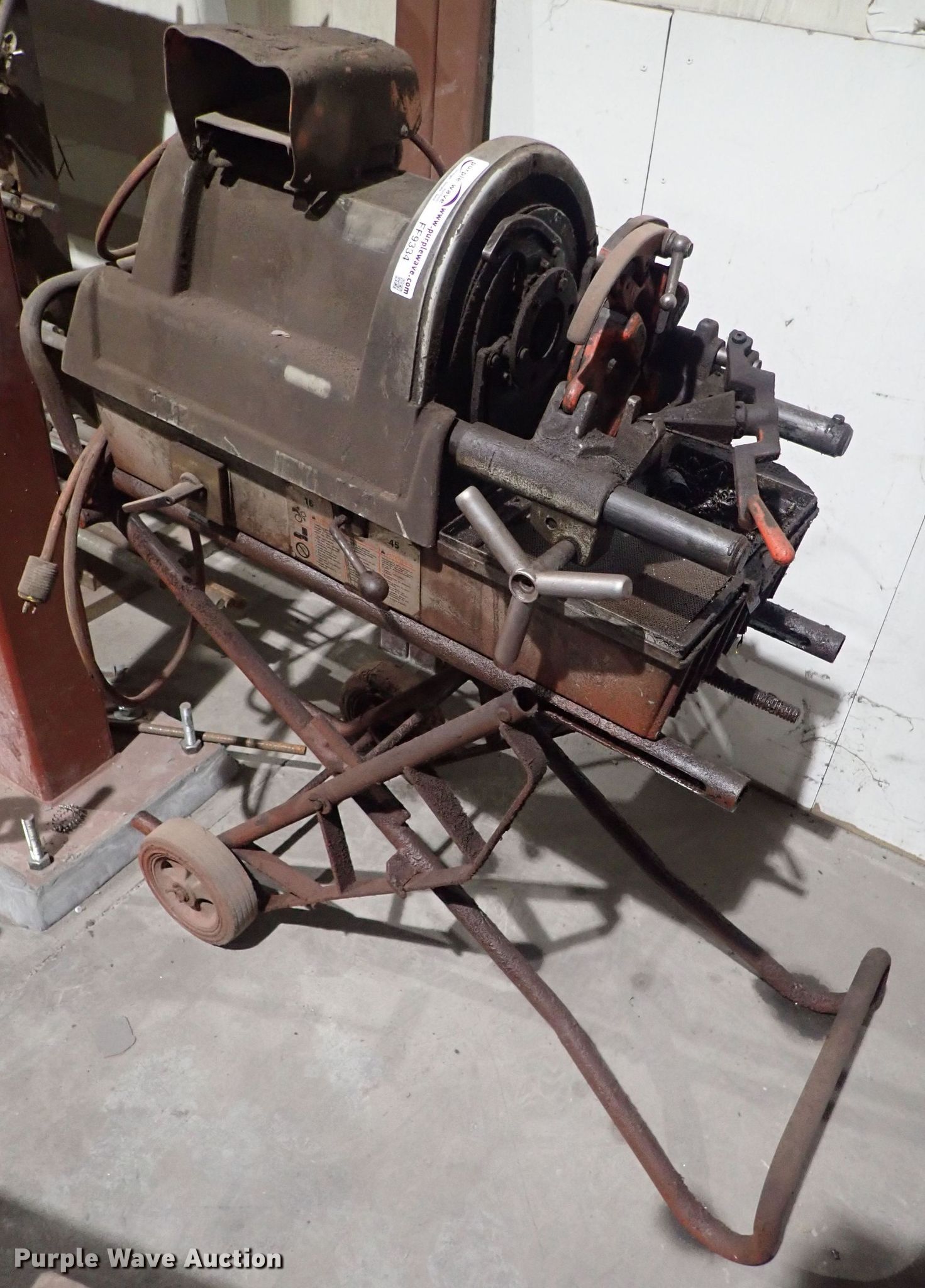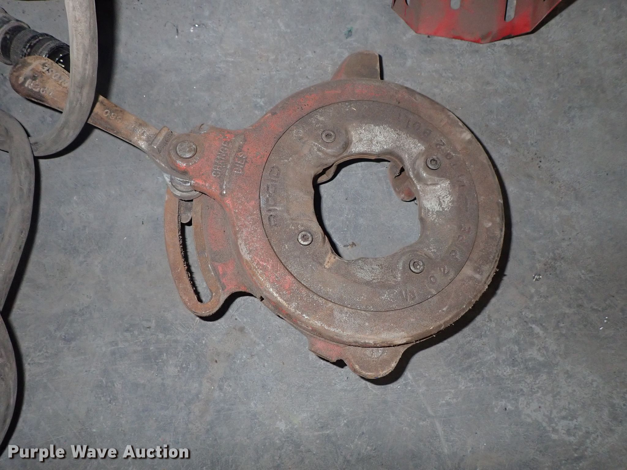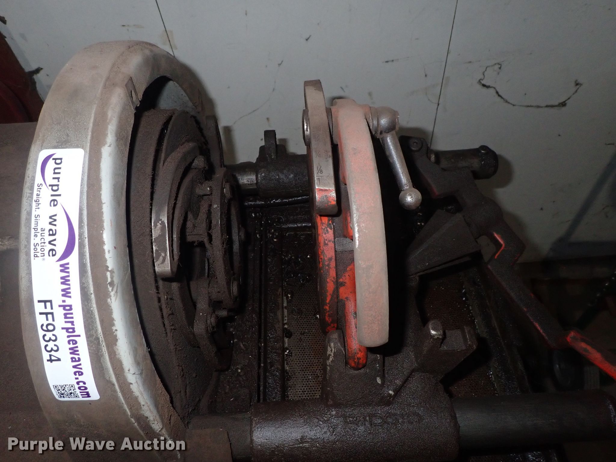 Purple Wave is selling a used Tools in Kansas. This item is a Ridgid 1822-I pipe threader with the following: 120V, Dies, Accessories, Serial EA02488