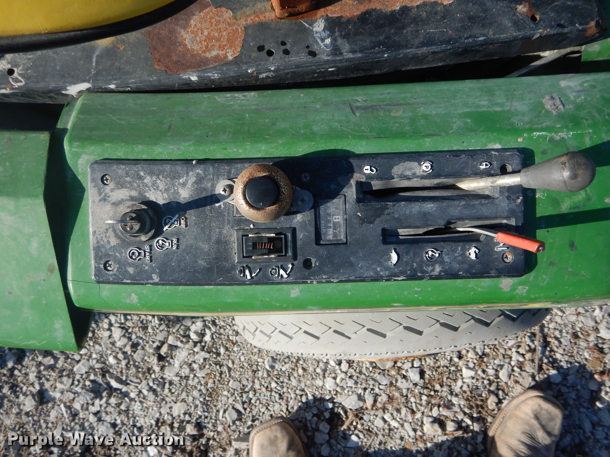Purple Wave is selling a used Lawn Mower in Iowa. This item is a John Deere F525 lawn mower with the following: 39 hours on meter, Single cylinder gas engine, Hydrostatic transmission, Scraper blade, 18.5 x 8.5-8 front tires, 13 x 6.50-6 rear tires, Serial M0F525X05620