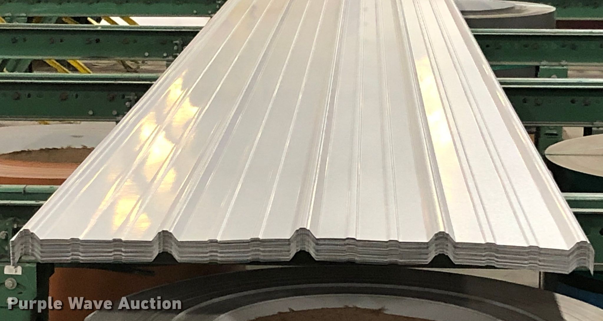Purple Wave is selling a used Building Materials in Pennsylvania. This item is a (60) sheets of metal roofing/siding with the following: 18'4"L x 36"W, Premium Pro-Rib steel profile, 29 gauge, Color: Brilliant white, Unused