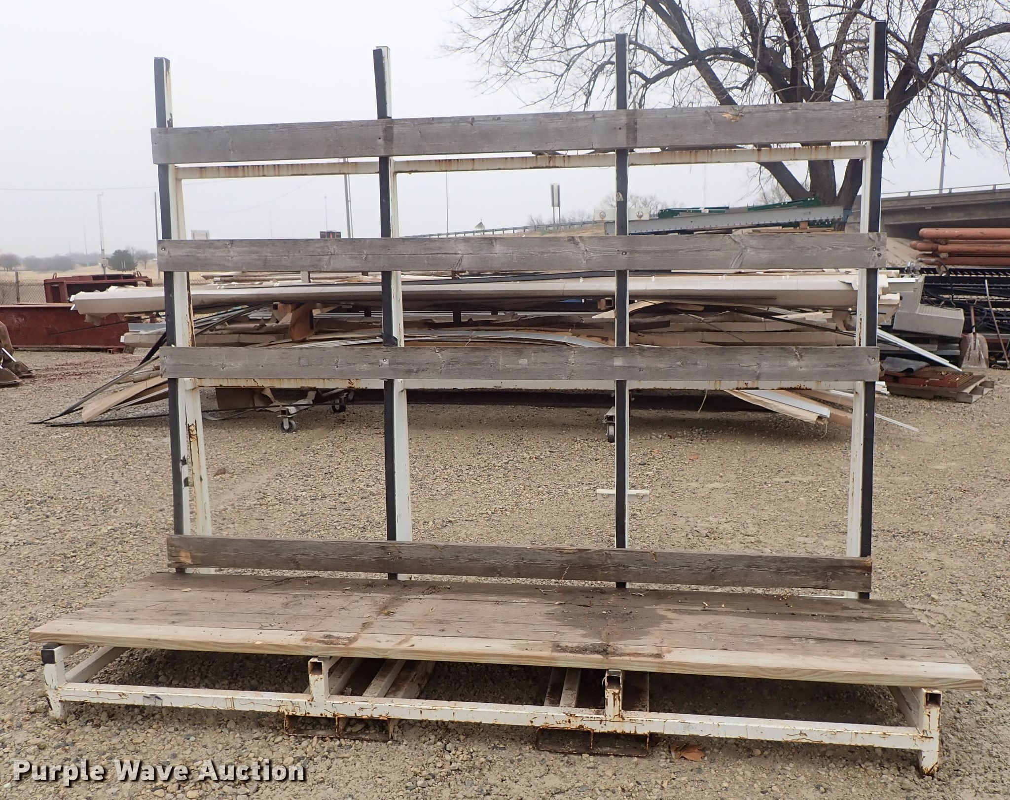 Purple Wave is selling a used Tools in Kansas. This item is a (4) L-racks with the following: 10'W x 46" x 8'H, Wood deck, Steel frame, Forklift pockets