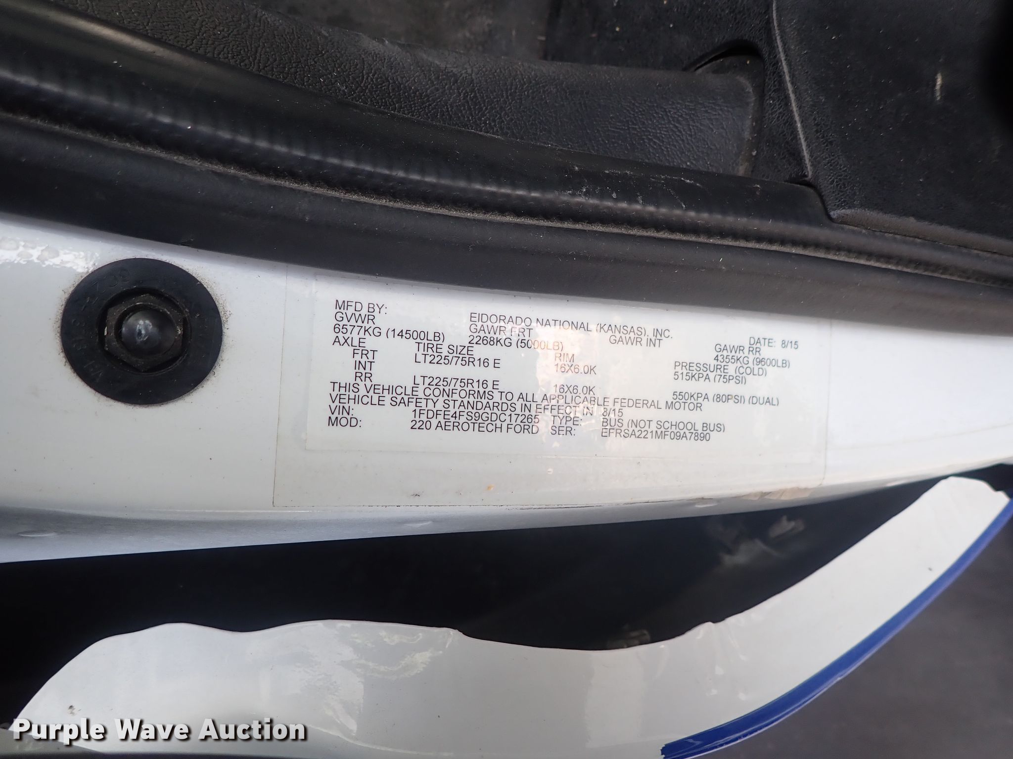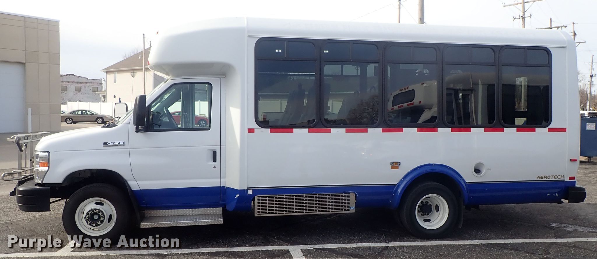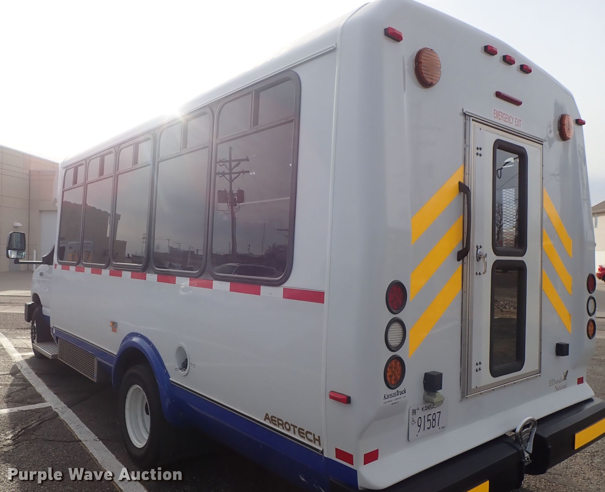 Purple Wave is selling a used Bus in Kansas. This item is a 2016 Ford Econoline E450 Eldorado Aerotech shuttle bus with the following: 139,724 miles on odometer, 6.8L V10 SOHC 20V gas engine, Automatic transmission, AC and heat, Cruise, Wheelchair lift, Bike rack, Spring suspesnion, Hydraulic brakes, 225/75R16 tires