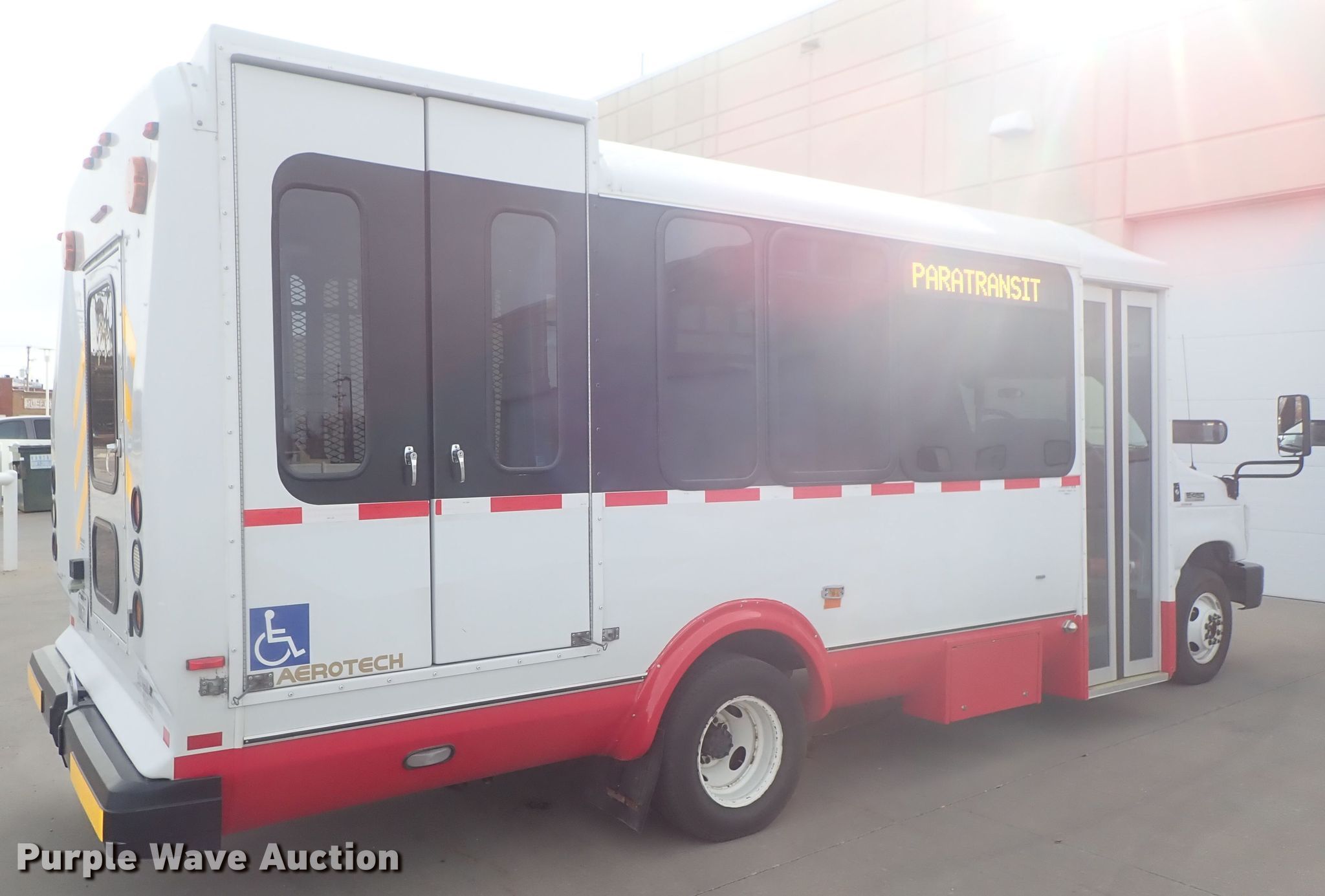Purple Wave is selling a used Bus in Kansas. This item is a 2014 Ford Econoline E450 Eldorado Aerotech shuttle bus with the following: 109,764 miles on odometer, 6.8L V10 SOHC 20V gas engine, Automatic transmission, AC and heat, Cruise, Wheelchair lift, Spring suspension, Hydraulic brakes, 225/75R16 tires, Jasper transmission installed at 100,954 miles