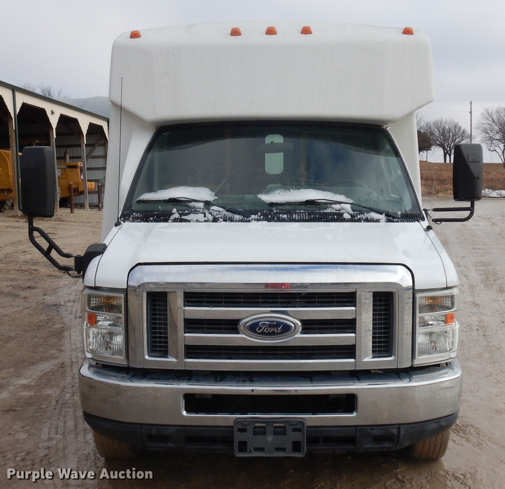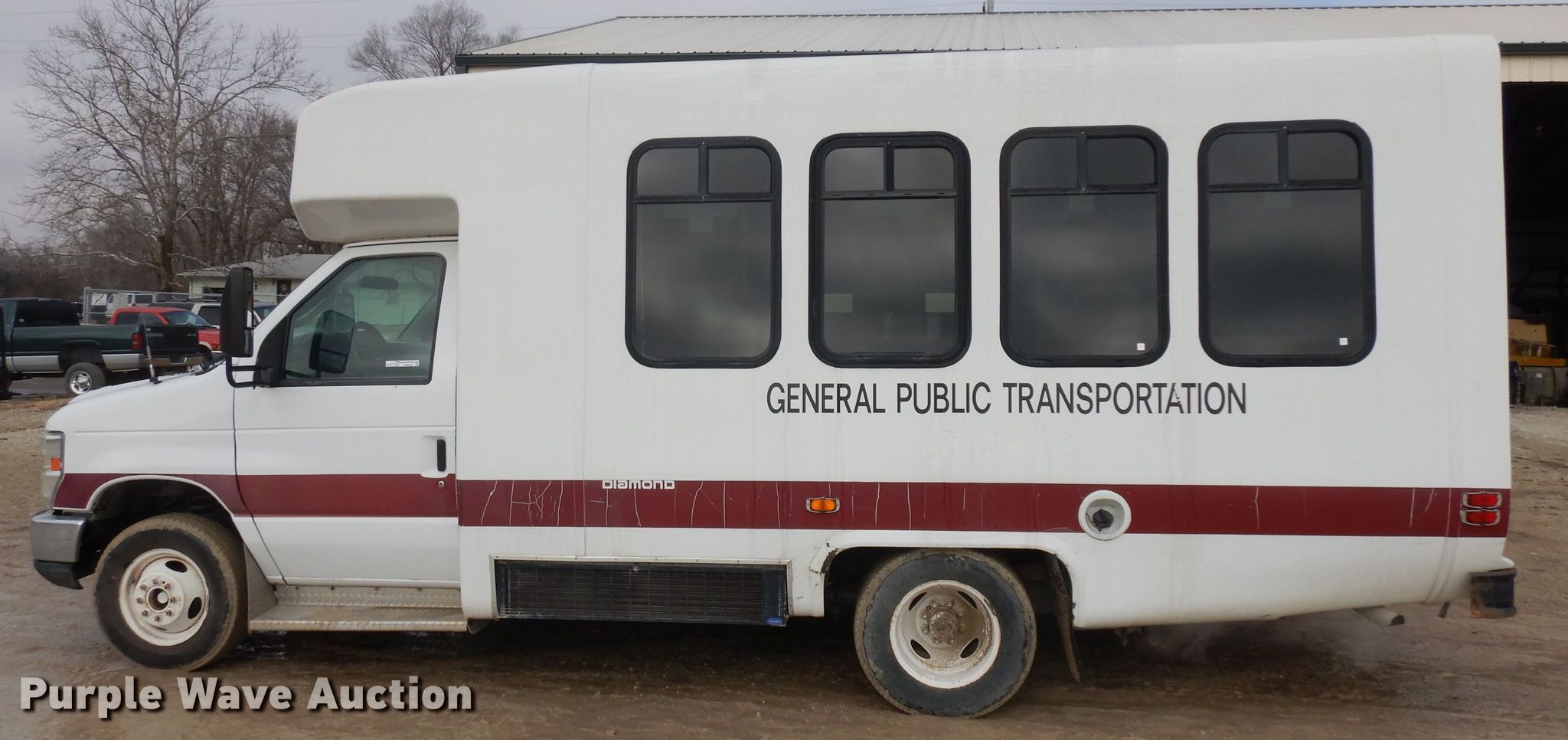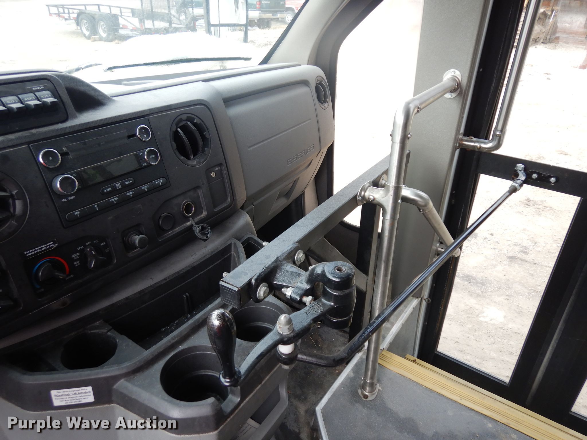 Purple Wave is selling a used Bus in Kansas. This item is a 2011 Ford Econoline E350 shuttle bus with the following: 134,600 miles on odometer, 6.8L V10 SOHC 20V gas engine, Automatic transmission, Single axle, AC and heat, 10 passenger capacity, Wheelchair lift, Spring suspension, Hydraulic brakes, 225/75R16 tires, GVWR 11,500 lbs, Dead battery