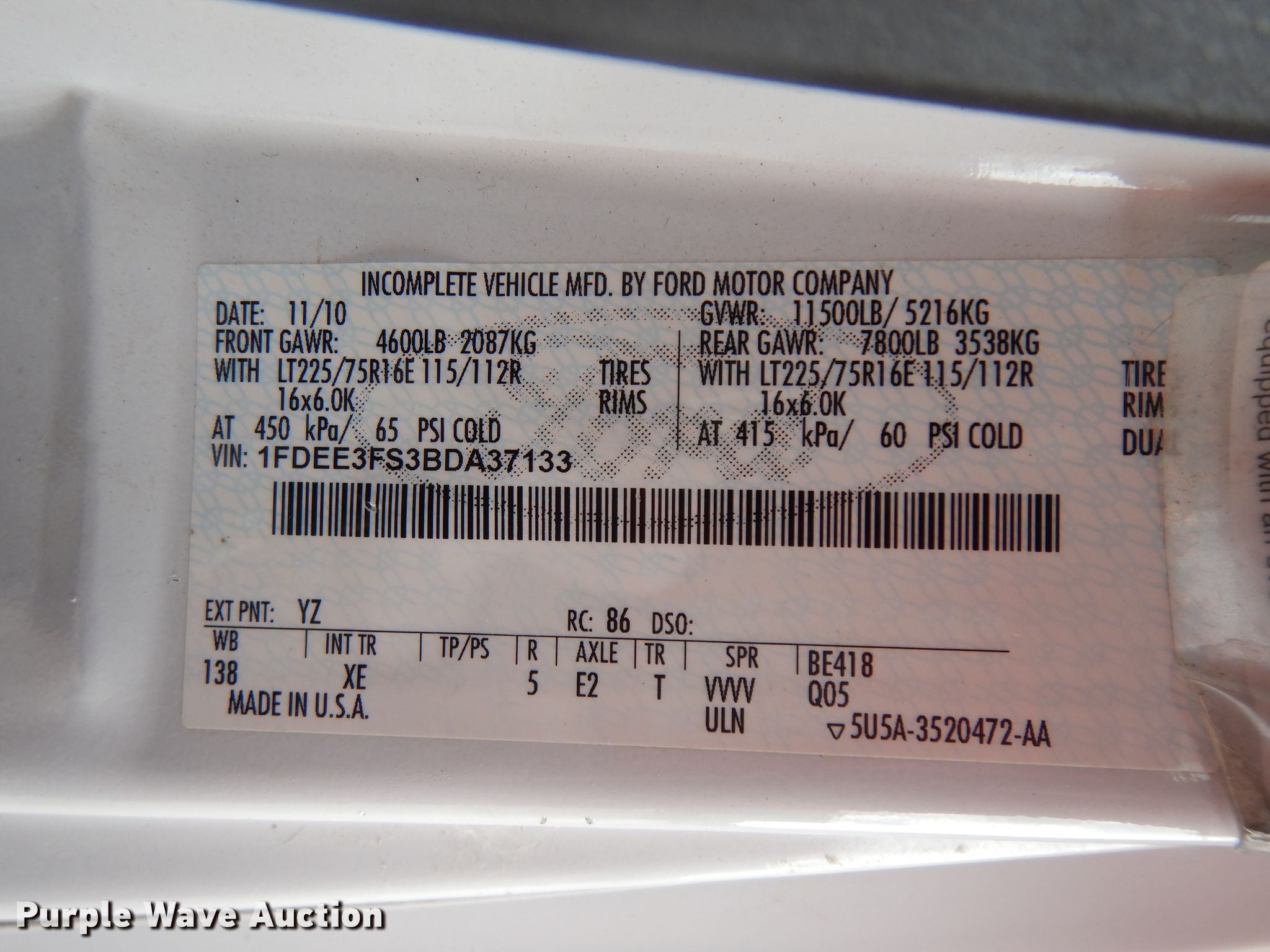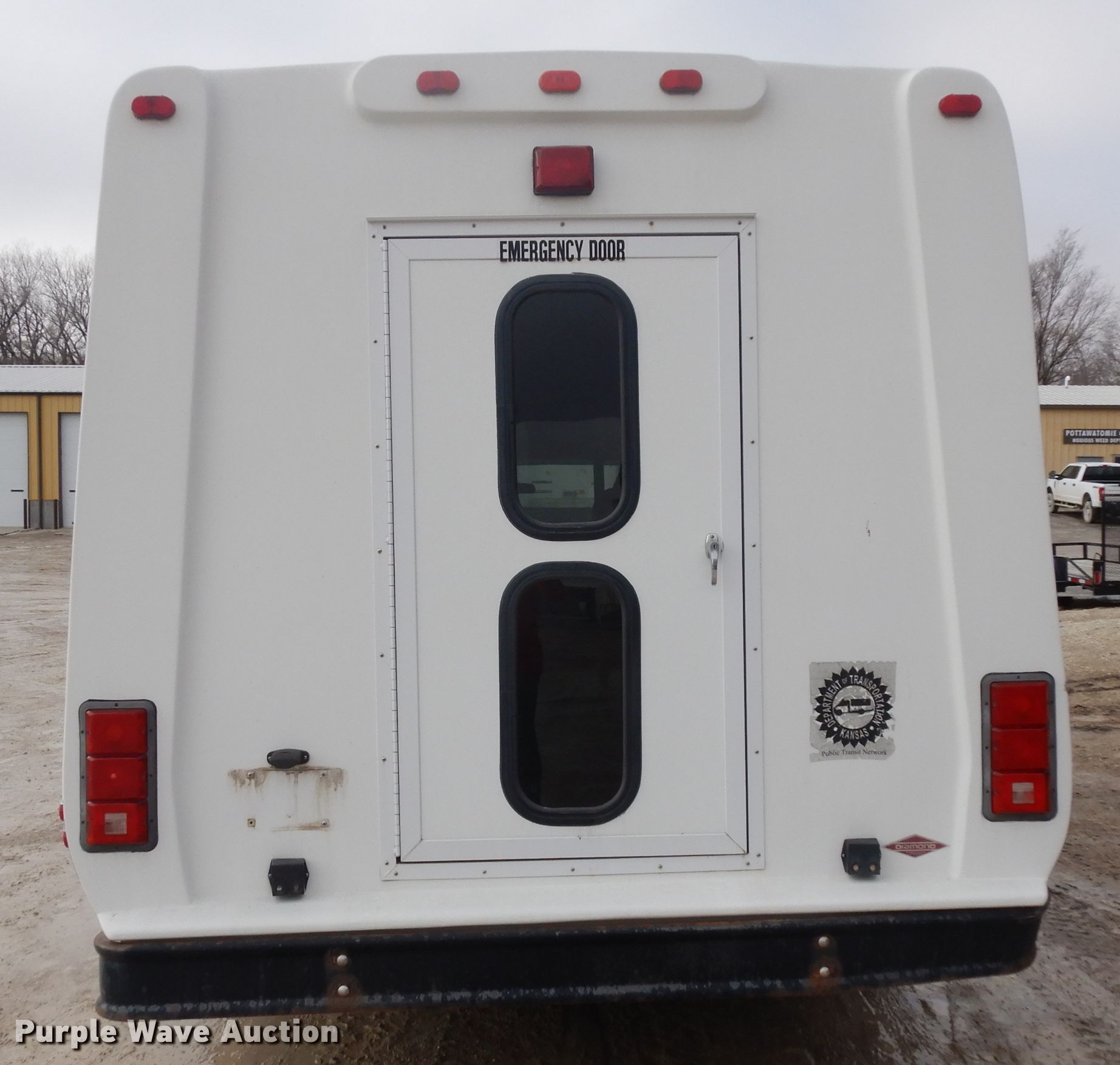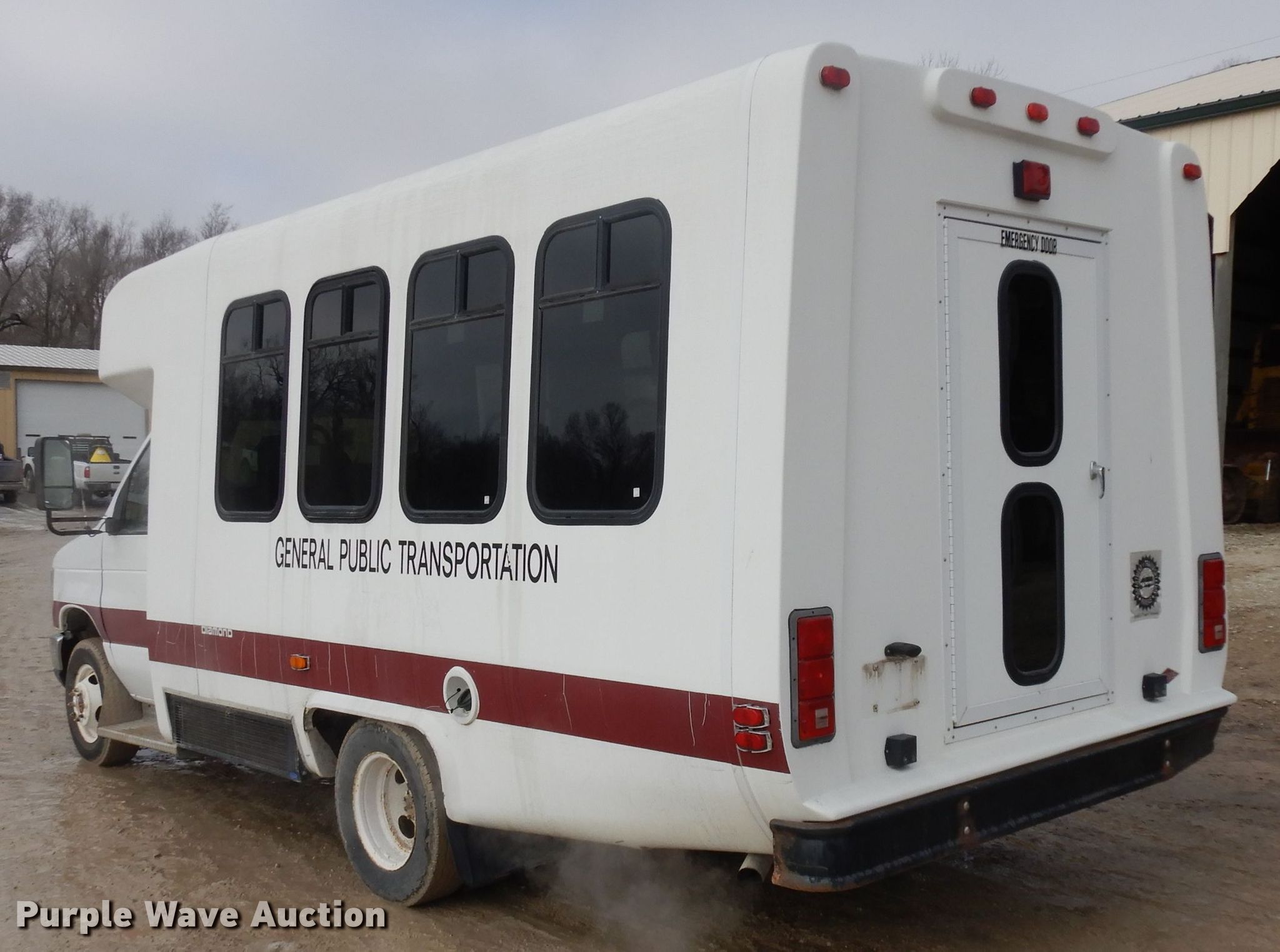 Purple Wave is selling a used Bus in Kansas. This item is a 2011 Ford Econoline E350 shuttle bus with the following: 134,600 miles on odometer, 6.8L V10 SOHC 20V gas engine, Automatic transmission, Single axle, AC and heat, 10 passenger capacity, Wheelchair lift, Spring suspension, Hydraulic brakes, 225/75R16 tires, GVWR 11,500 lbs, Dead battery