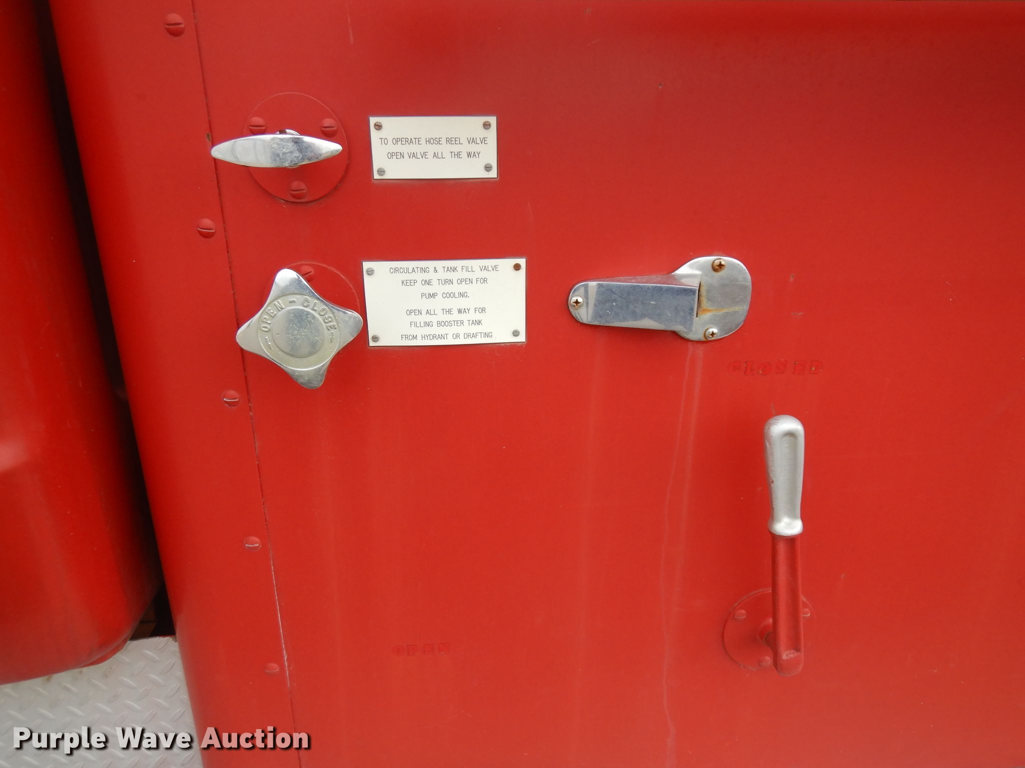 Purple Wave is selling a used Fire Truck or Emergency Vehicle in Kansas. This item is a 1970 Chevrolet C50 pumper fire truck with the following: 983 actual miles, 350 C.I.D. eight cylinder gas engine, Four speed manual transmission, Single axle, Heat, Pump, 500 gpm, Ground ladder, 50'L hose, Spring suspension, Hydraulic brakes, 8.25-20 tires, GVWR 22,000 lbs