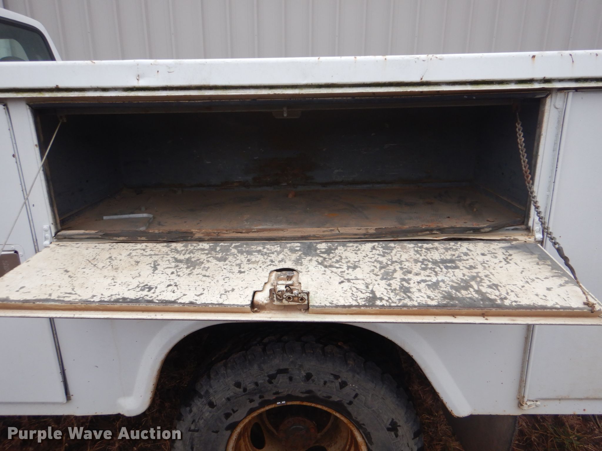 Purple Wave is selling a used Service Truck in Oklahoma. This item is a 1997 Ford F450 Super Duty utility truck with the following: Unknown miles on odometer, 7.3L V8 OHV 16V diesel engine, Five speed manual transmission, AC and heat, Cruise, Stahl utility bed, 9'L x 90"W, LT235/85R16 tires, Non-operational unit