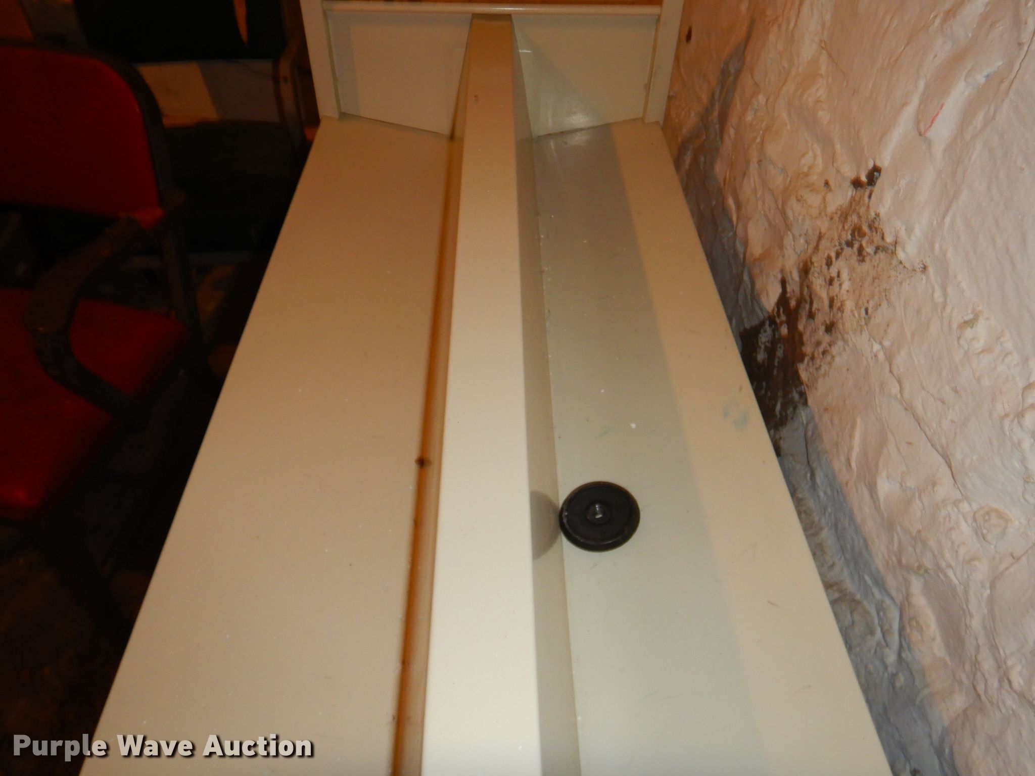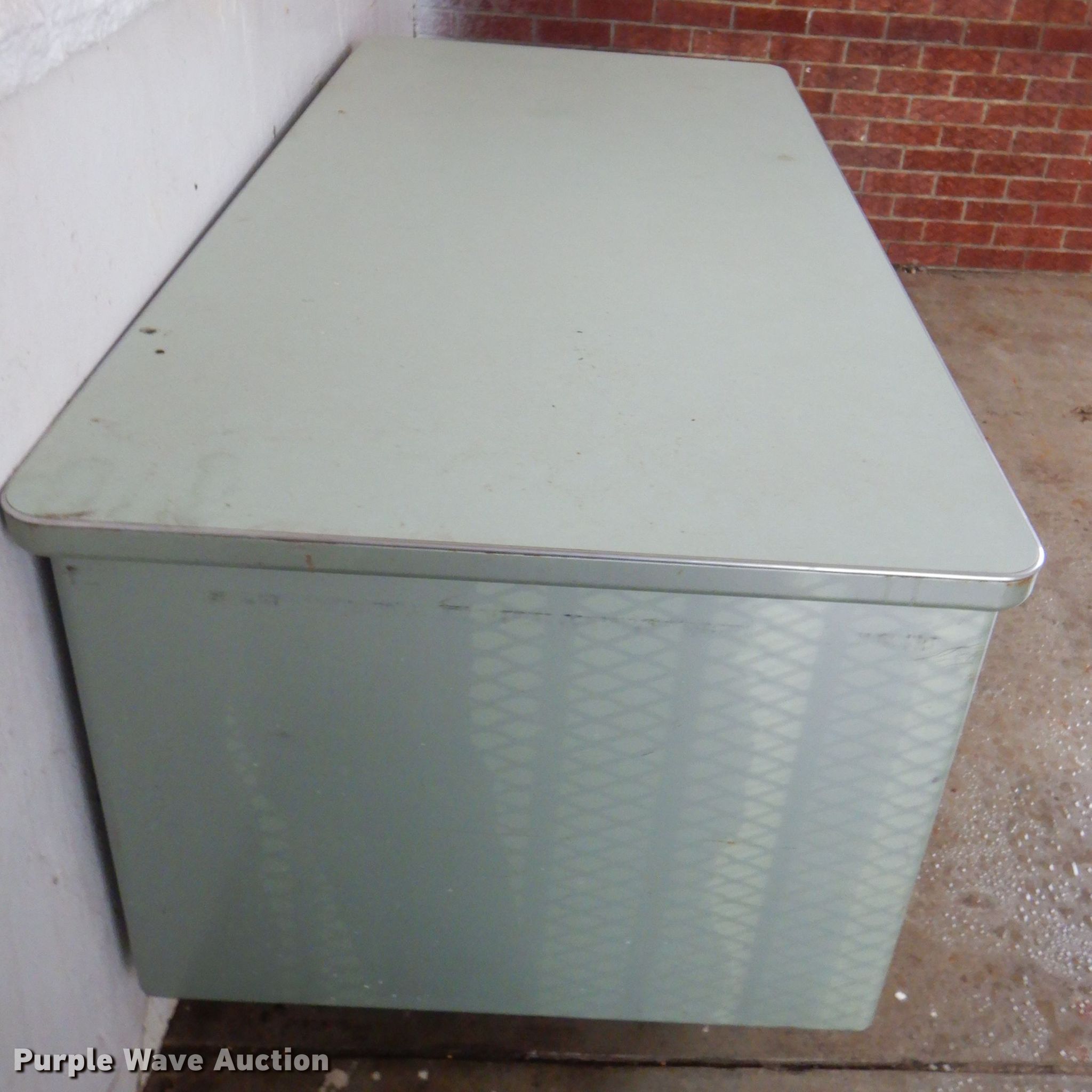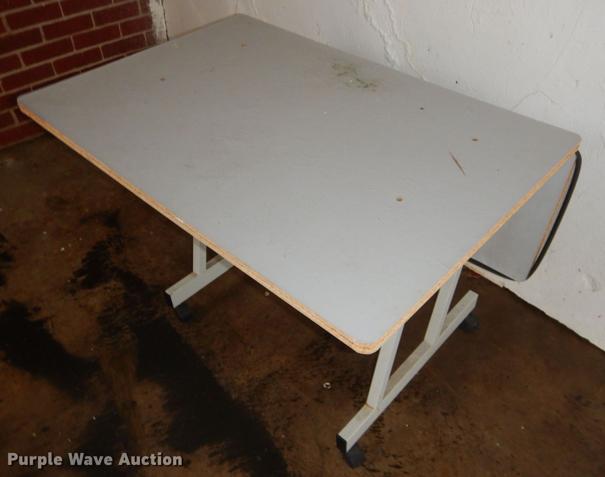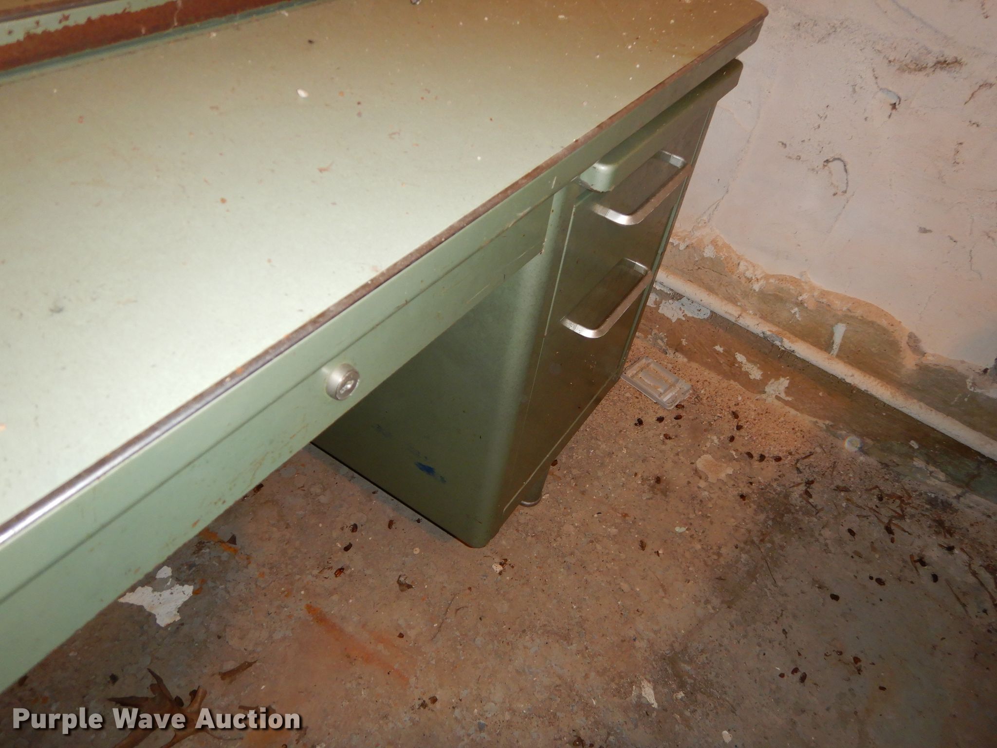 Purple Wave is selling a used Furniture in Kansas. This item is a Office supplies with the following: Metal desks, Chairs, Book shelf, Table, Metal rack, Table with podium, (4) chalk boards