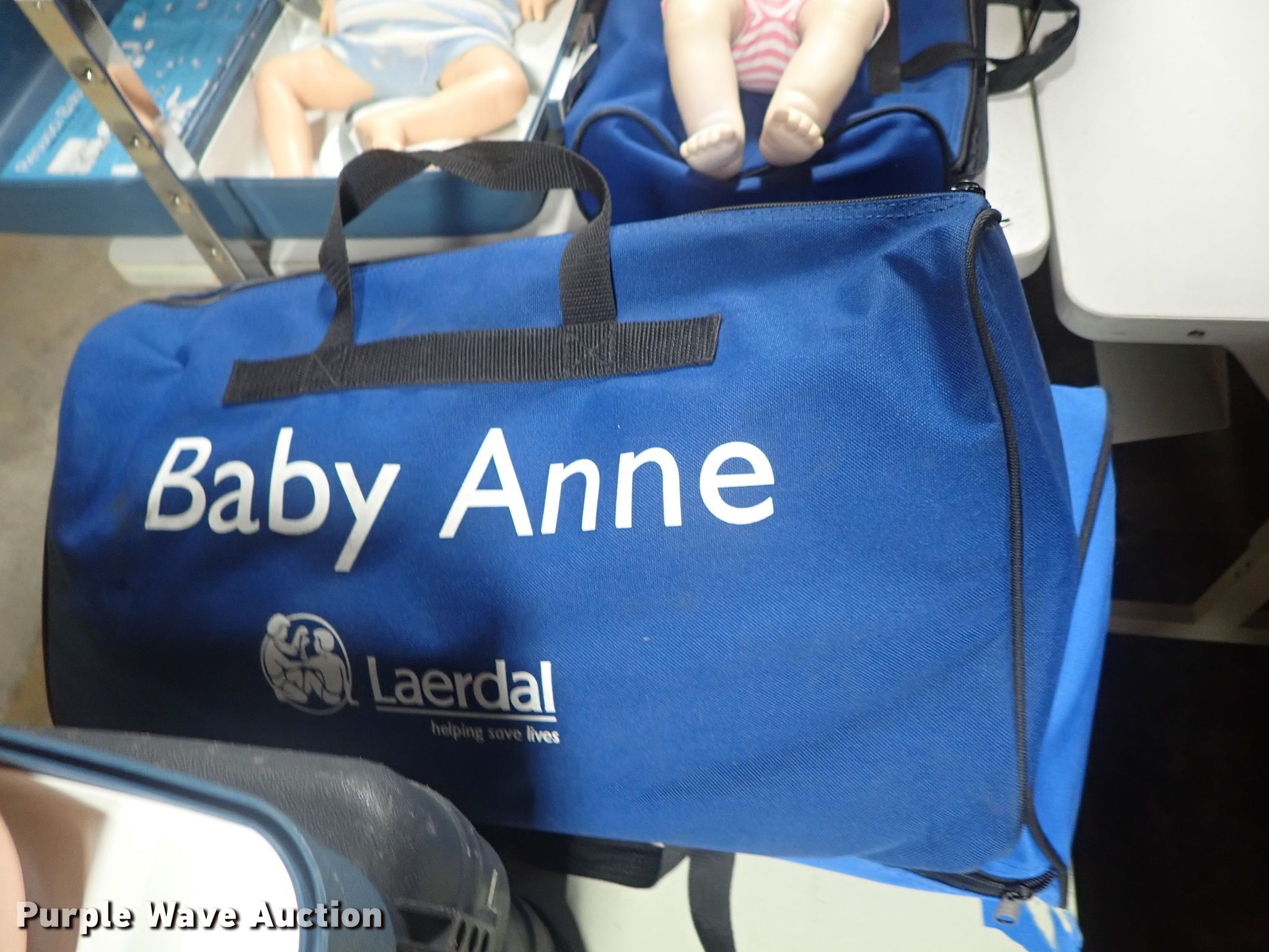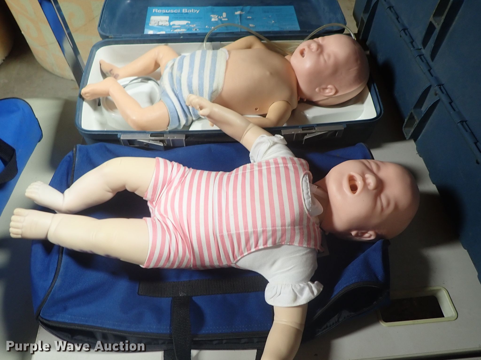 Purple Wave is selling a used Medical Equip. in Kansas. This item is a (17) CPR manikins with the following: (7) Baby Anne, (10) Resusci Anne, Cases