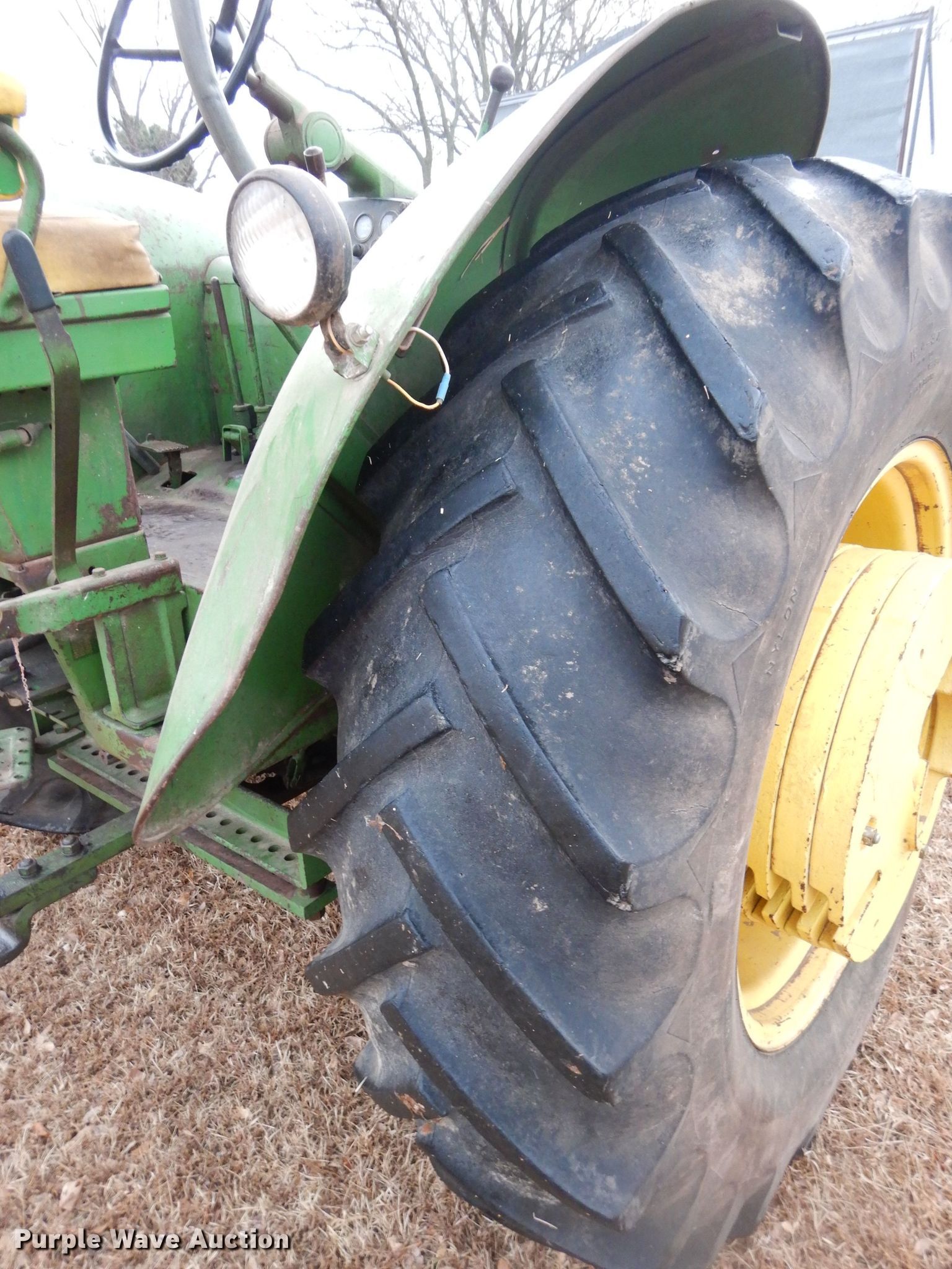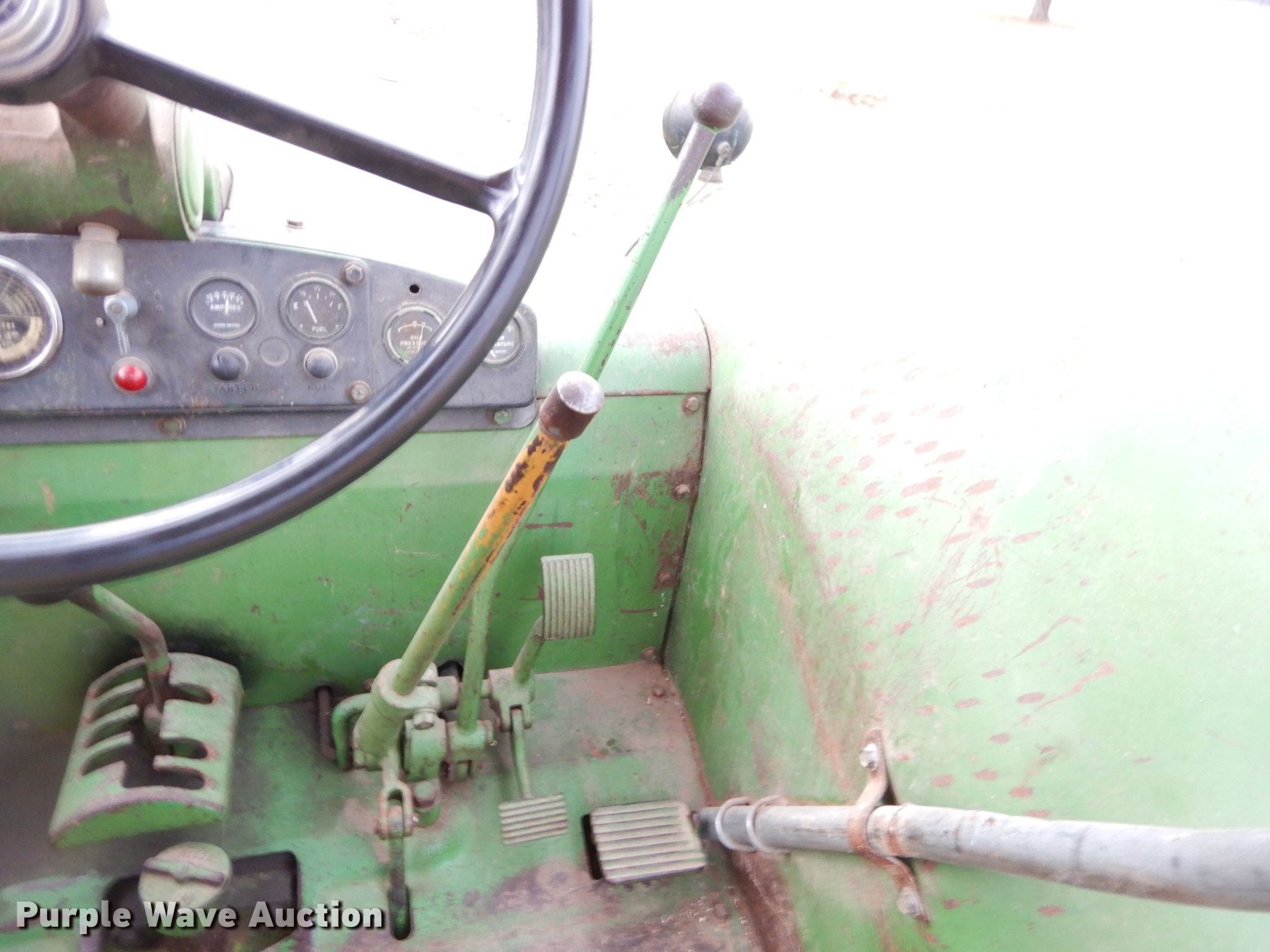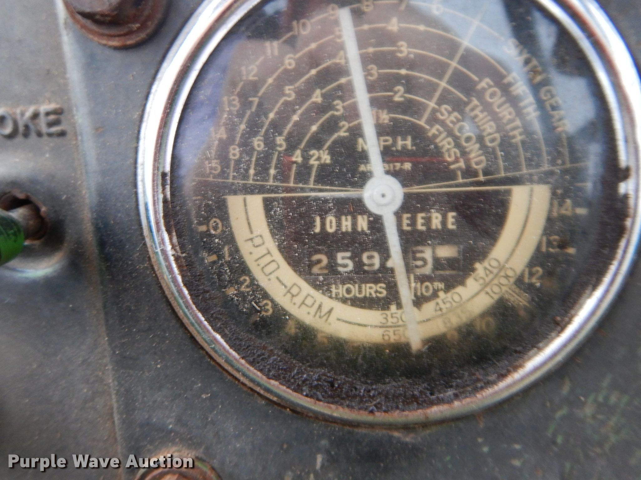 Purple Wave is selling a used Tractor in Oklahoma. This item is a John Deere 830 tractor with the following: 2,594 hours on meter, John Deere two cylinder diesel engine, Manual transmission, 8F-4R gears, Rear hydraulic remote set, 7.50-18 front tires, 18.4-34 rear tires, Serial 8304606