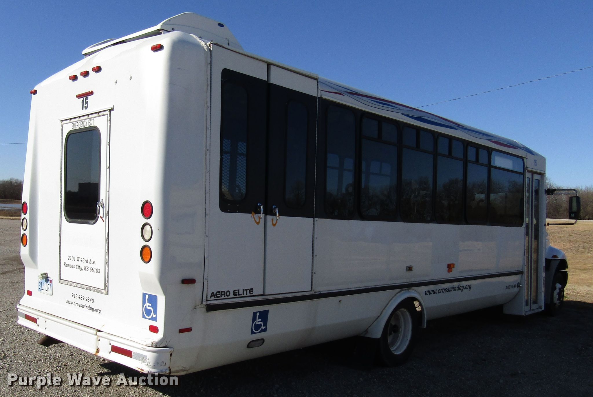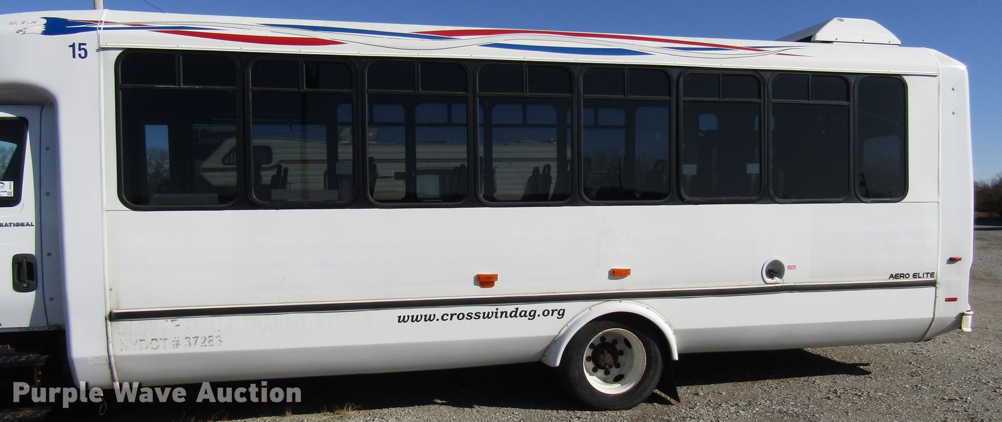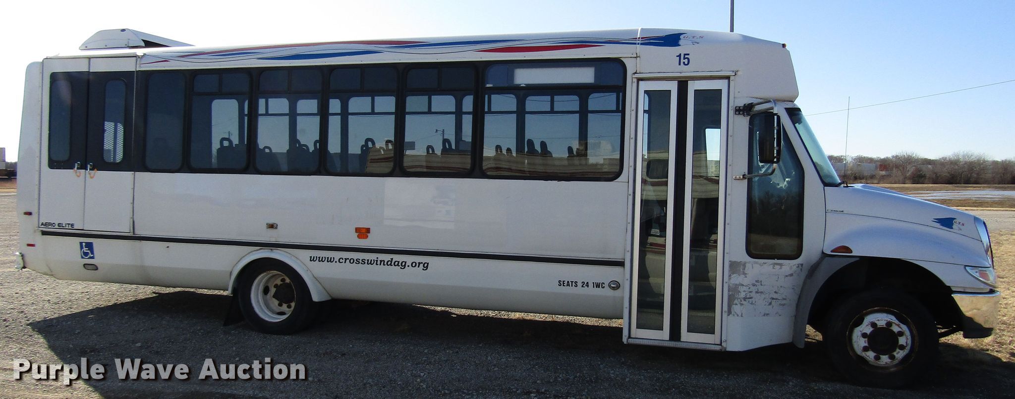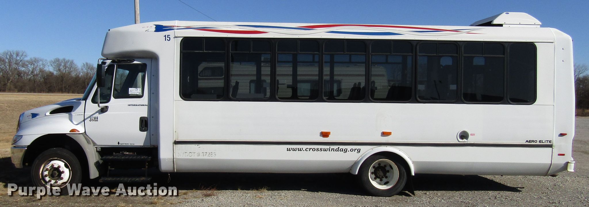 Purple Wave is selling a used Bus in Kansas. This item is a 2006 International 3200 shuttle bus with the following: 173,119 miles on odometer, International 6.0L V8 diesel engine, Automatic transmission, Single axle, AC and heat, 24 passenger capacity, Wheelchair lift, 218" wheelbase, Spring suspension, Air brakes, 245/70R19.5 tires, GVWR 23,500 lbs, Unknown operating condition