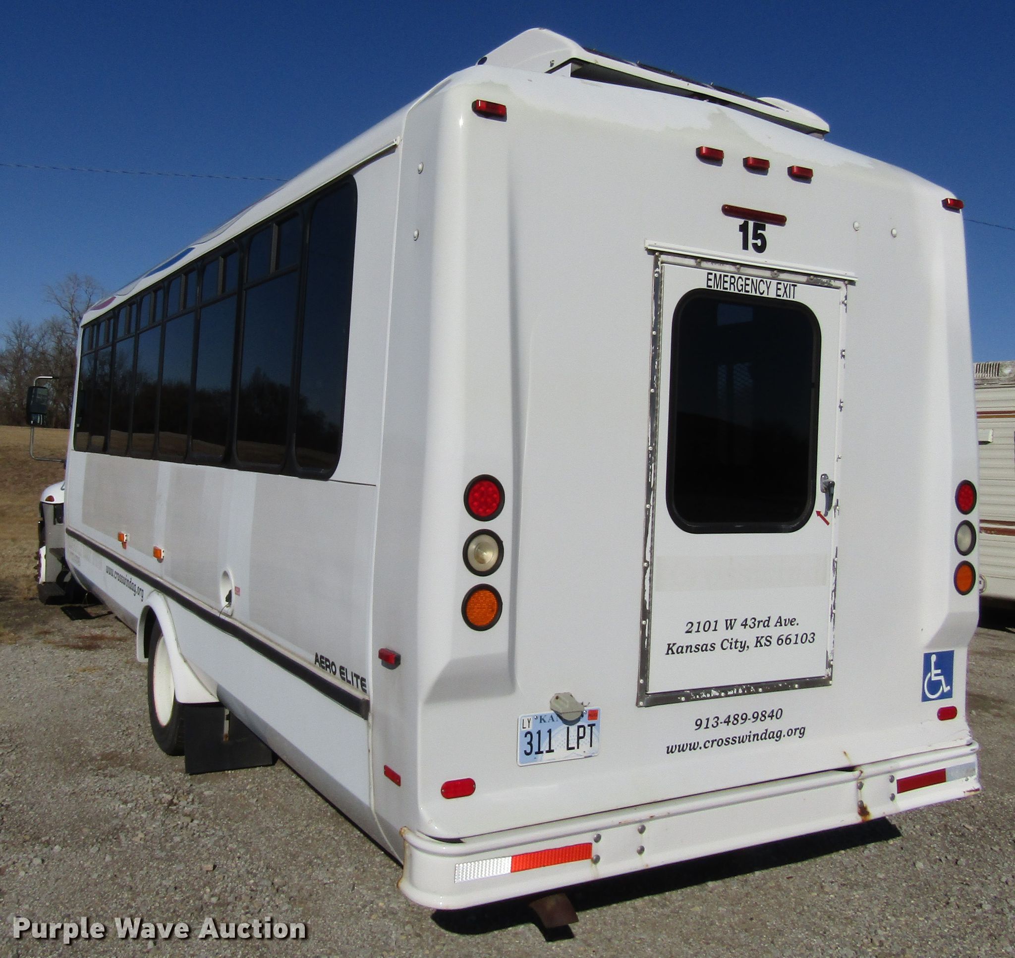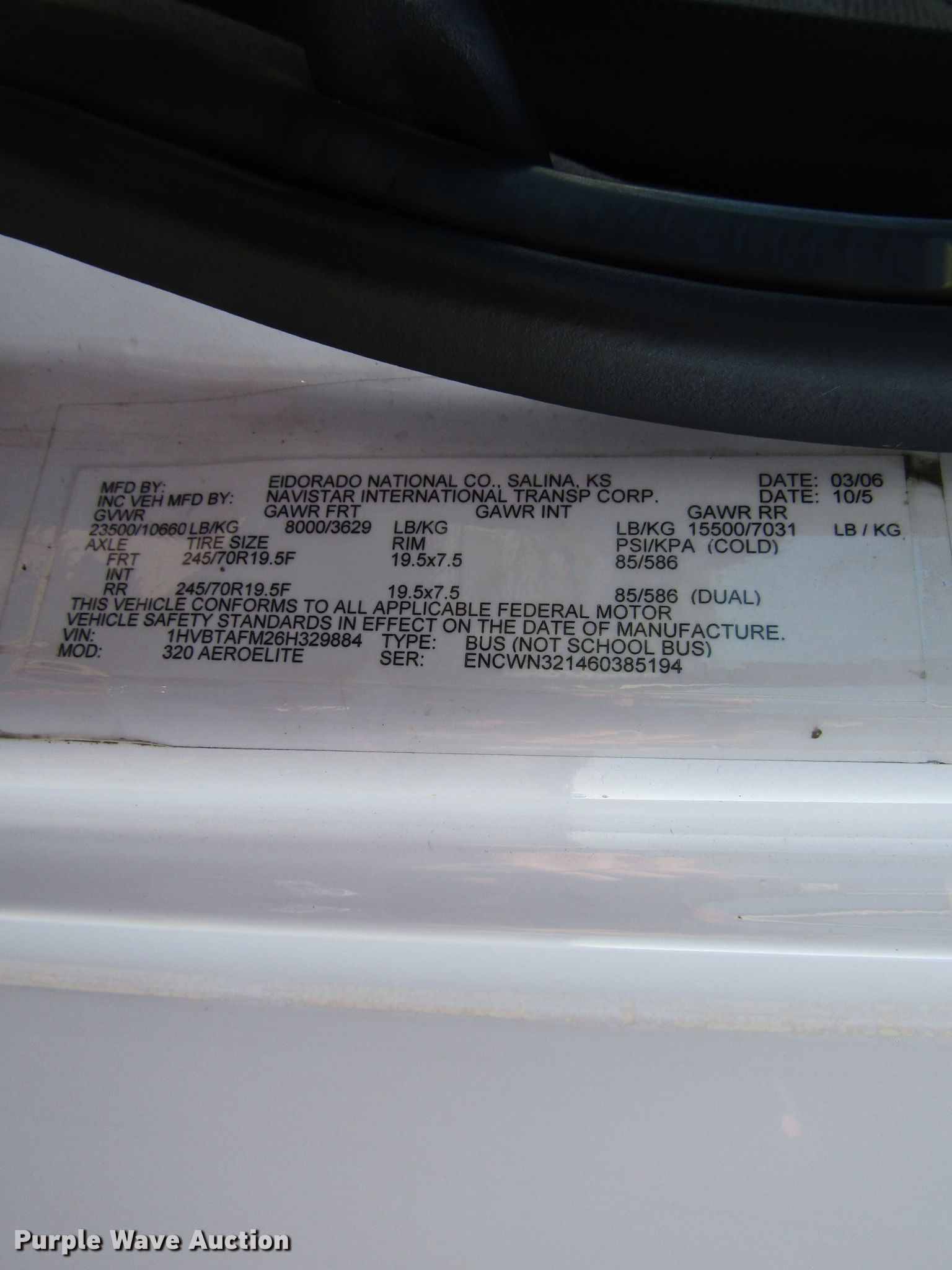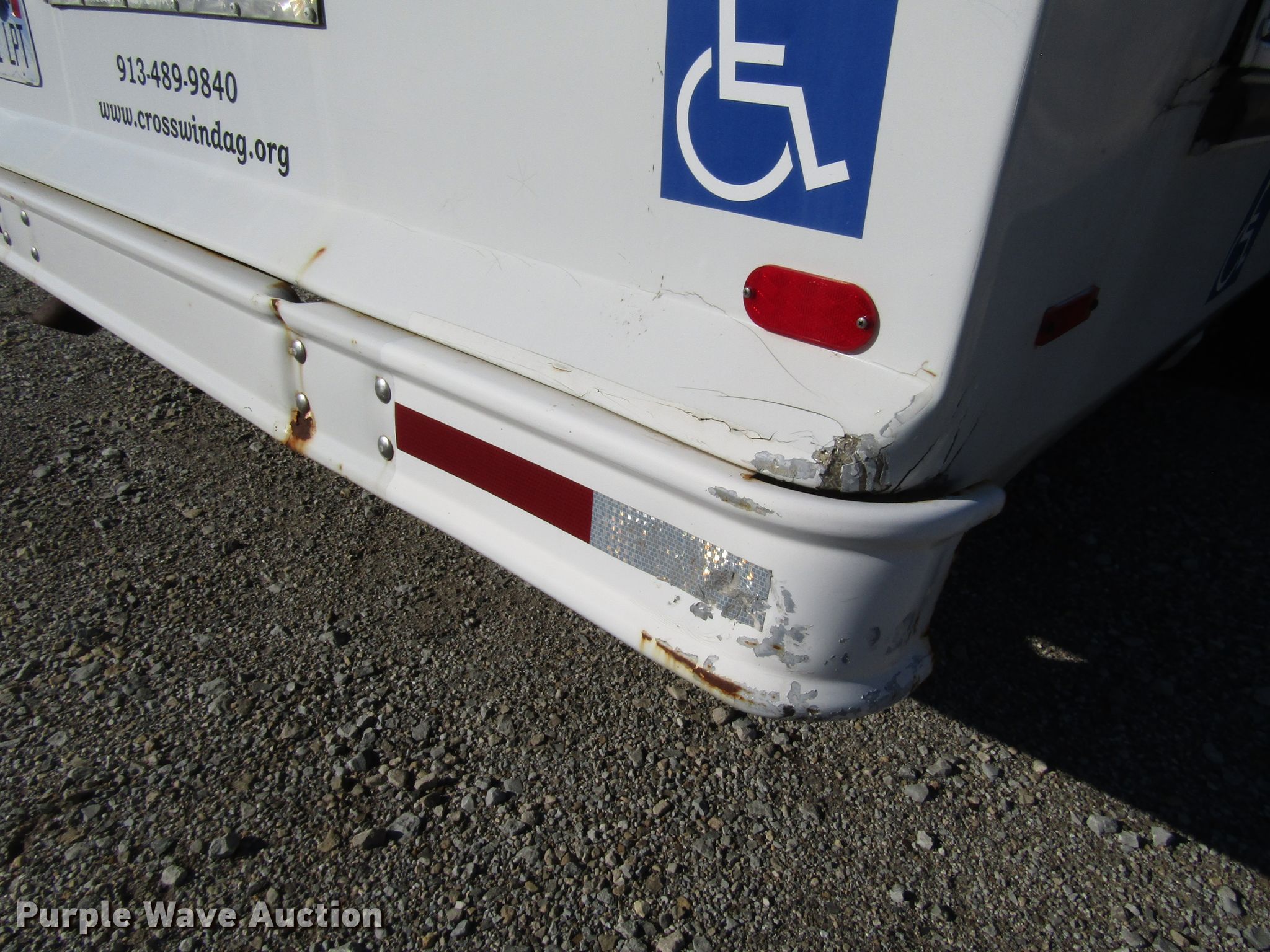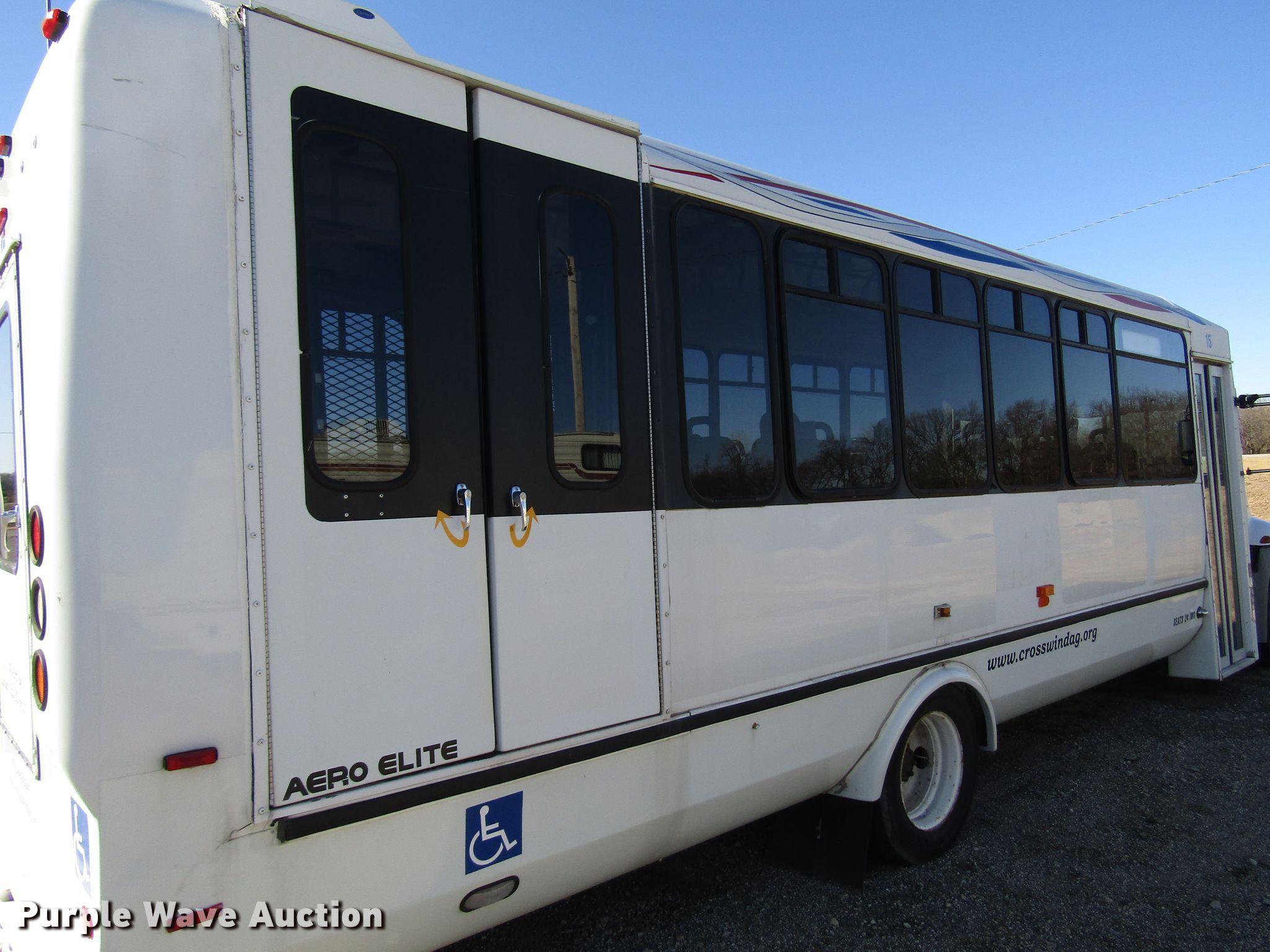 Purple Wave is selling a used Bus in Kansas. This item is a 2006 International 3200 shuttle bus with the following: 173,119 miles on odometer, International 6.0L V8 diesel engine, Automatic transmission, Single axle, AC and heat, 24 passenger capacity, Wheelchair lift, 218" wheelbase, Spring suspension, Air brakes, 245/70R19.5 tires, GVWR 23,500 lbs, Unknown operating condition