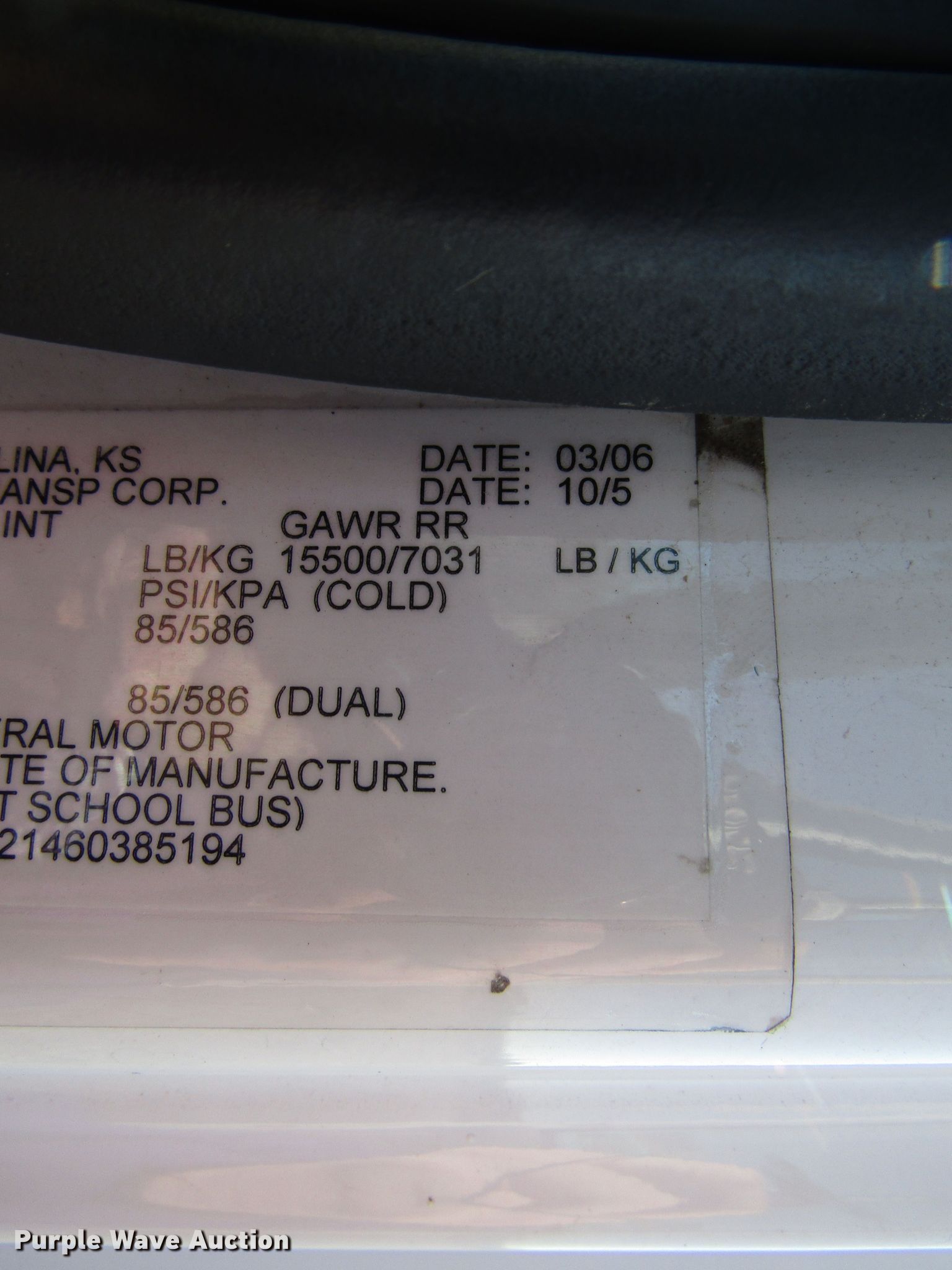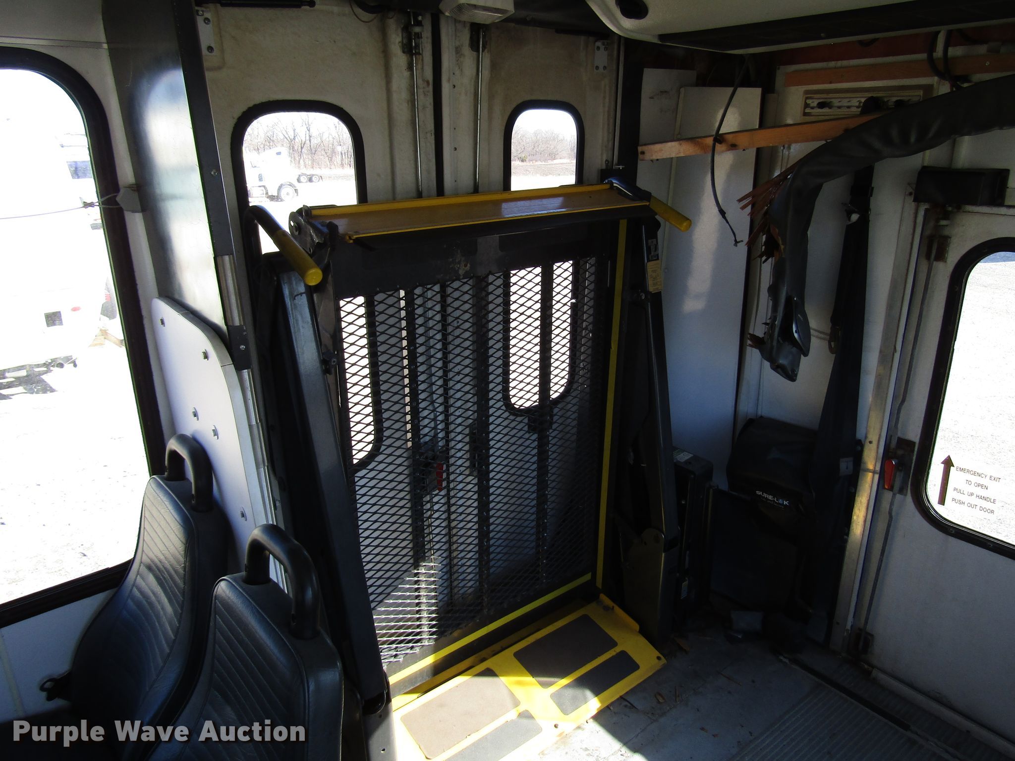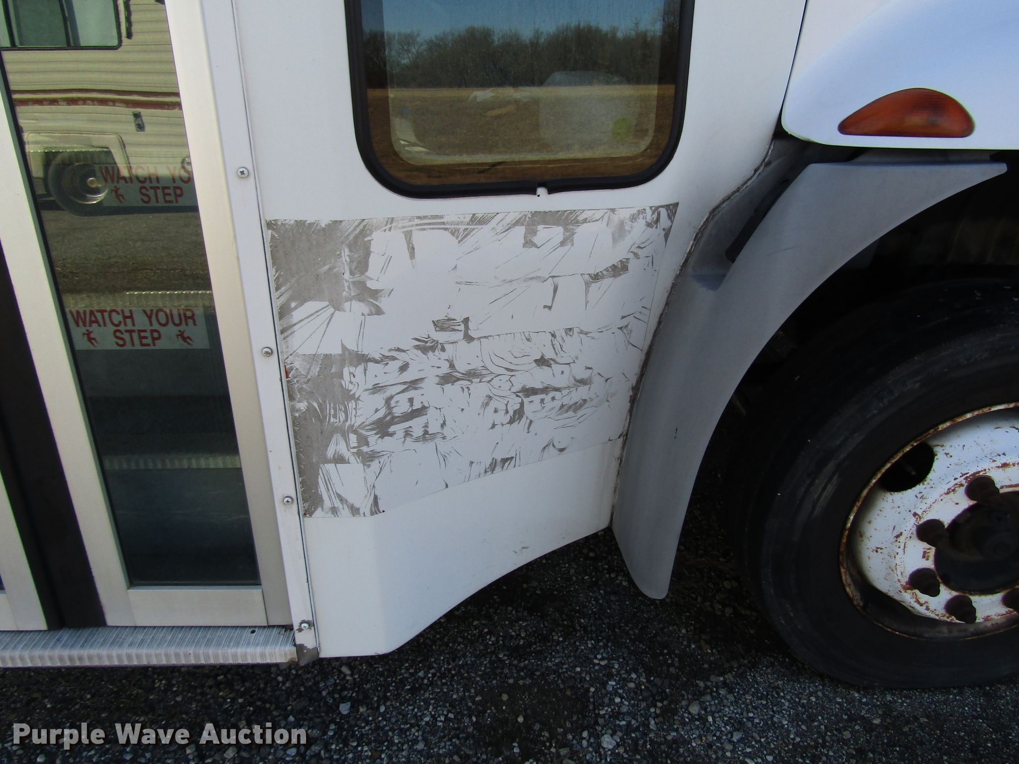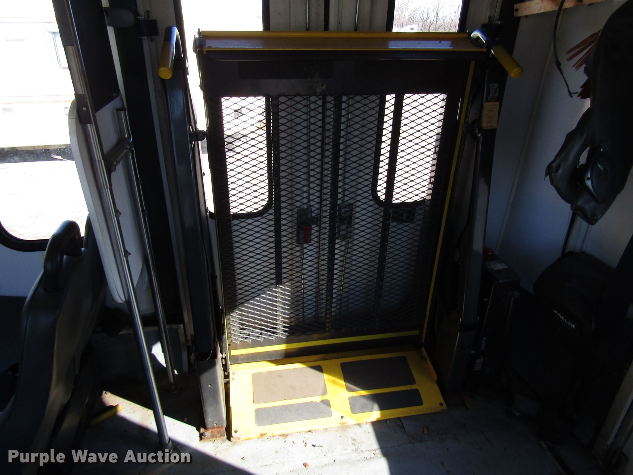 Purple Wave is selling a used Bus in Kansas. This item is a 2006 International 3200 shuttle bus with the following: 173,119 miles on odometer, International 6.0L V8 diesel engine, Automatic transmission, Single axle, AC and heat, 24 passenger capacity, Wheelchair lift, 218" wheelbase, Spring suspension, Air brakes, 245/70R19.5 tires, GVWR 23,500 lbs, Unknown operating condition