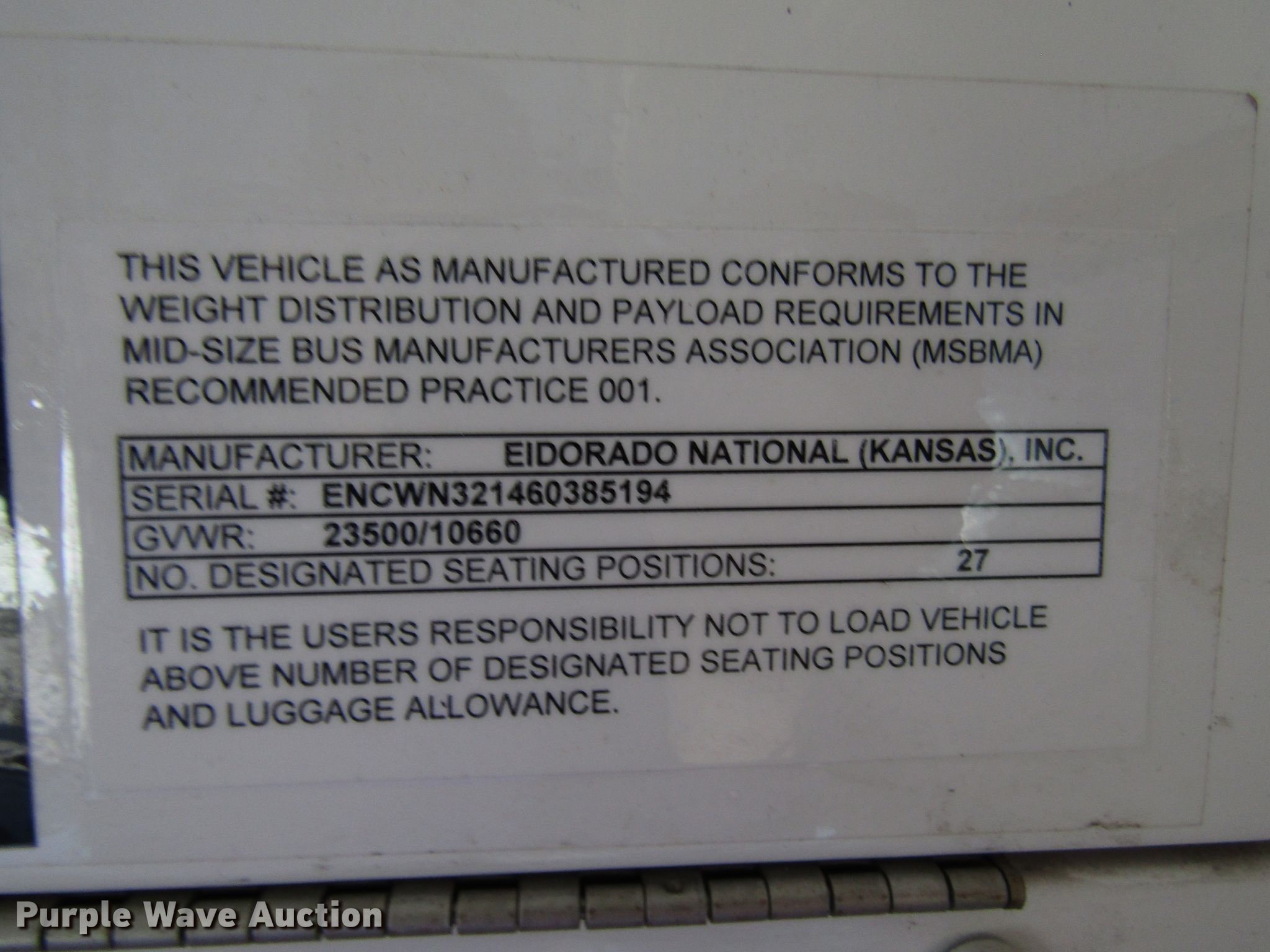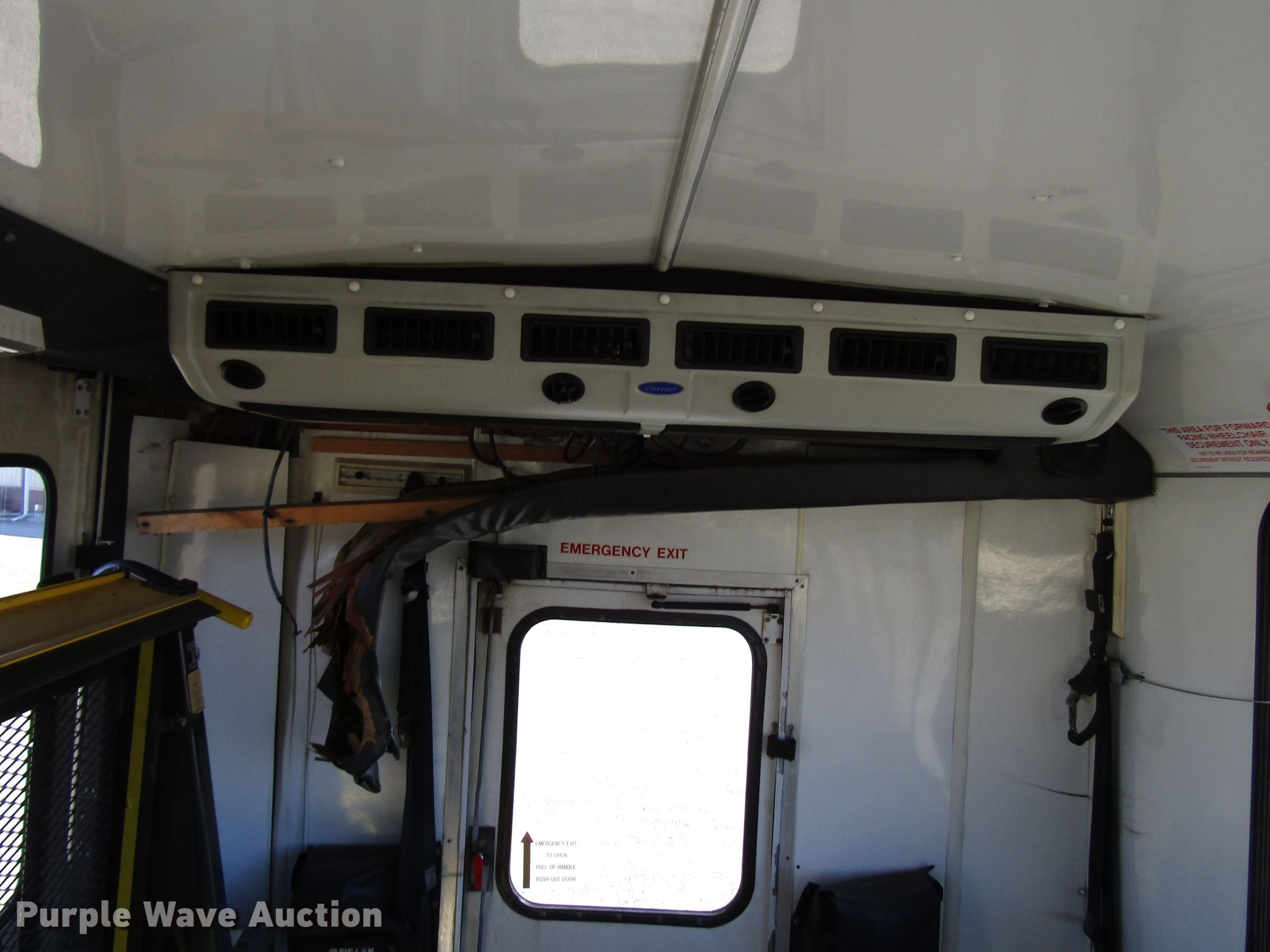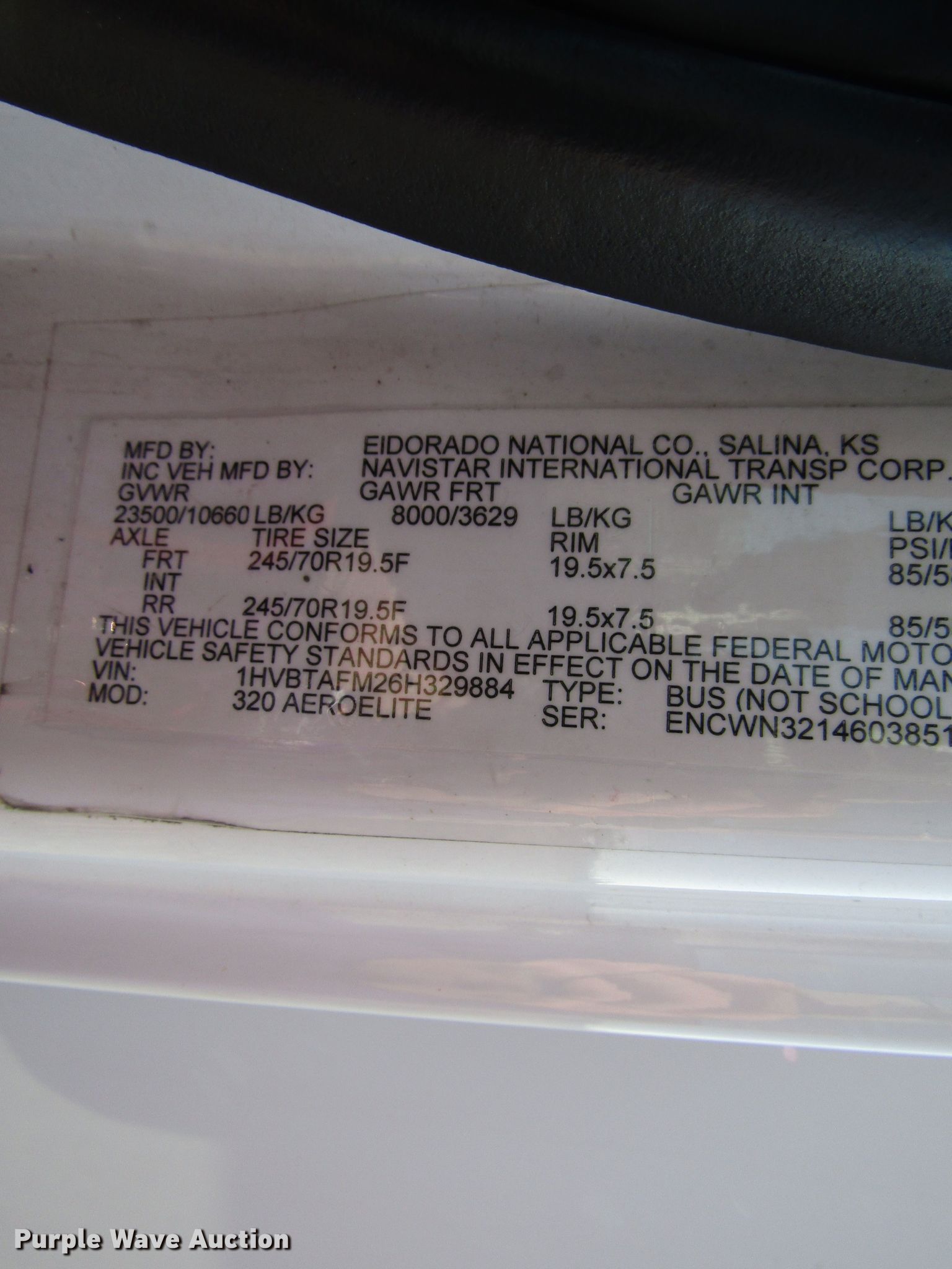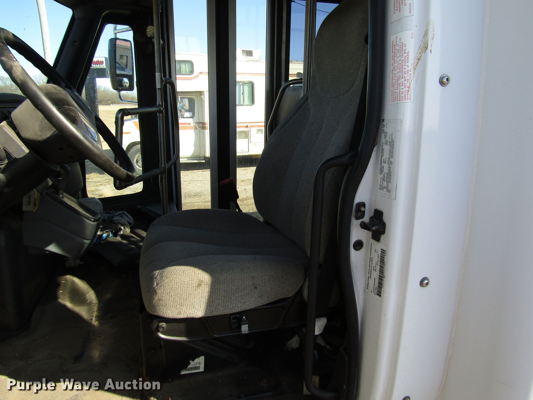 Purple Wave is selling a used Bus in Kansas. This item is a 2006 International 3200 shuttle bus with the following: 173,119 miles on odometer, International 6.0L V8 diesel engine, Automatic transmission, Single axle, AC and heat, 24 passenger capacity, Wheelchair lift, 218" wheelbase, Spring suspension, Air brakes, 245/70R19.5 tires, GVWR 23,500 lbs, Unknown operating condition
